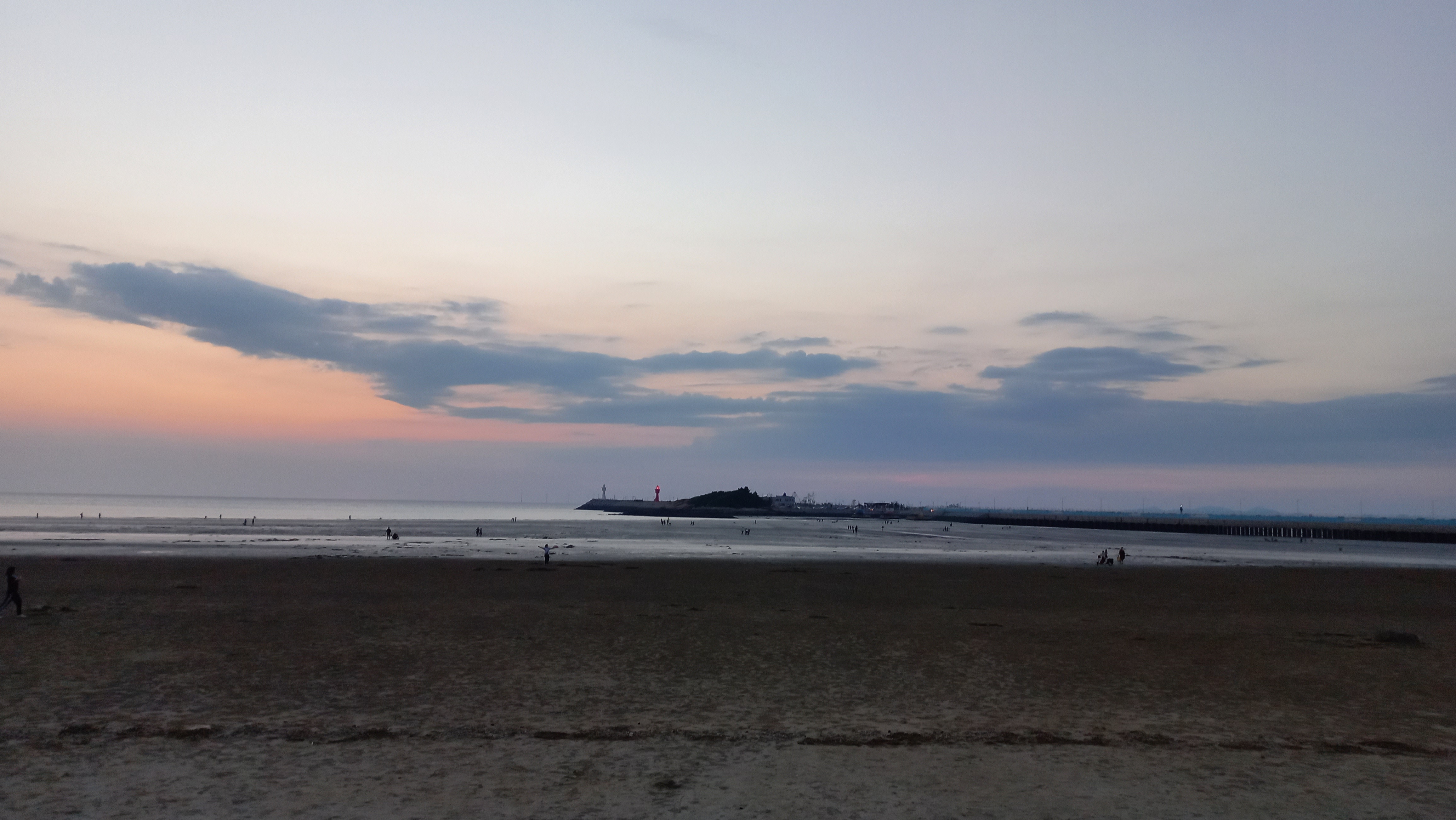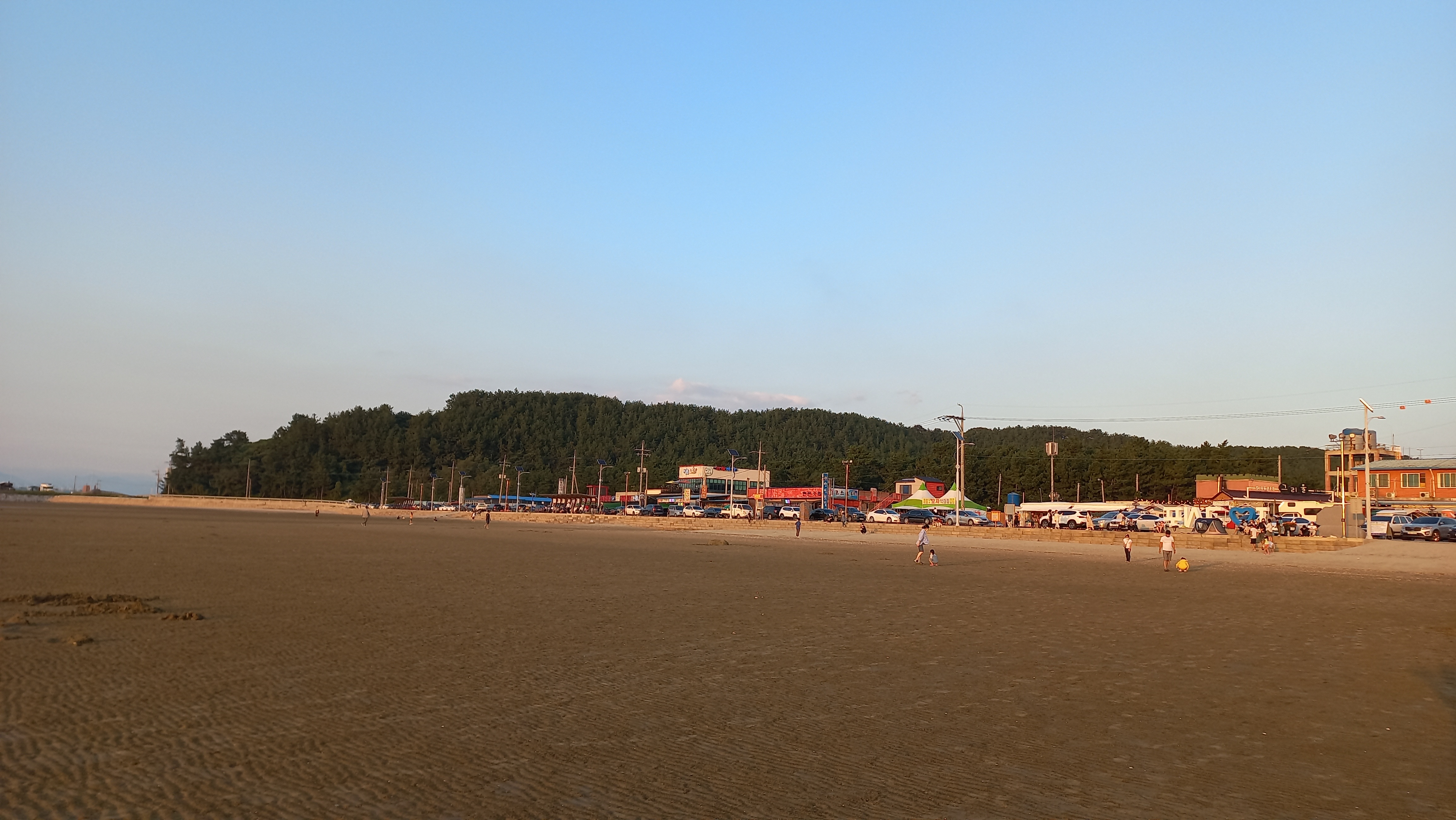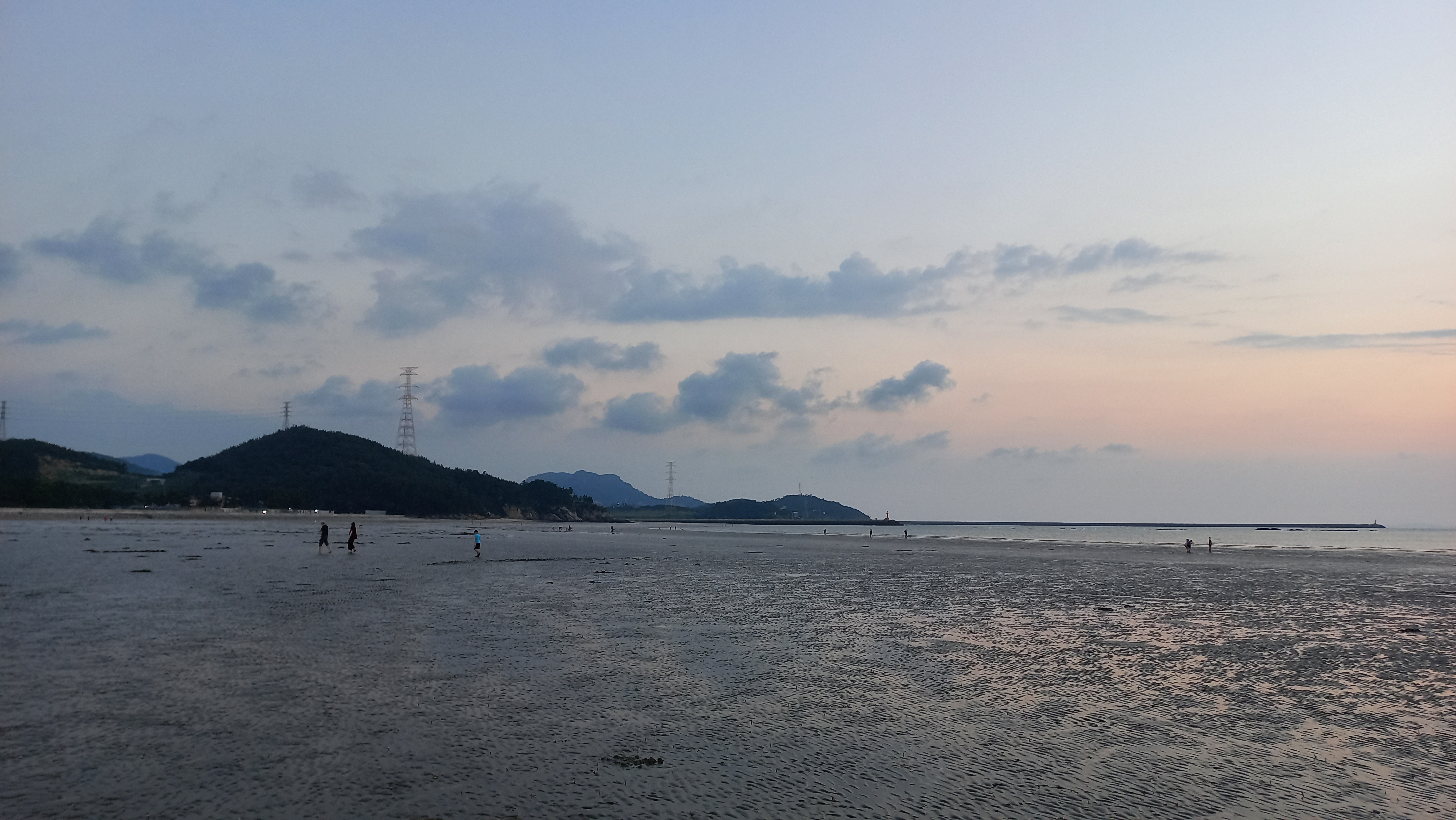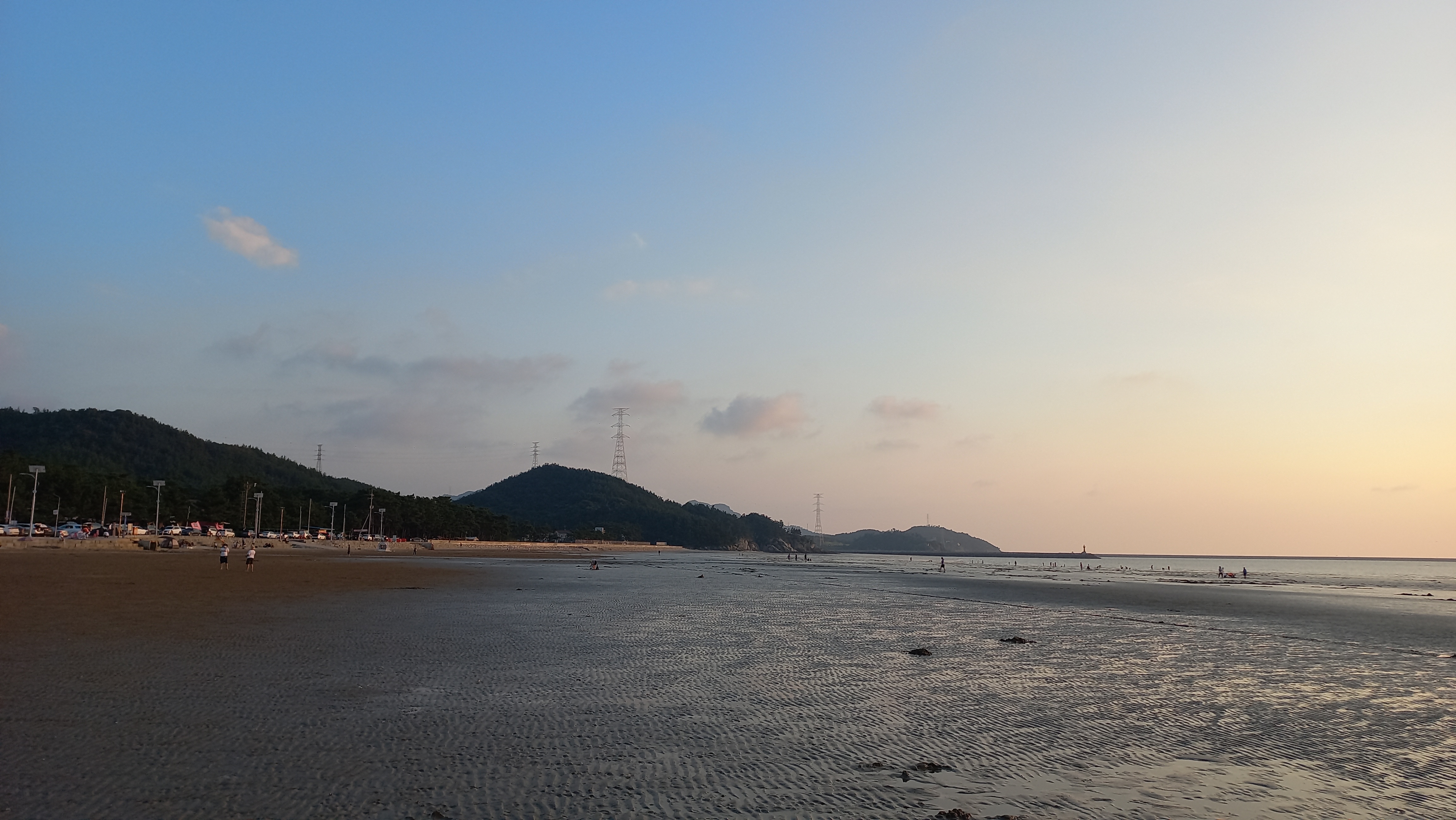 물이 한참 빠질 때에는 해변과 갯벌의 폭이 500미터 정도는 되는 것 같습니다.