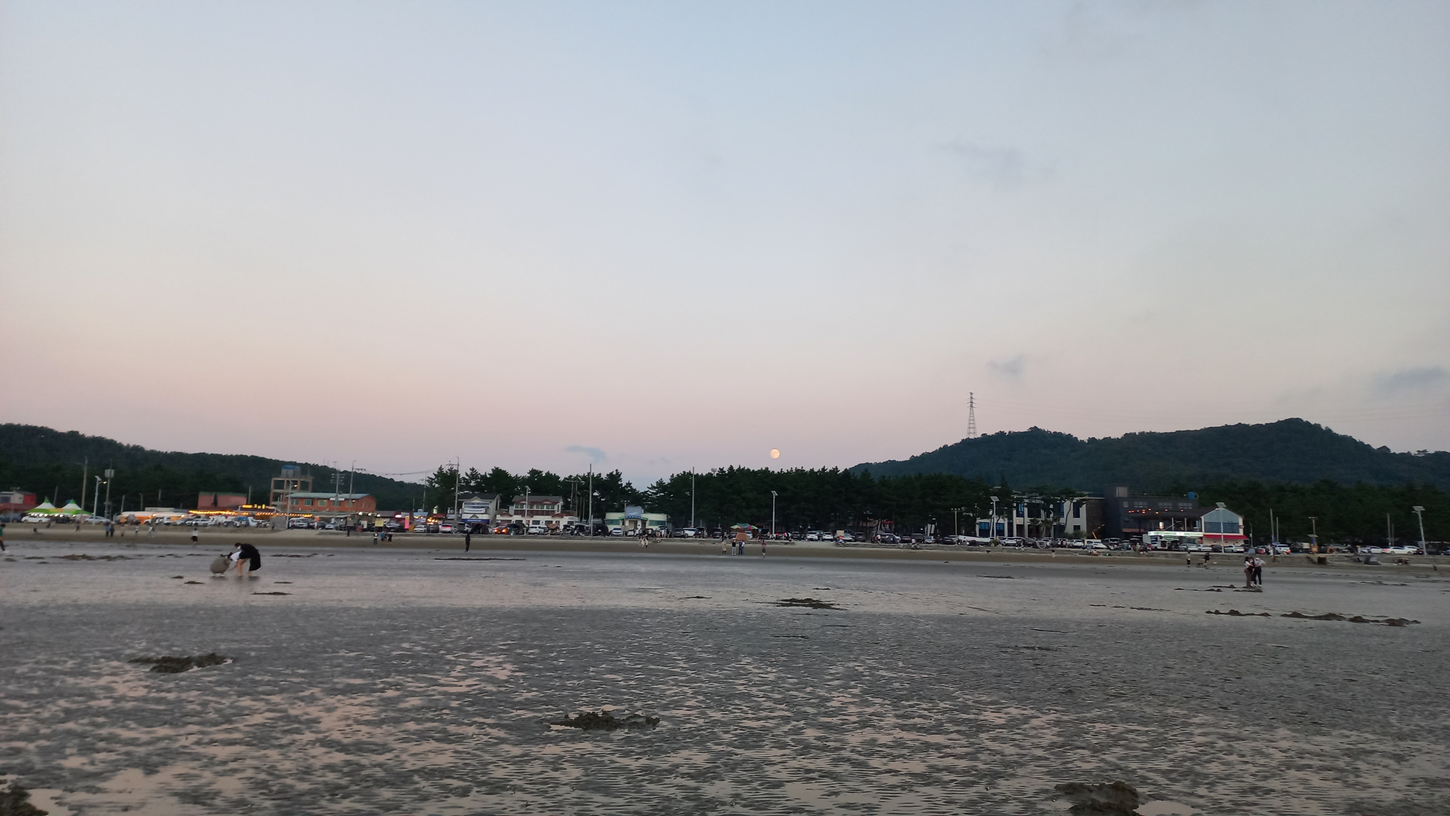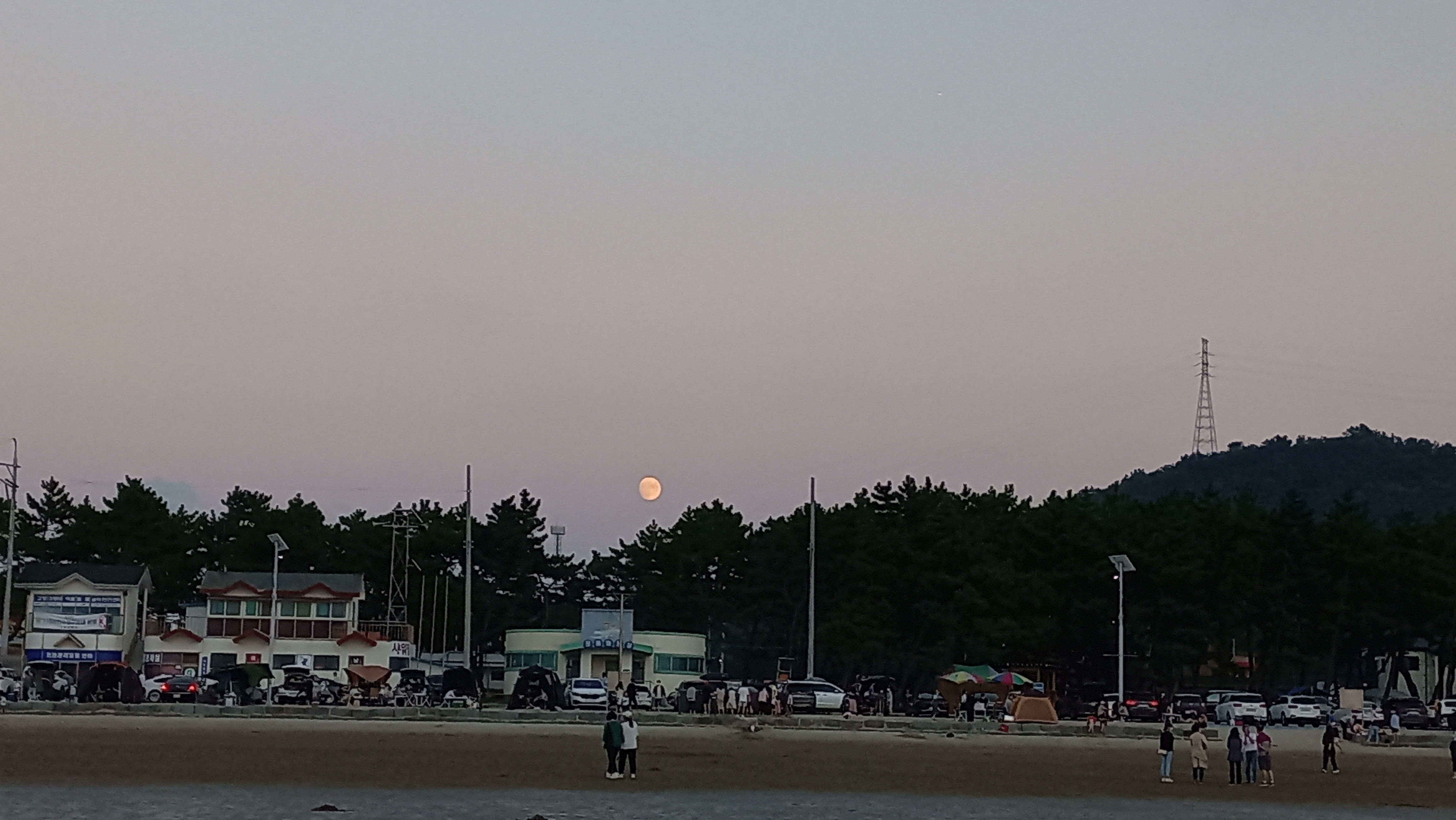 그리고 해가 지자 보름달이 가까워진 달이 구시포 해수욕장에 떠오르고 있습니다.