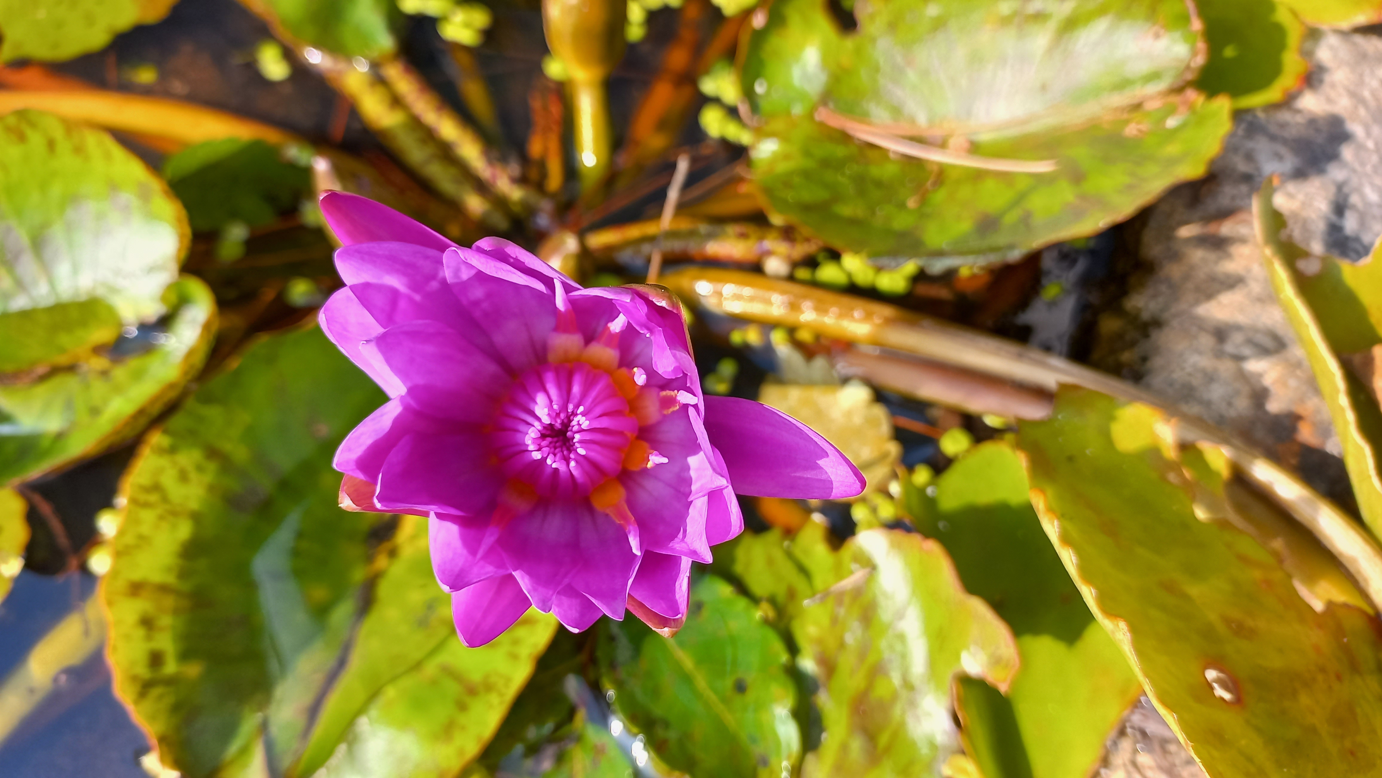 7층 보탑 옆 작은 수조에 수련이 곱게 피어 있습니다.