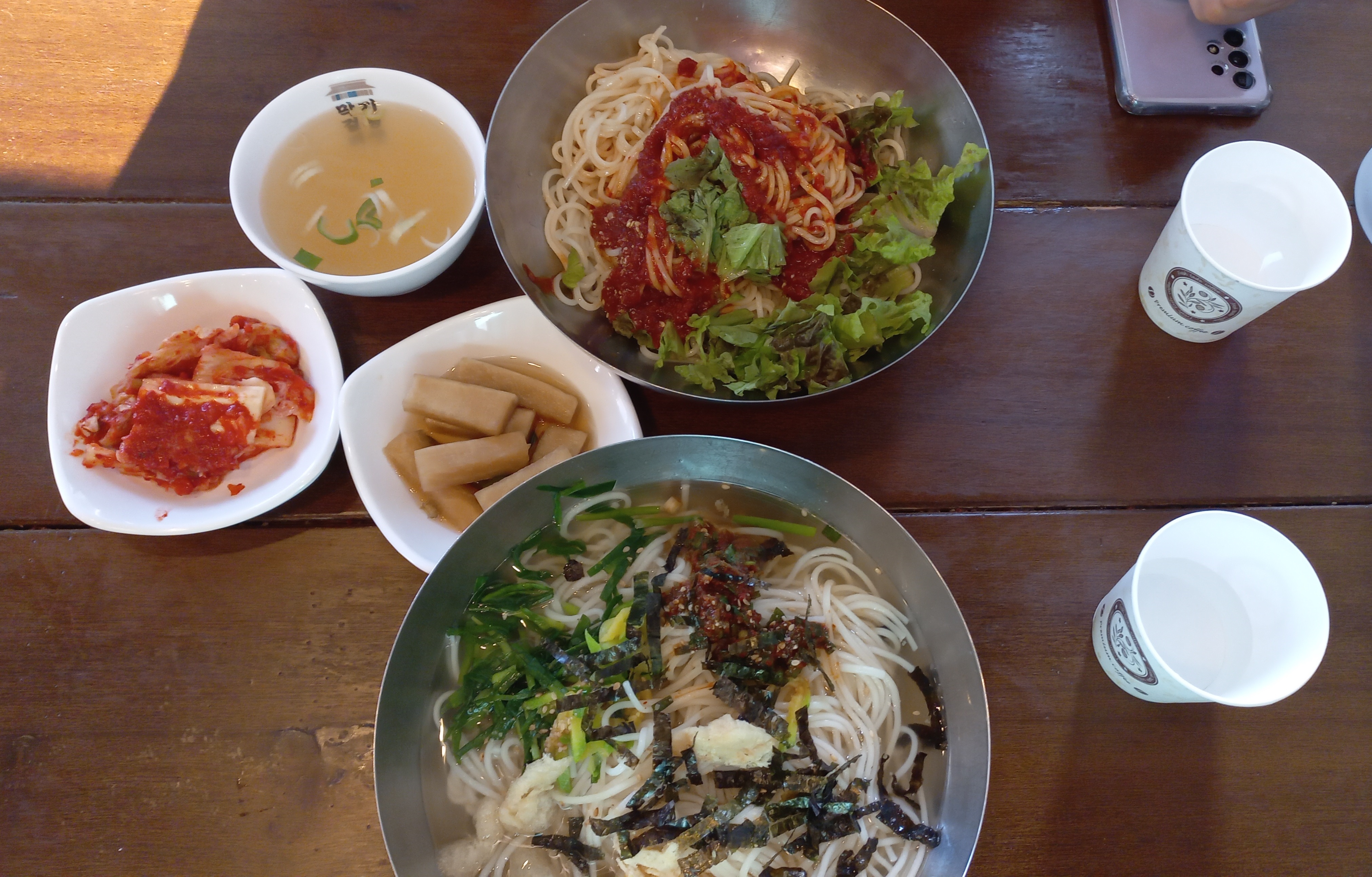 주문받고 면을 삶아서인지 10분 정도 기다리니 멸치국수와 비빔국수가 나왔습니다.