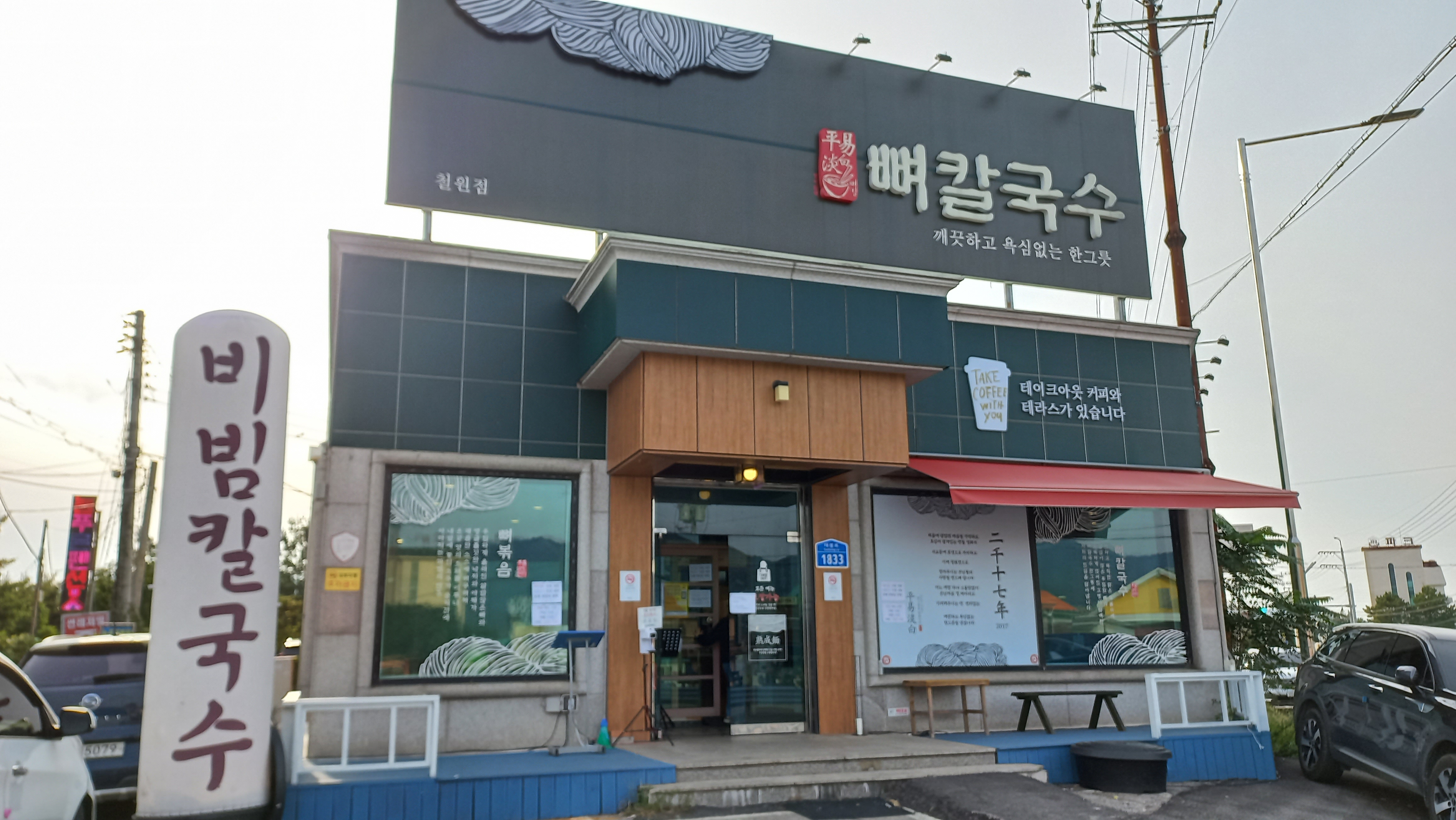결국 고석정에서 간식과 음료 등으로 민생고를 간단히 해결하고 결국 늦은 점심, 6시 정도 되었으니 결국은 저녁식사를 할 수 있었는데, 그곳은 평이담백 뼈칼국수 철원점입니다.