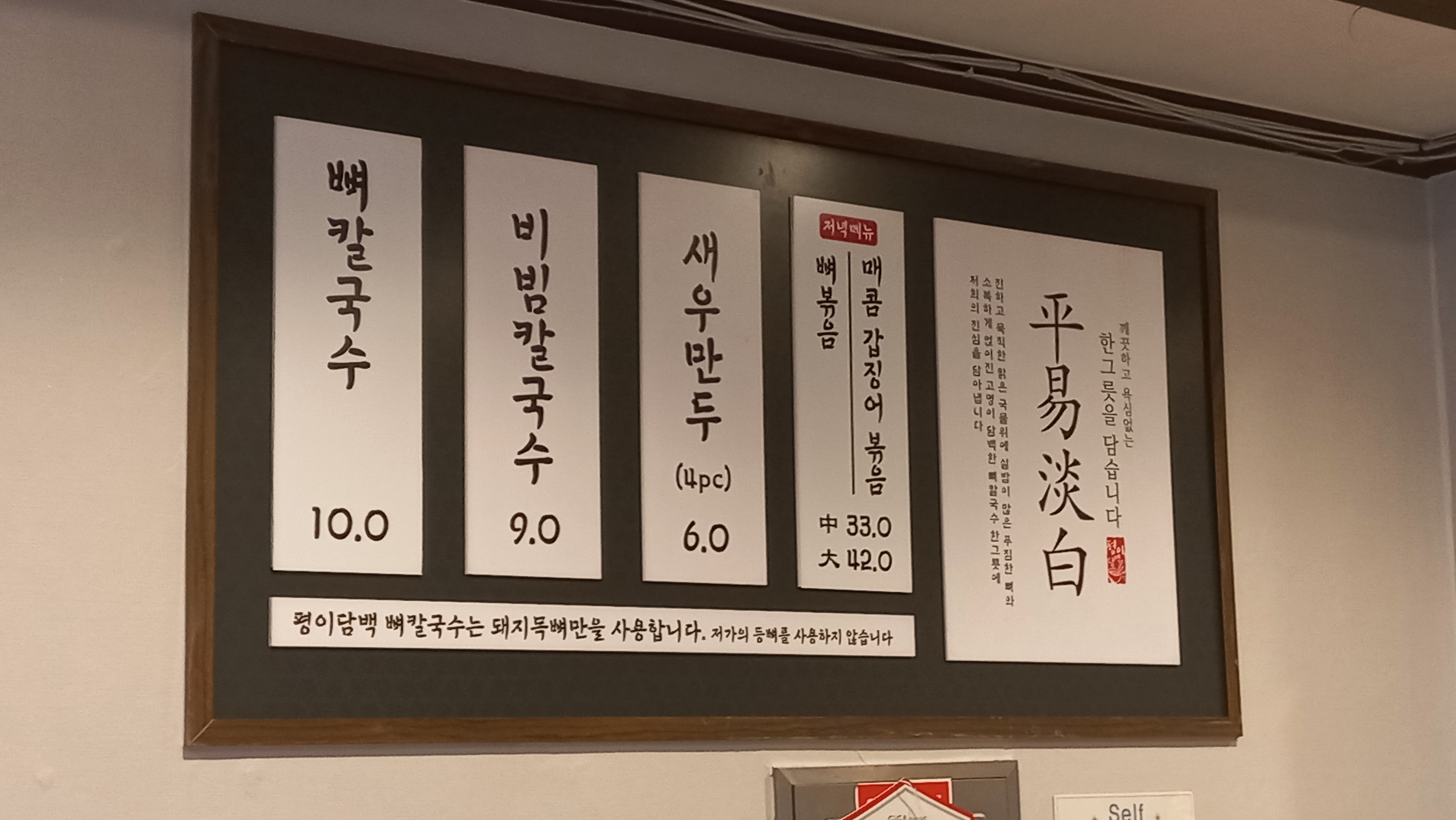 평이담백 뼈칼국수 메뉴