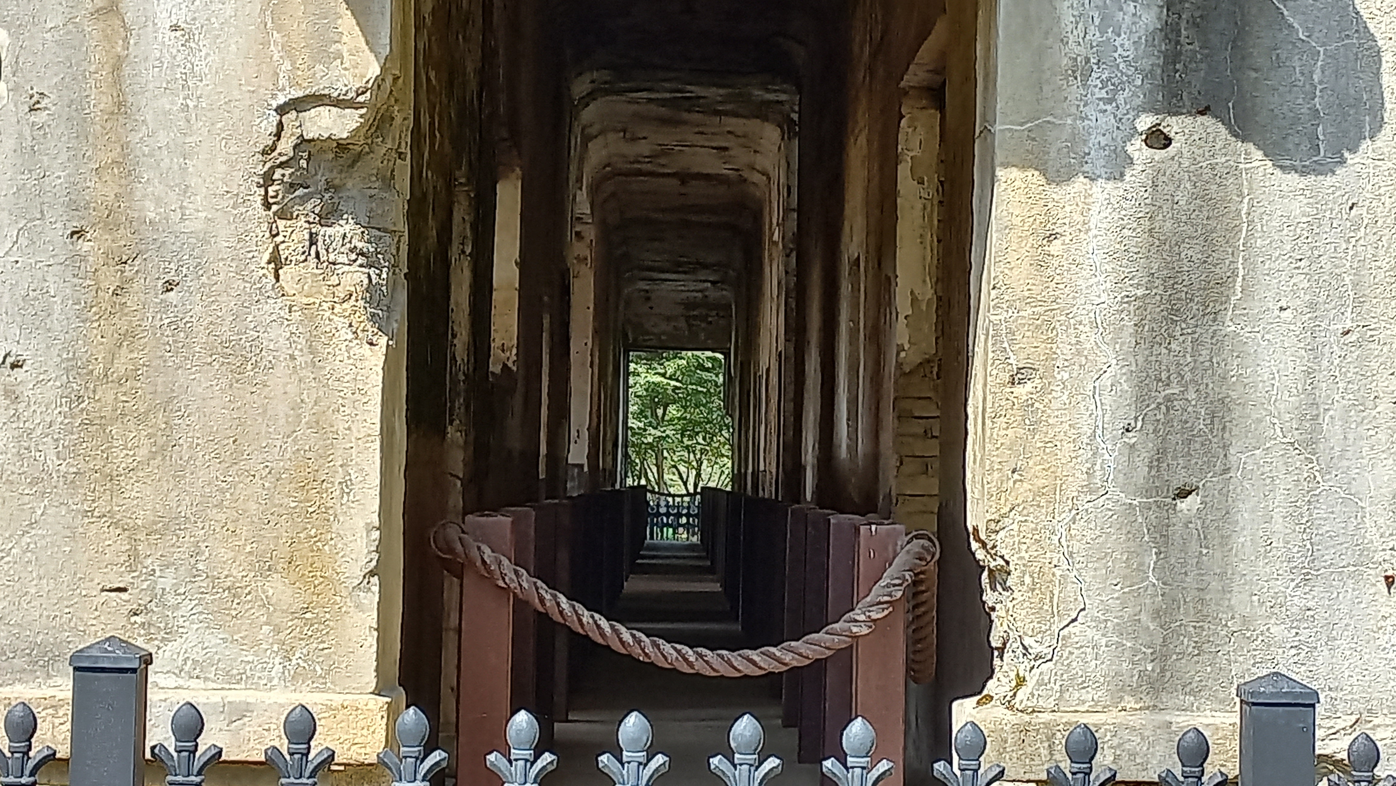 내부엔 텅 비어 있고, 건물이 무너짐을 방지하기 위해 지지대 일부가 세워진 정도입니다.