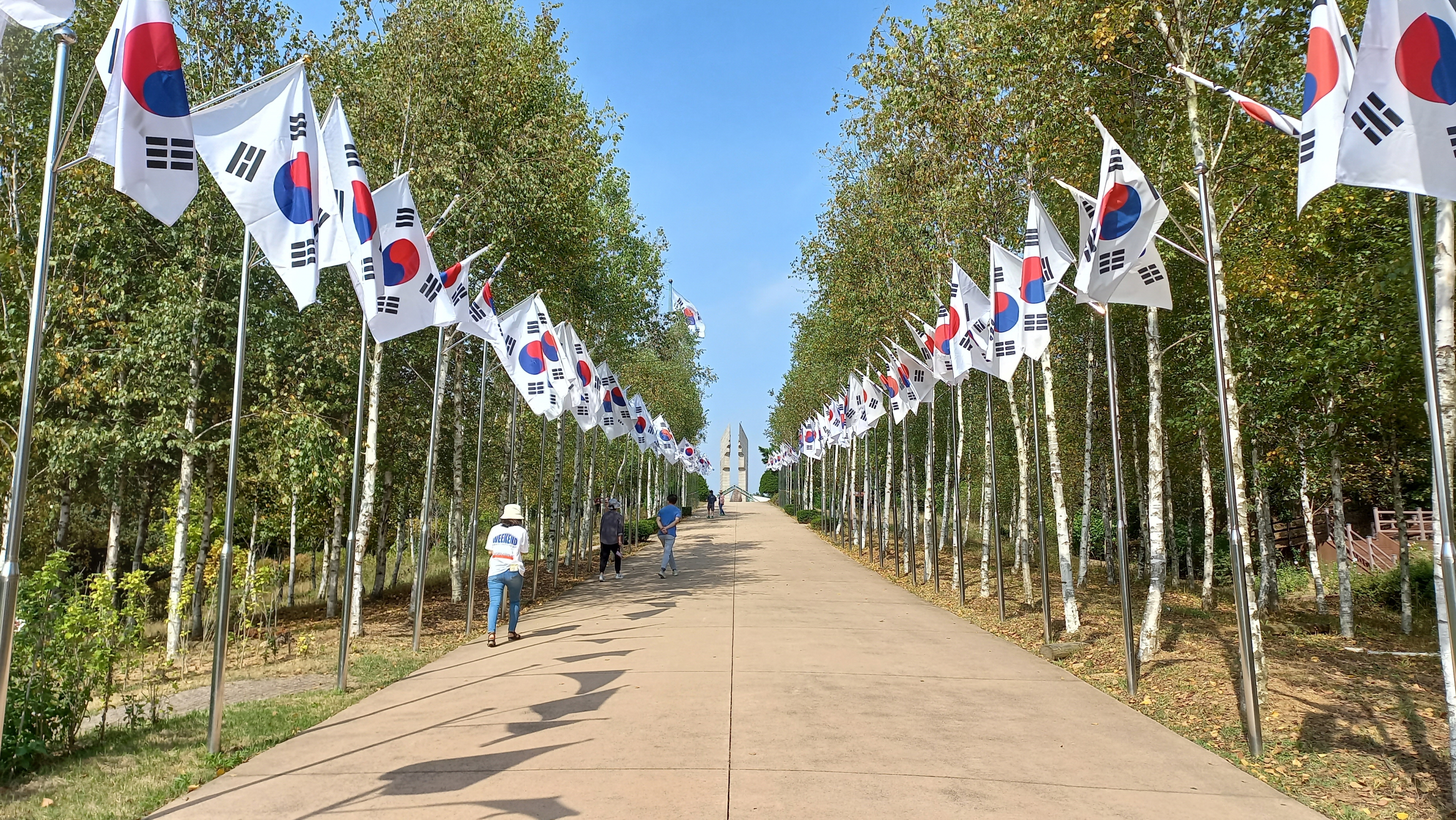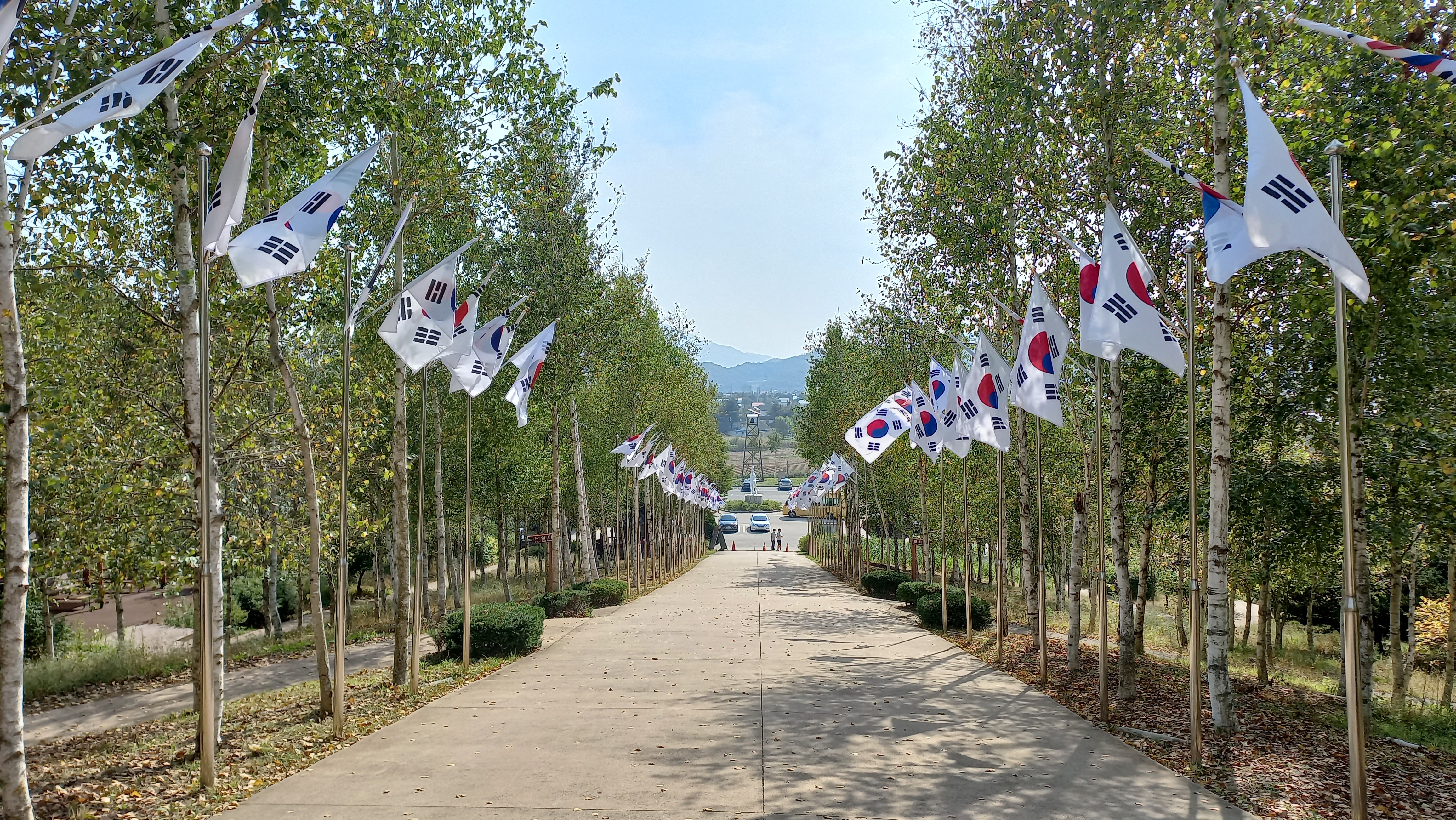 백마고지 전적비와 전망대로 올라가는 길엔 양쪽에 태극기가 가득 게양되어 있습니다.
