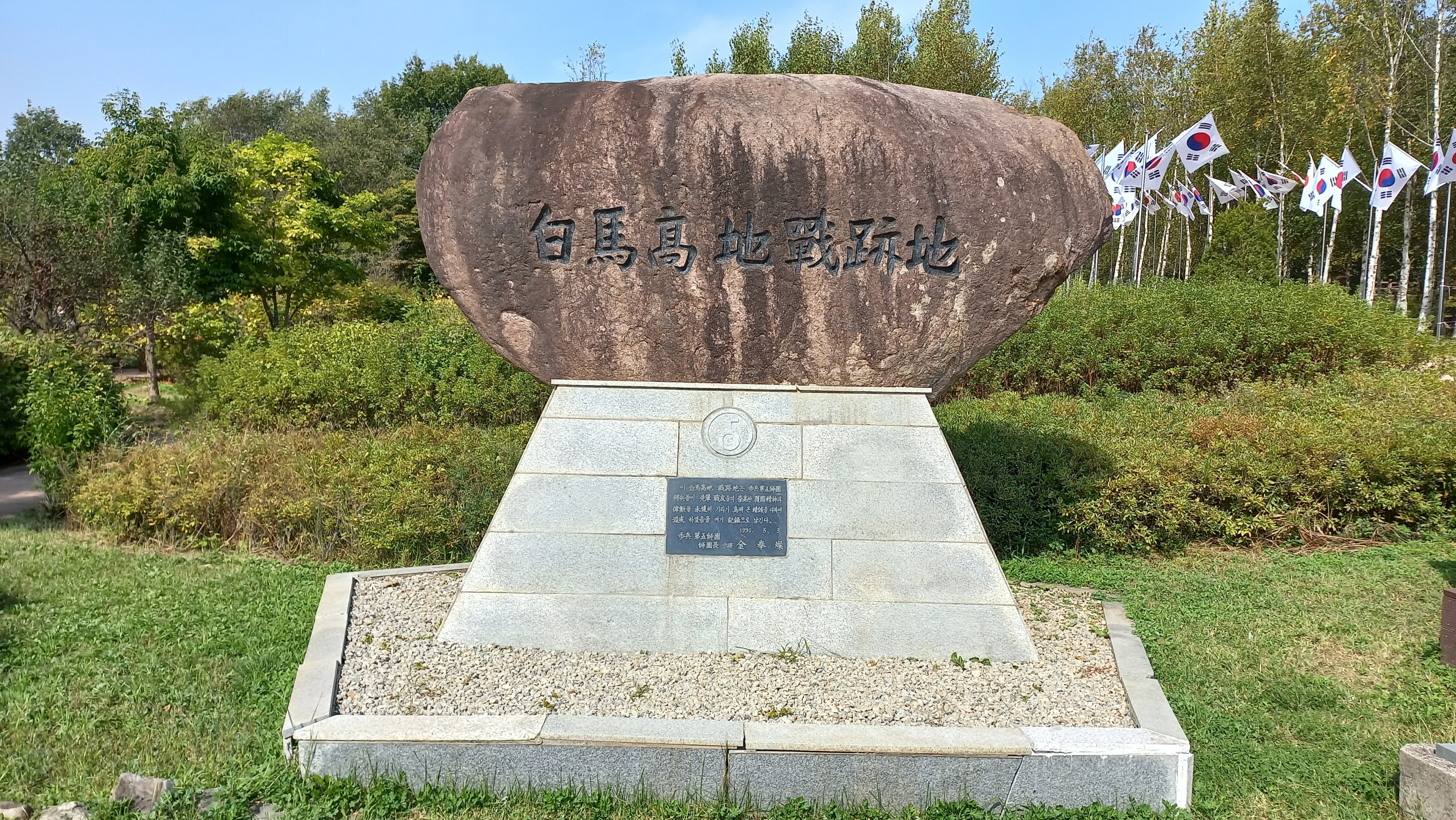 주차장에 있는 백마고지 전적지 입석 모습