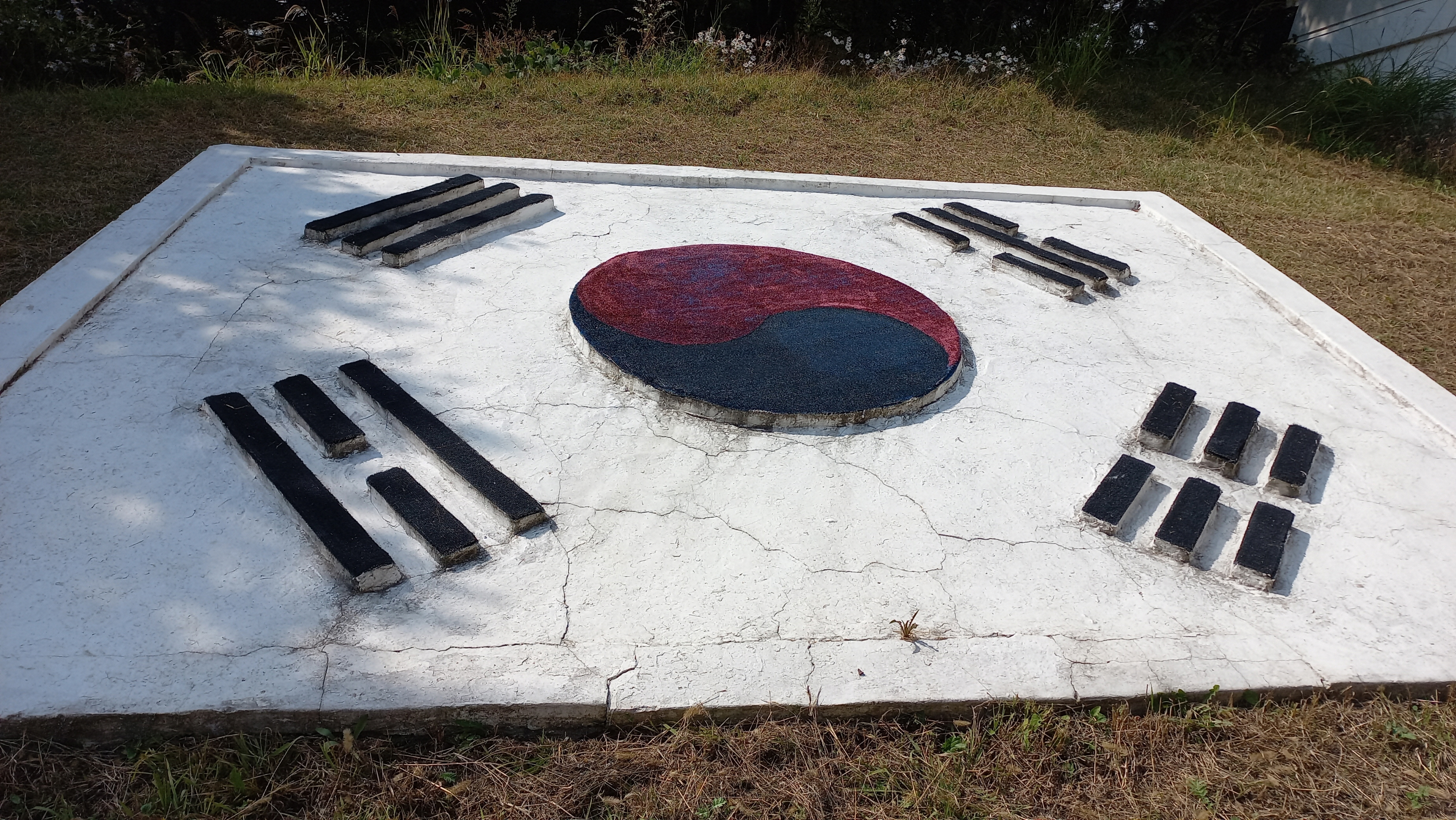 백마고지 전시관 앞에는 좌우측에 태극지와 한반도 지도가 새겨져 있습니다.