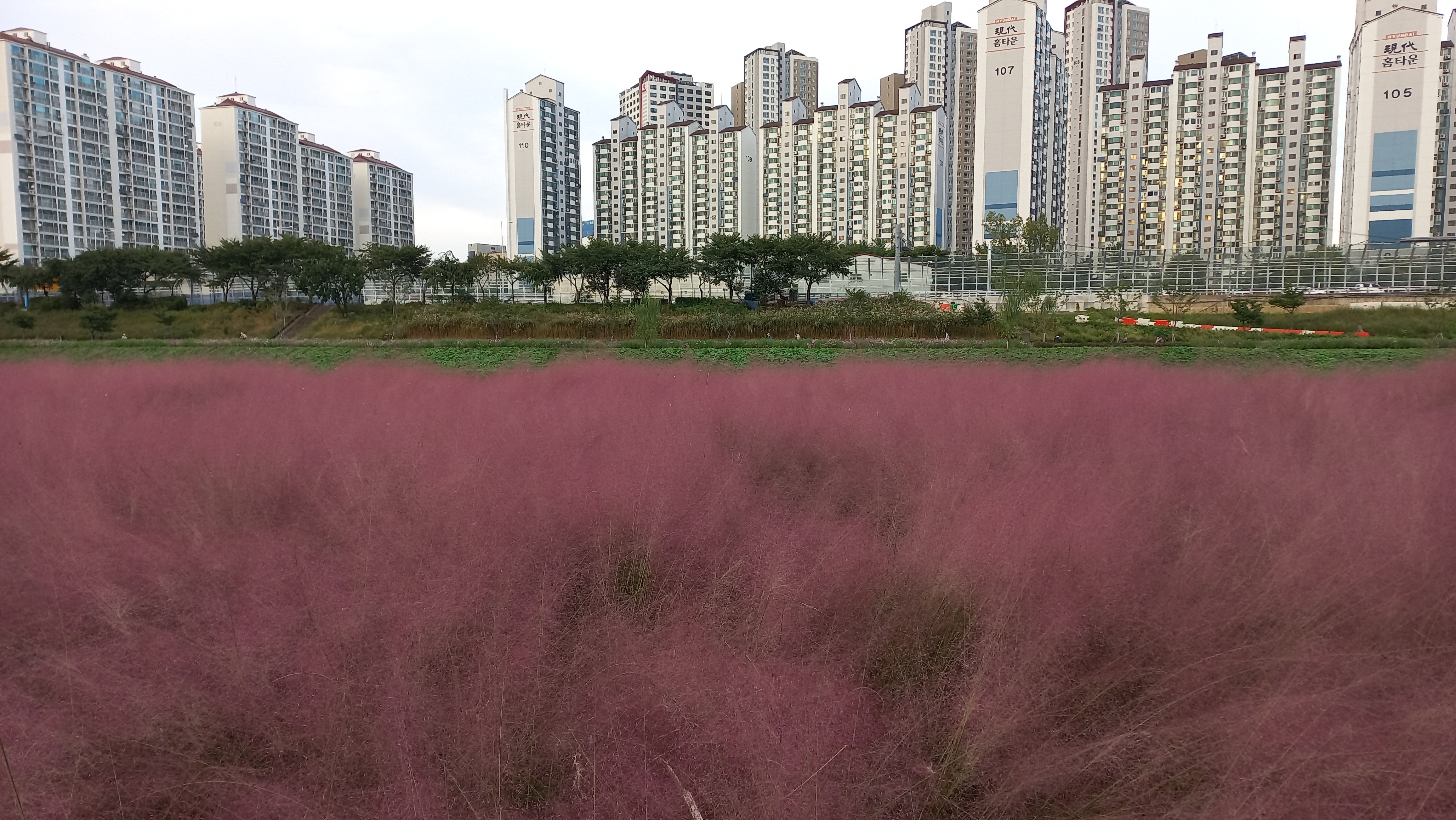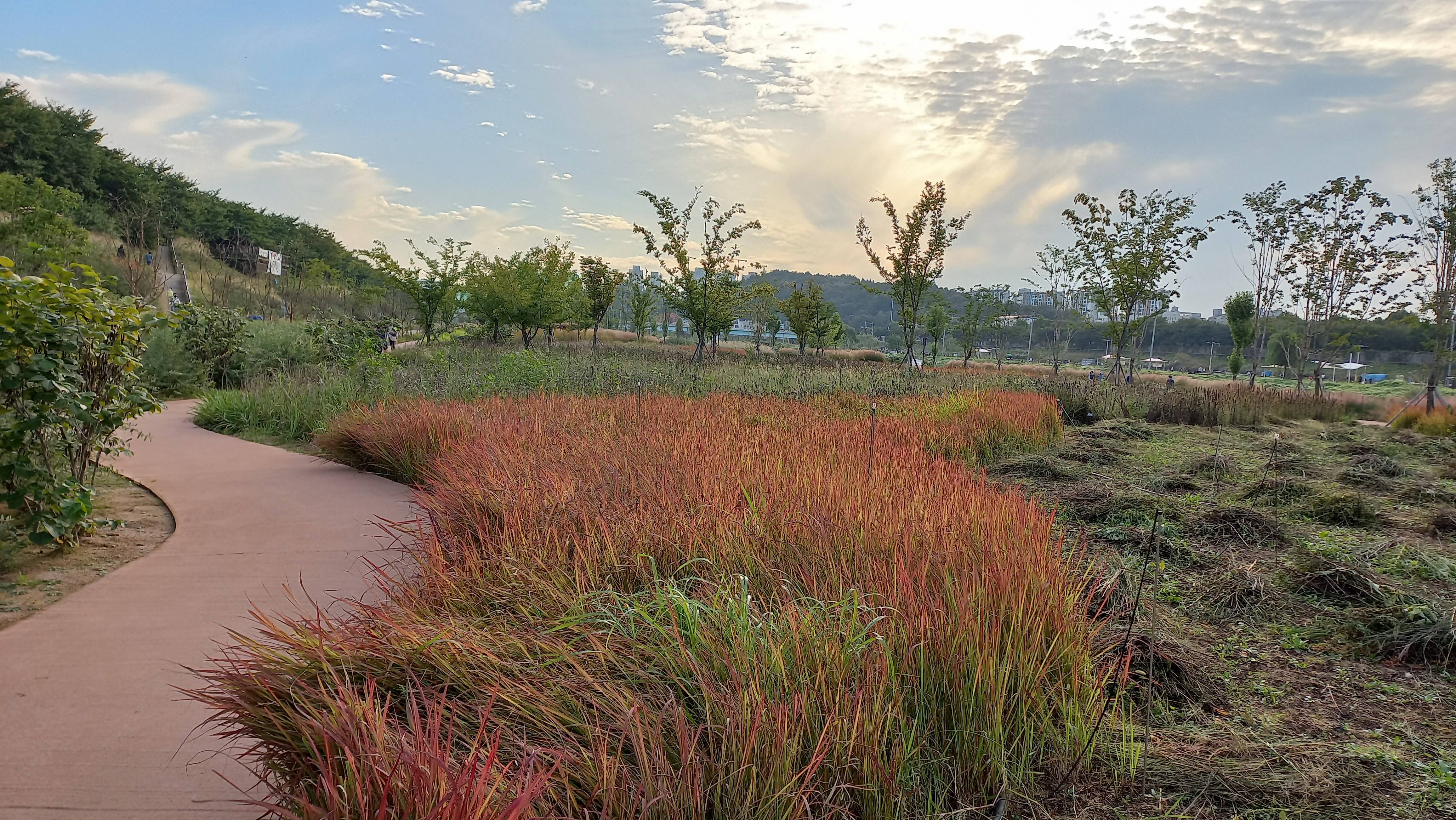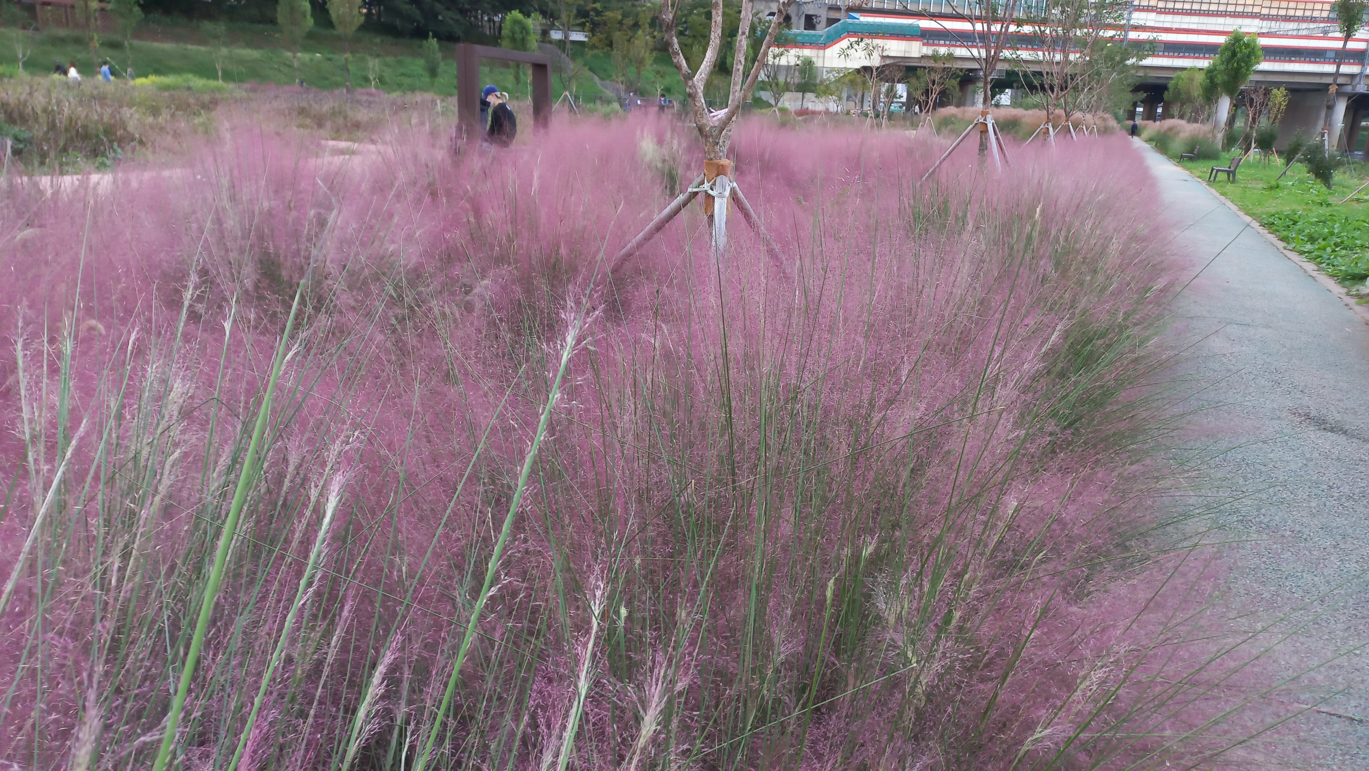 고척교를 지나면 우측 화단에 댑싸리와 핑크뮬리가 조금씩 심어져 있습니다.
