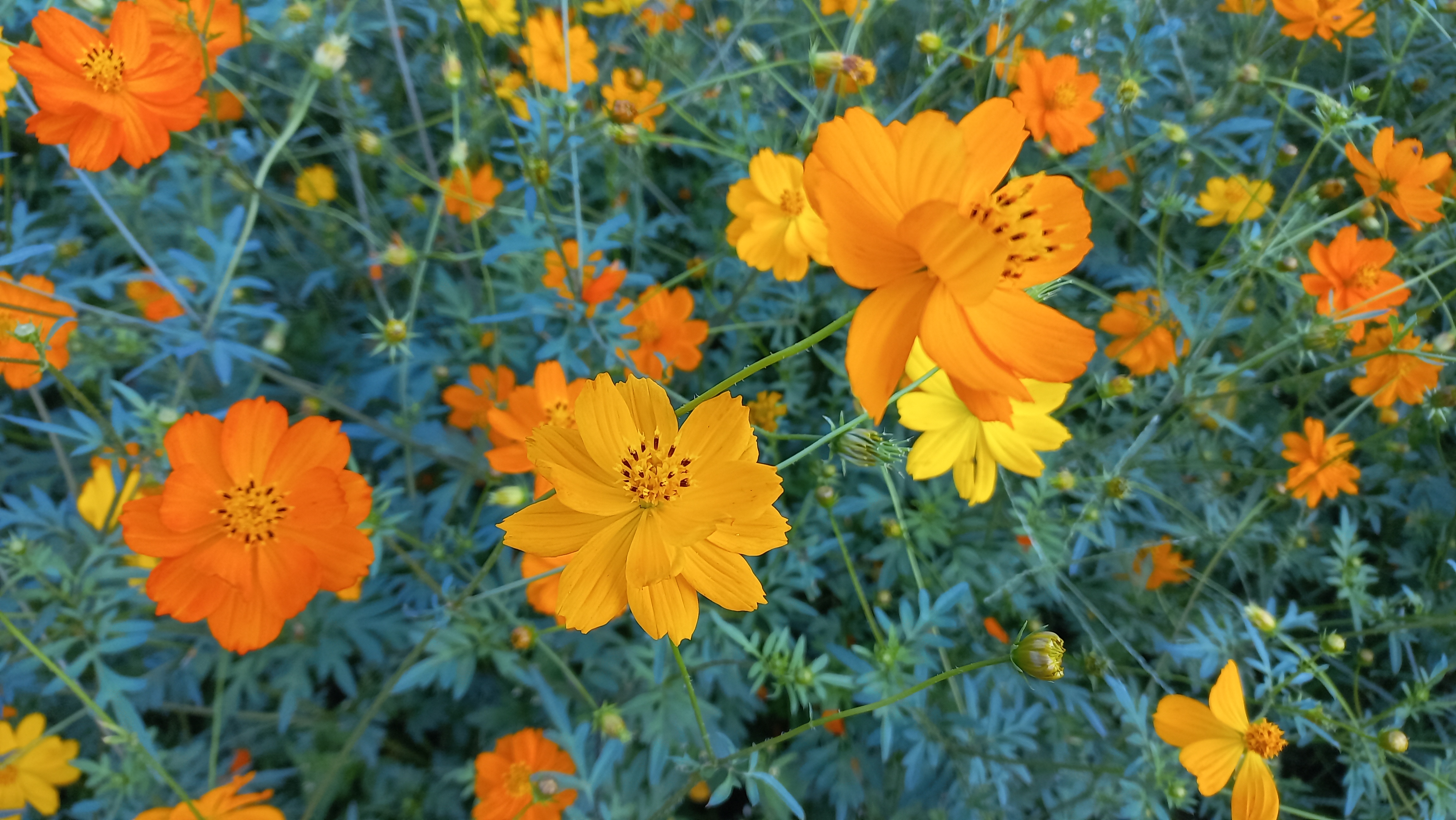 노랑코스모스도 오렌지색으로 예쁜 자태를 보여주네요.
