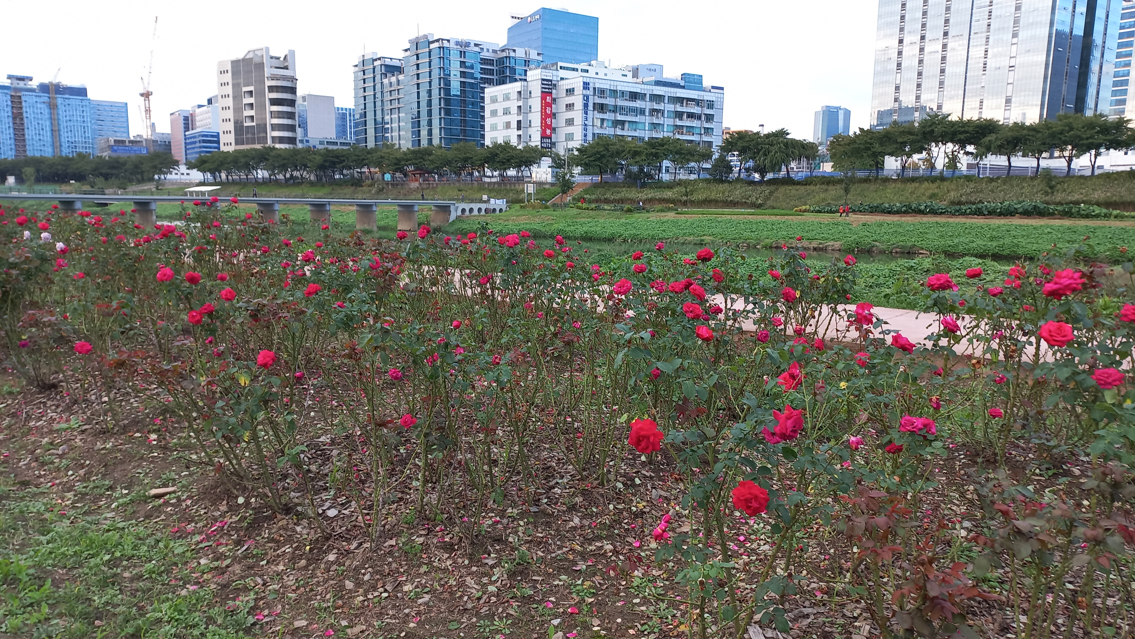 곳곳에 아직까지 장미꽃도 피어있는 모습