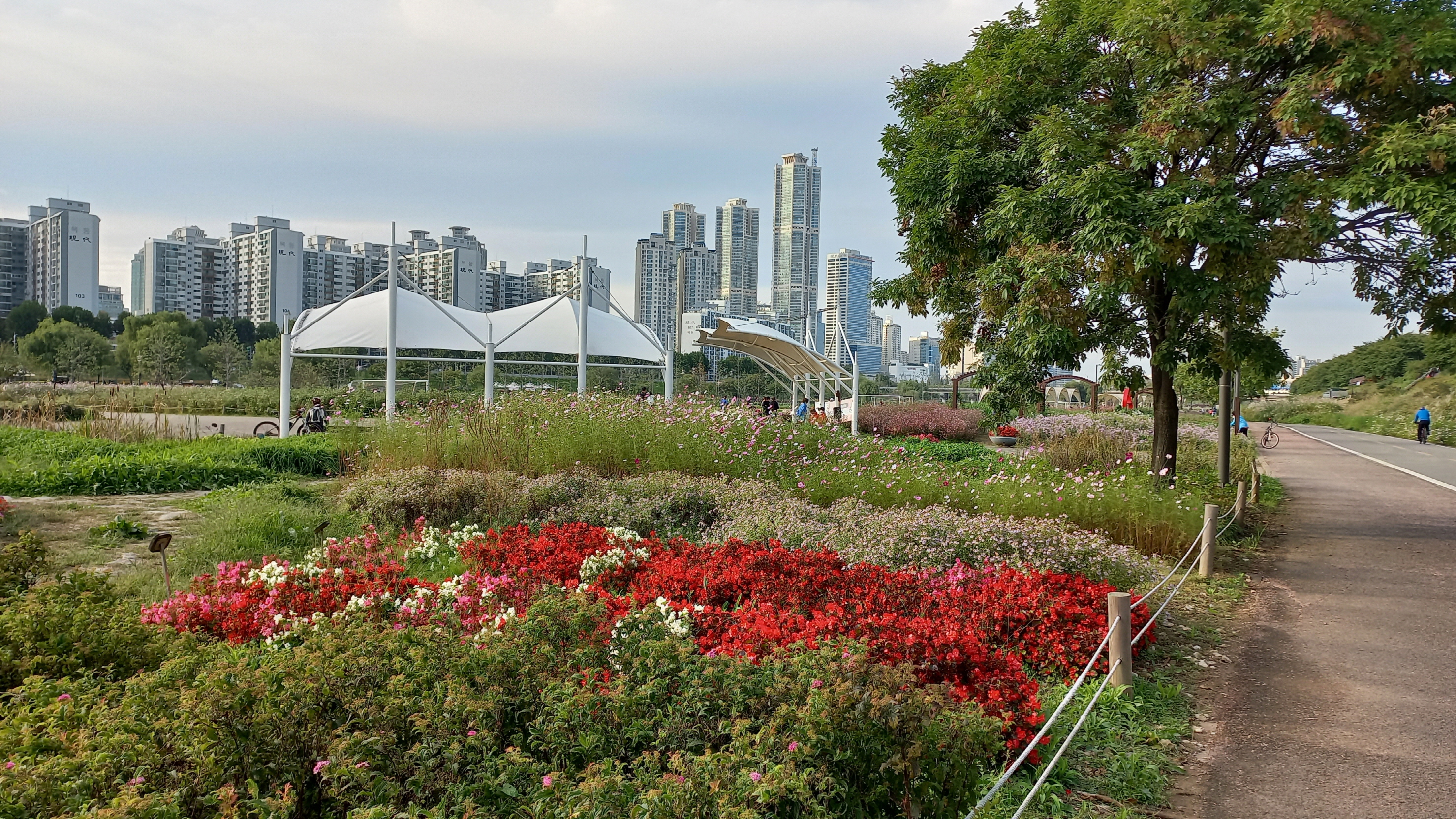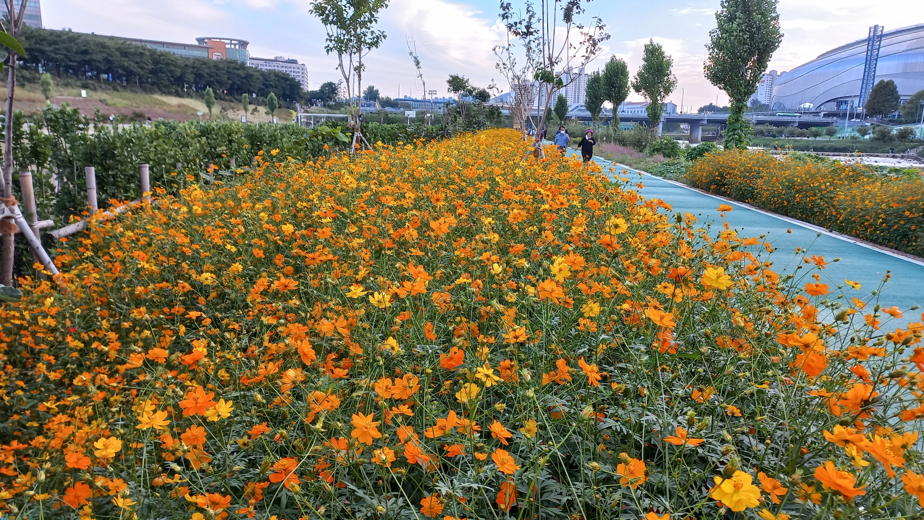 안양천의 가을 꽃잔치 풍경을 구경해 보세요.