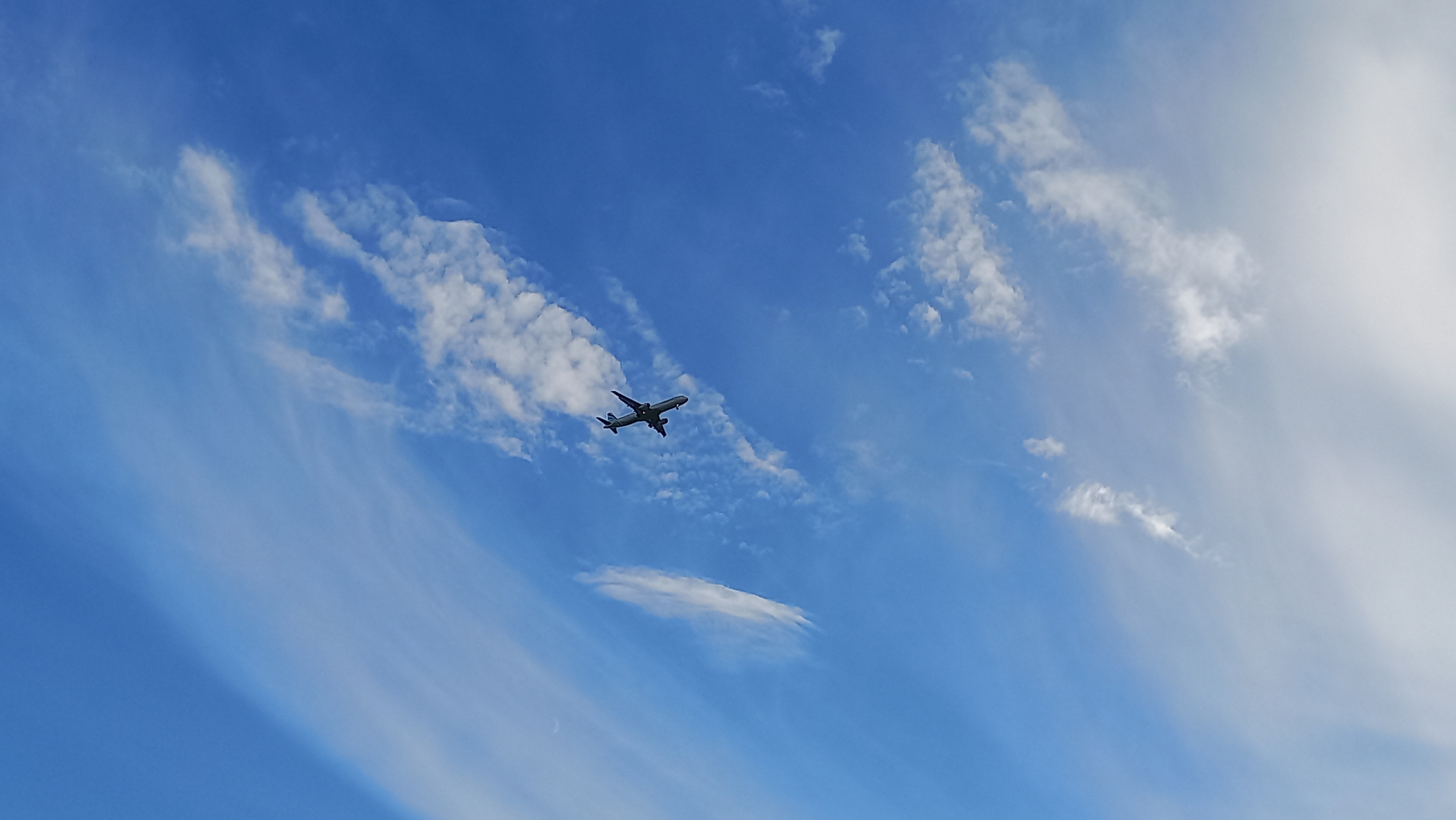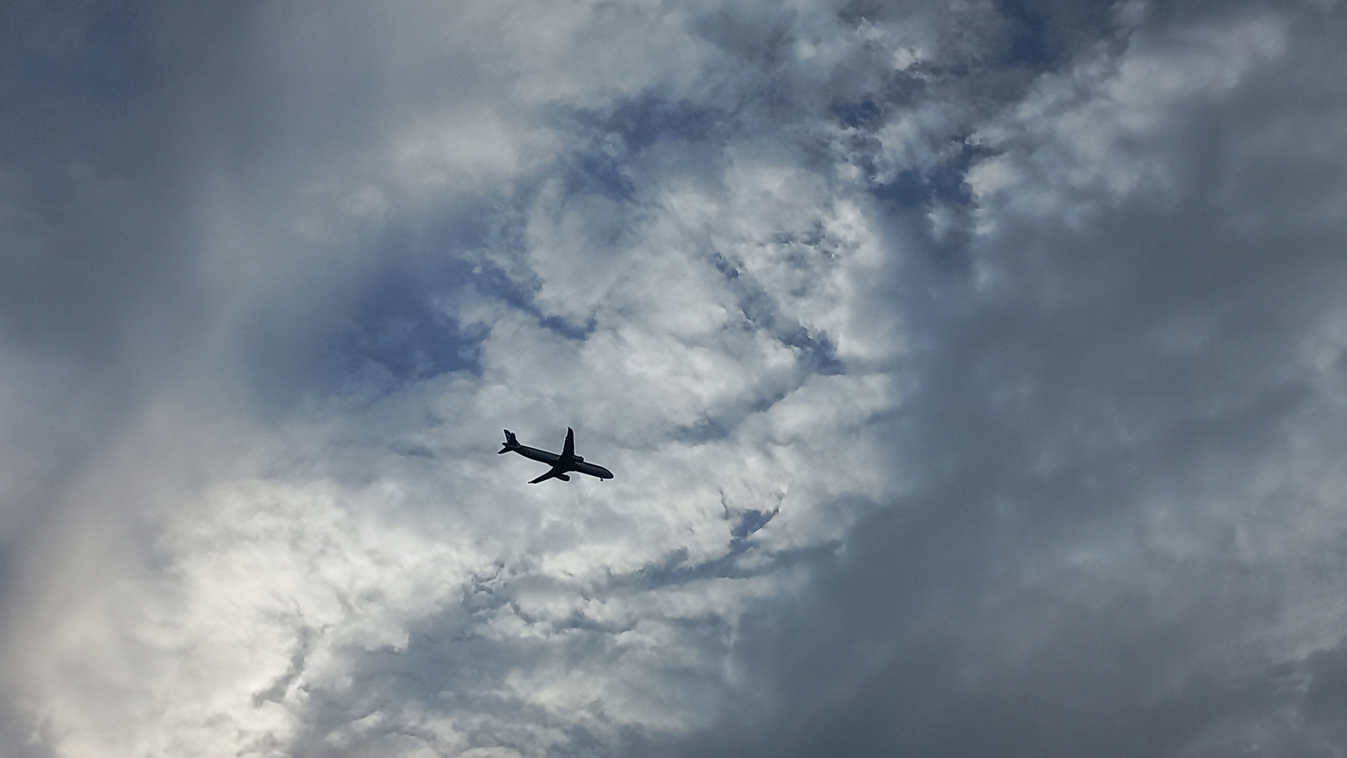 같은 비행기를 찍었는데 바로 위 사진은 청명한 모습인데, 위 사진은 까만 구름으로 뒤덮인 모습입니다.