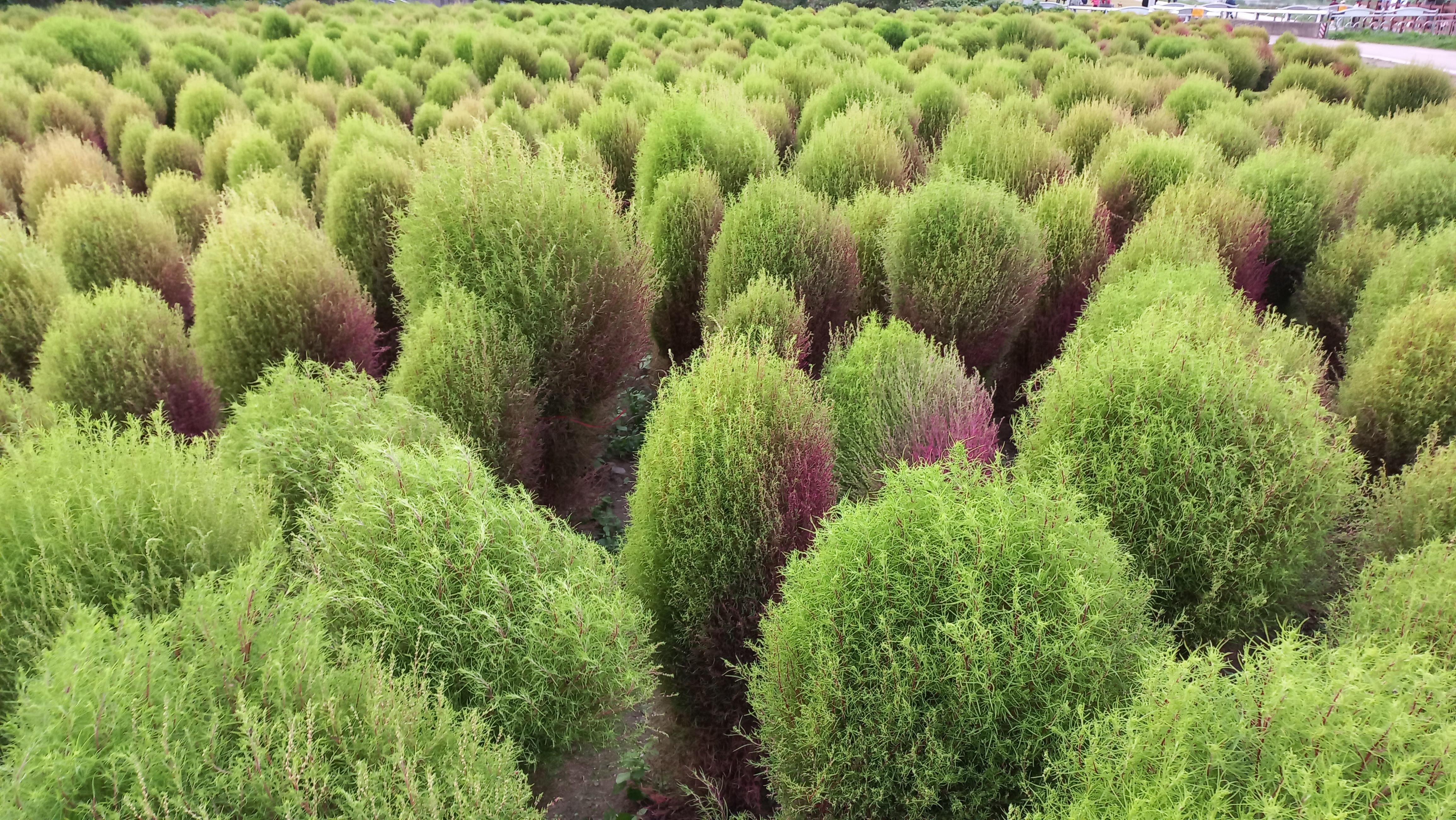소규모의 댑싸리도 심어져 있는데, 일부는 붉게 물들어가는 모습입니다.