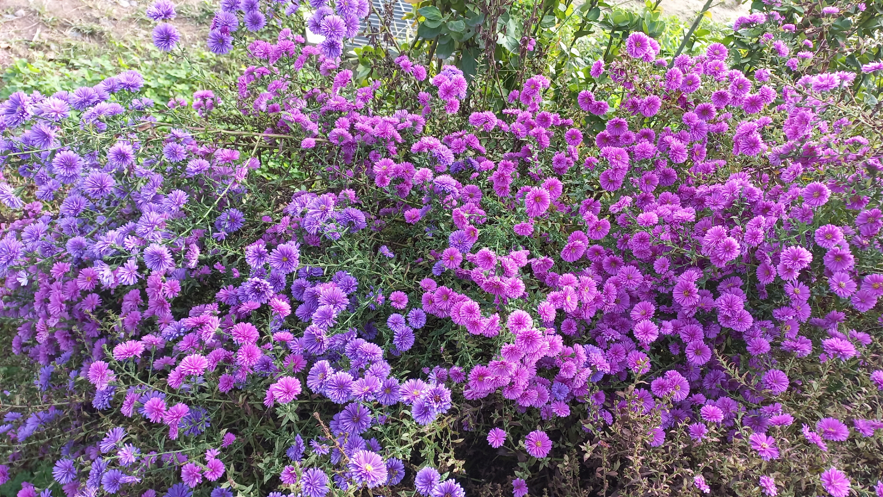 신정잠수교 앞 꽃단지에는 아스타의 보라색 꽃이 피어있습니다.