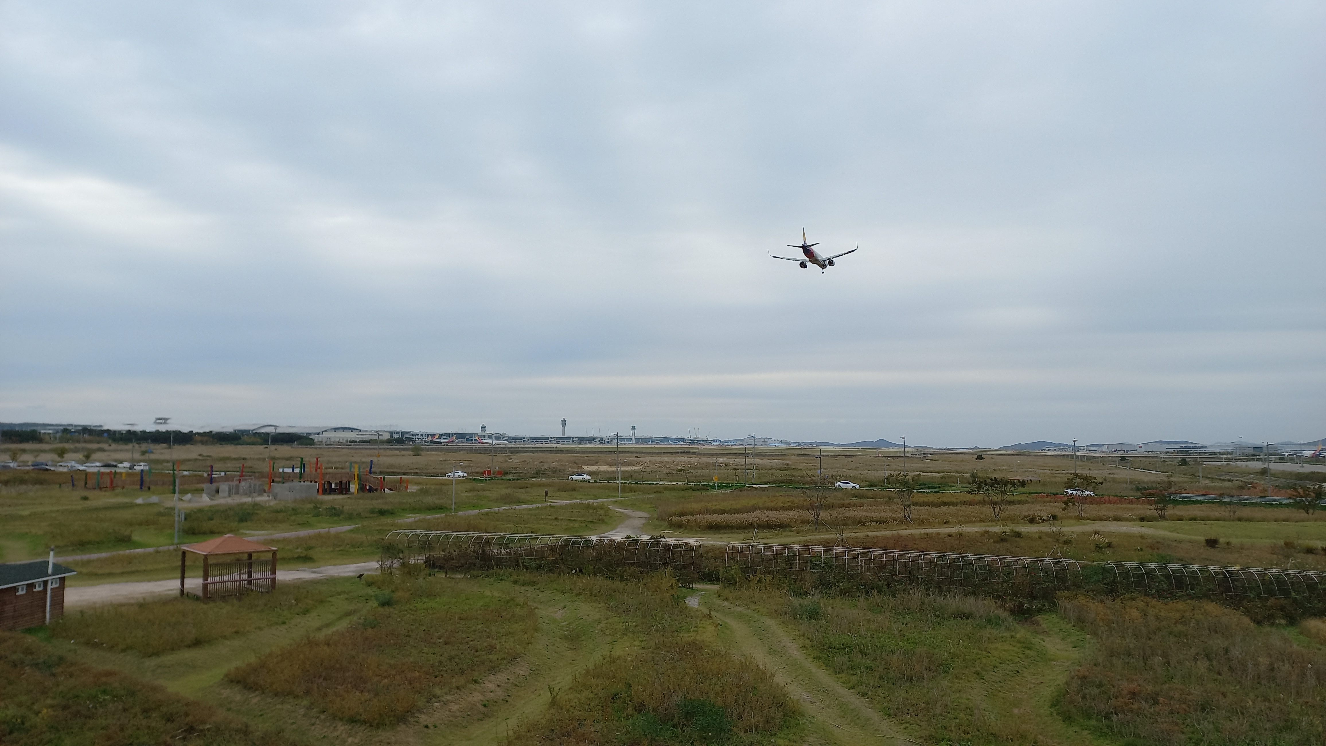 이착륙하는 비행기 모습과 자연경관을 즐기기에 좋은 인천공항 하늘정원(하늘공원) 풍경을 담았습니다.
