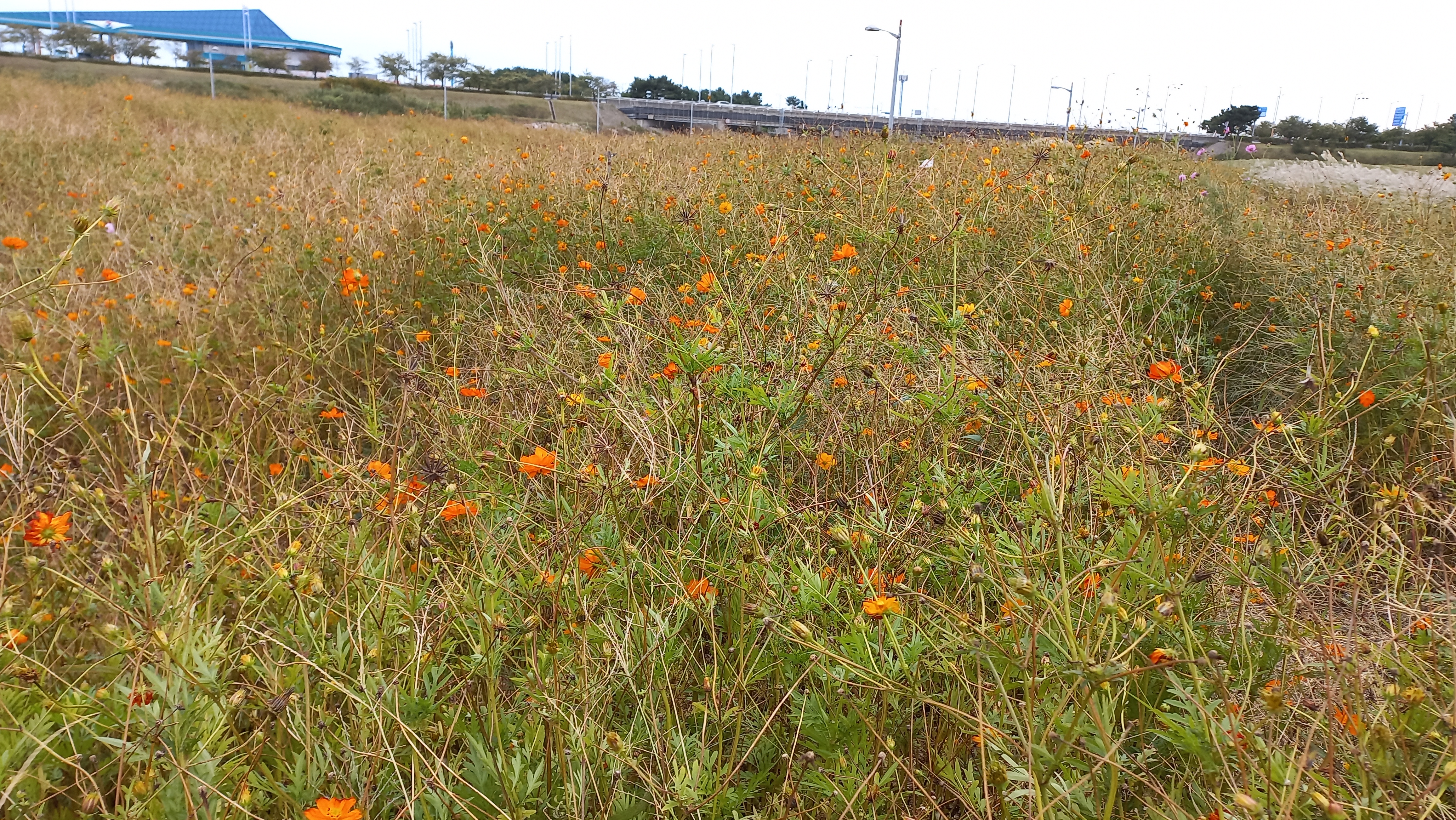 코스모스는 10월 21일까지 볼 수 있다고 해서 16일에 갔는데 이미 하늘정원 꽃밭은 트랙터로 모두 짓이겨져 있더군요.