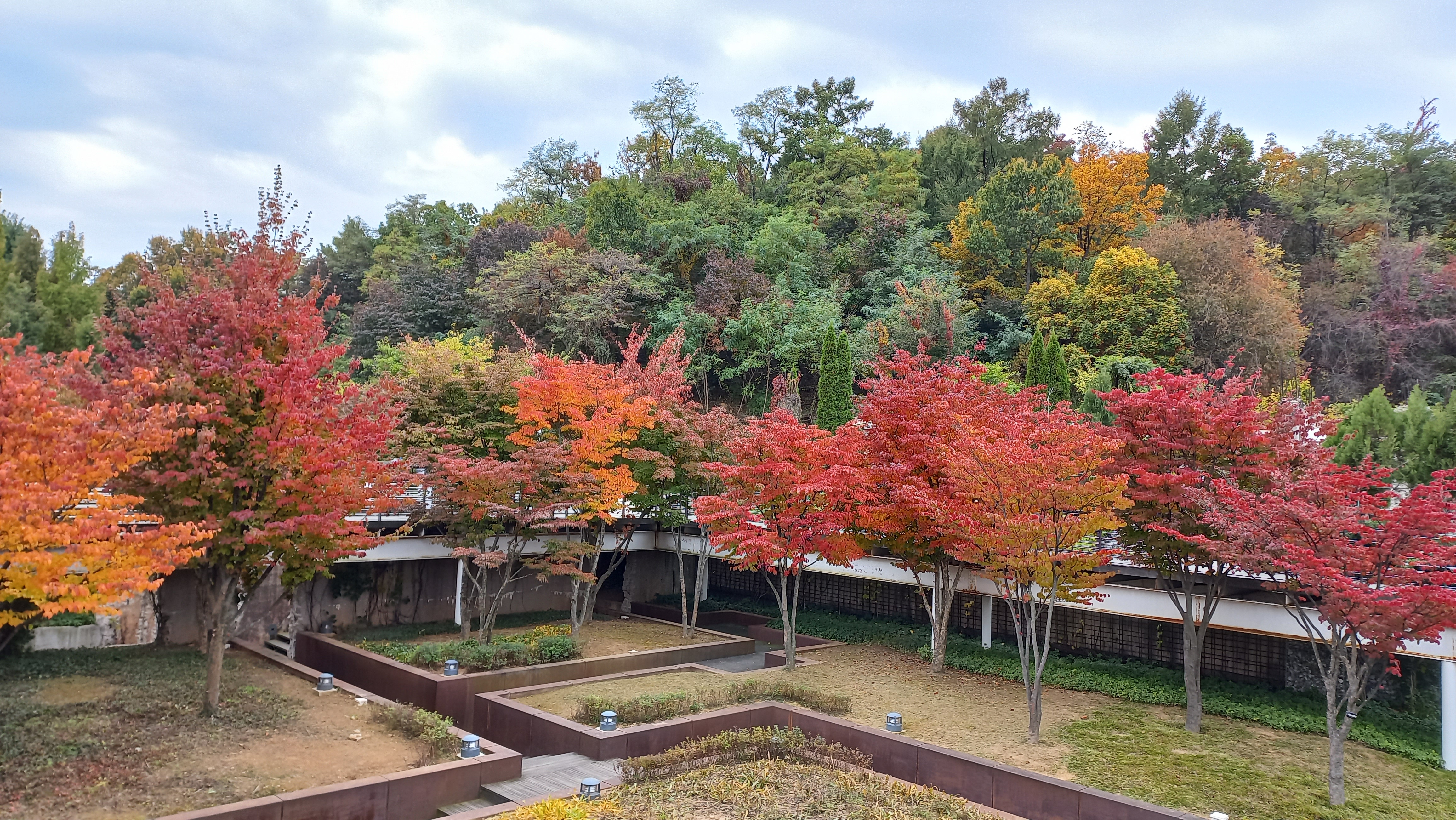 몬드리안 정원에도 붉은 단풍이 멋스럽네요.