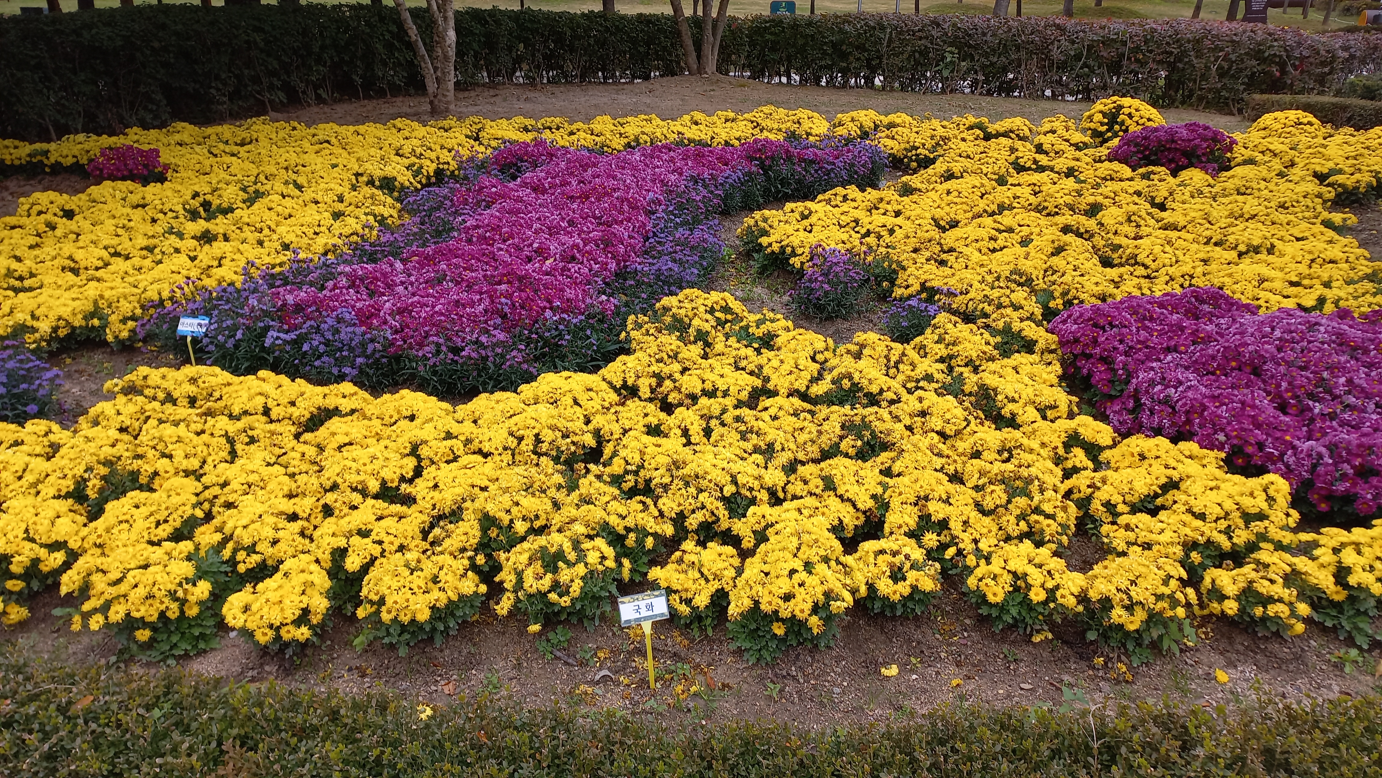 국화꽃 화단이 아름답게 조성되어 있습니다.