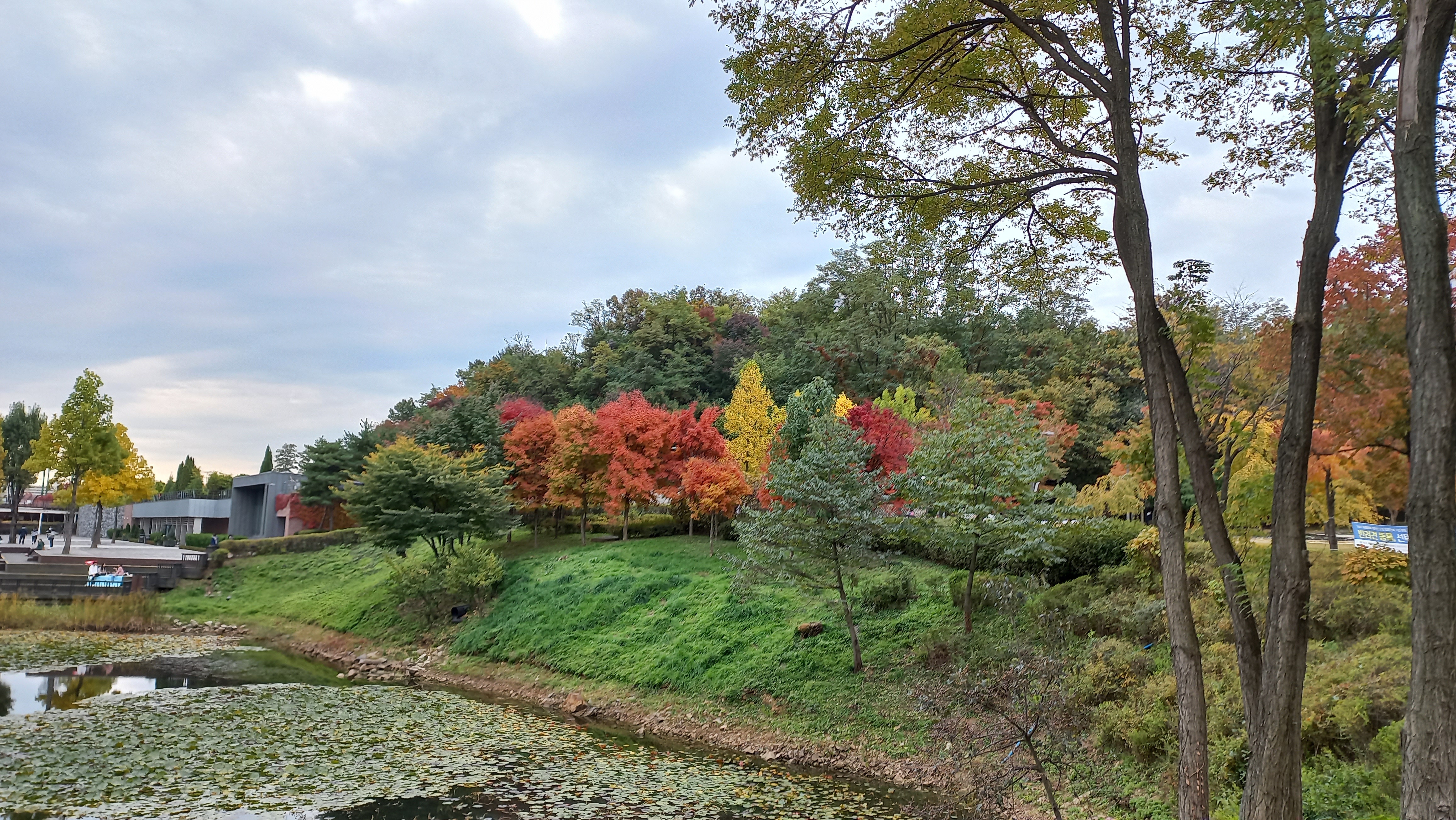 서서울호수공원 열림풀밭 풍경인데, 입구부터 멋진 가을 단풍이 눈을 호강하게 합니다.