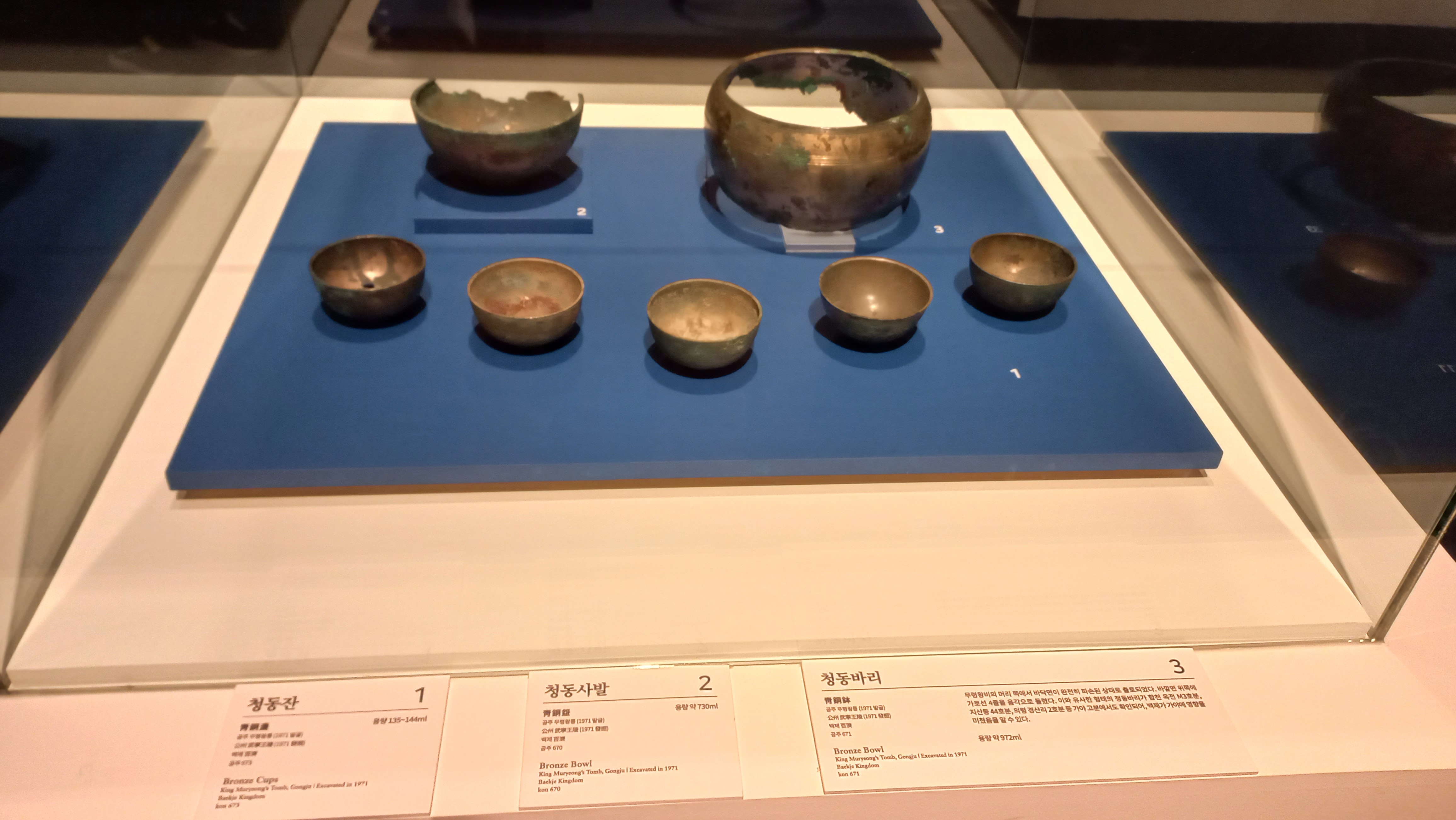 무령왕릉에서 발견된 청동잔, 청동사발, 청동바리