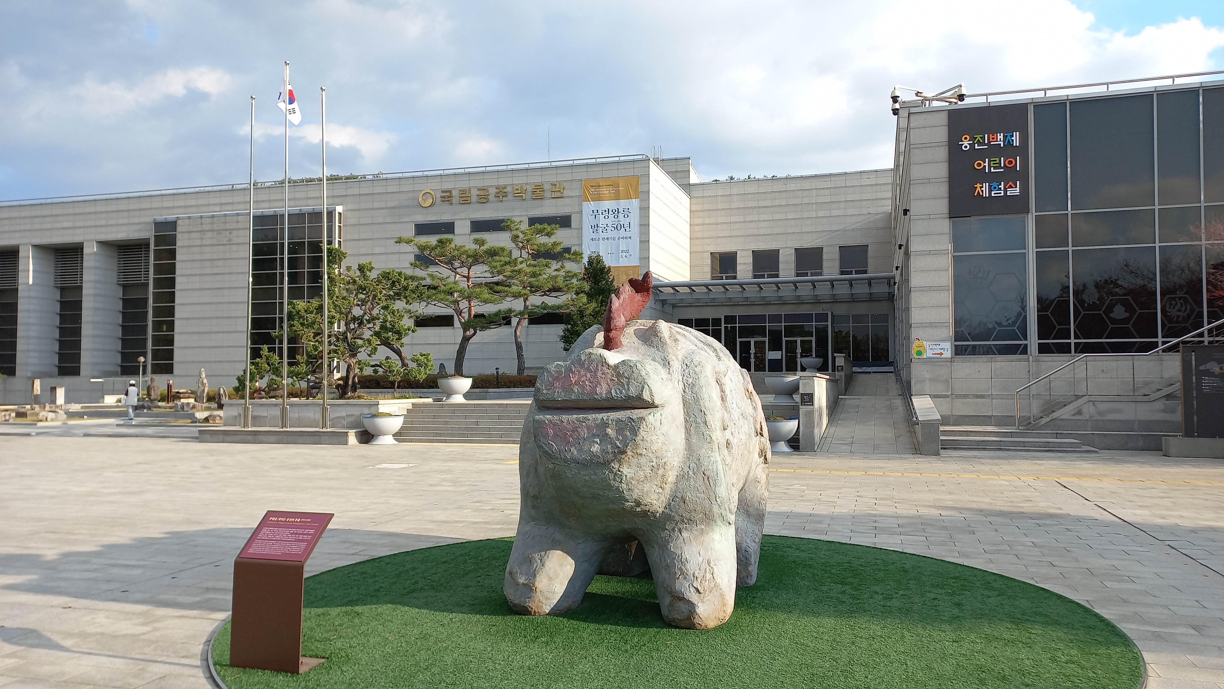 무령왕릉에서 출토된 국보 162호 진묘수를 박물관 대표 문화재로 선정하여 수호신의 의미로 설치한 것이라고 하네요.