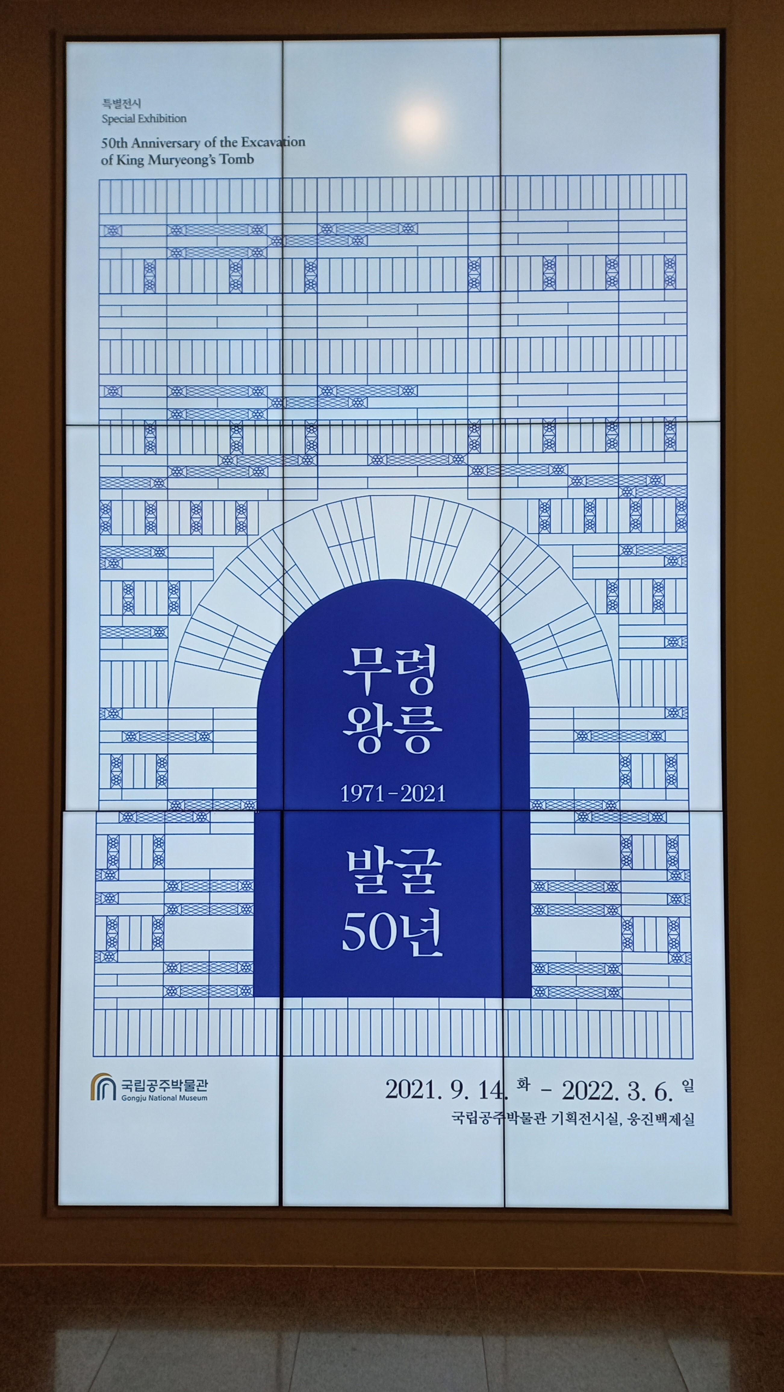 금년이 무령왕릉 발굴 50년을 맞이하여 기획전시실에서는 무령왕릉 발굴 50년이라는 전시를 하고 있습니다.