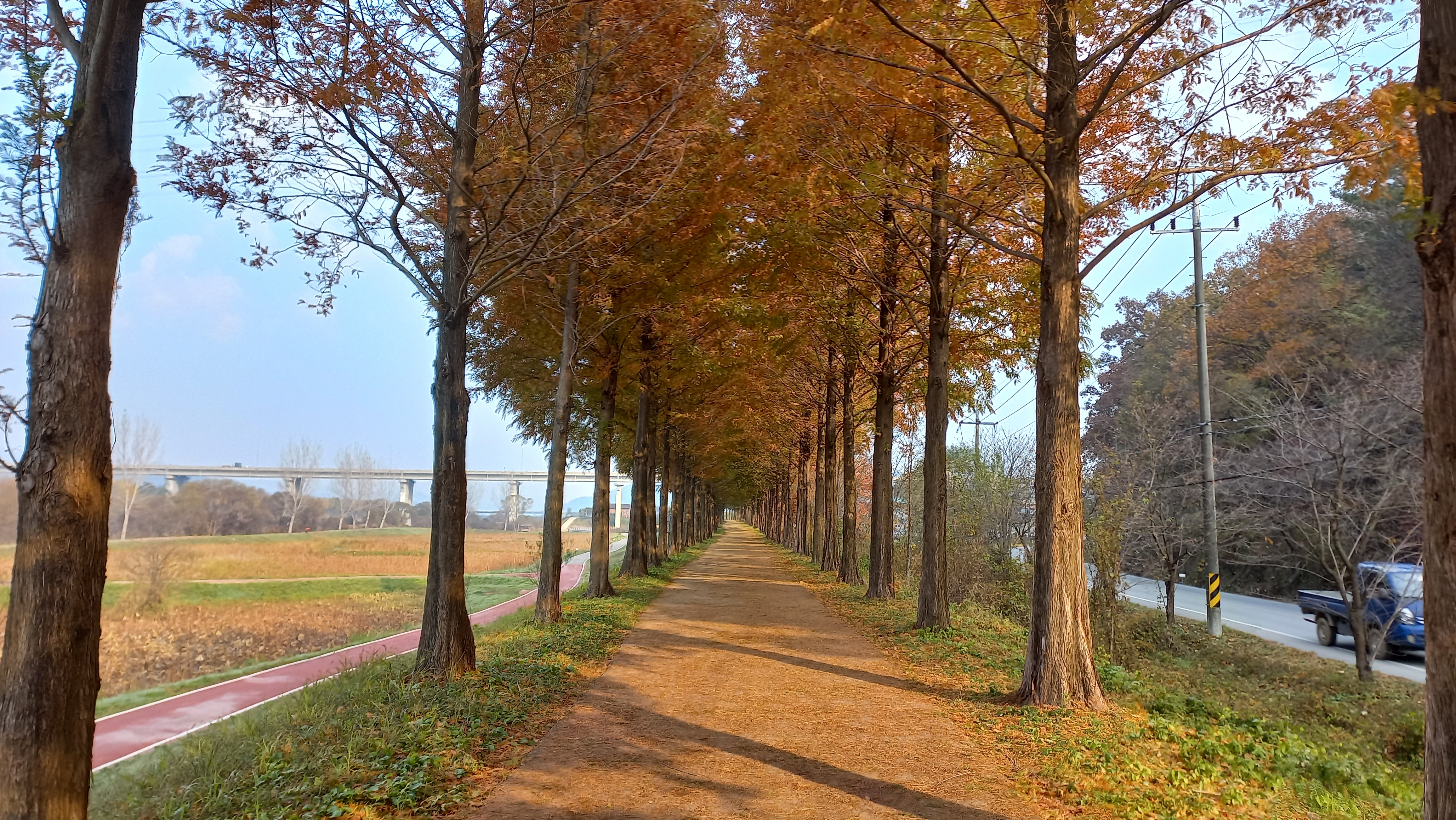공주 메타세콰이어숲길 가을 풍경을 담았습니다.