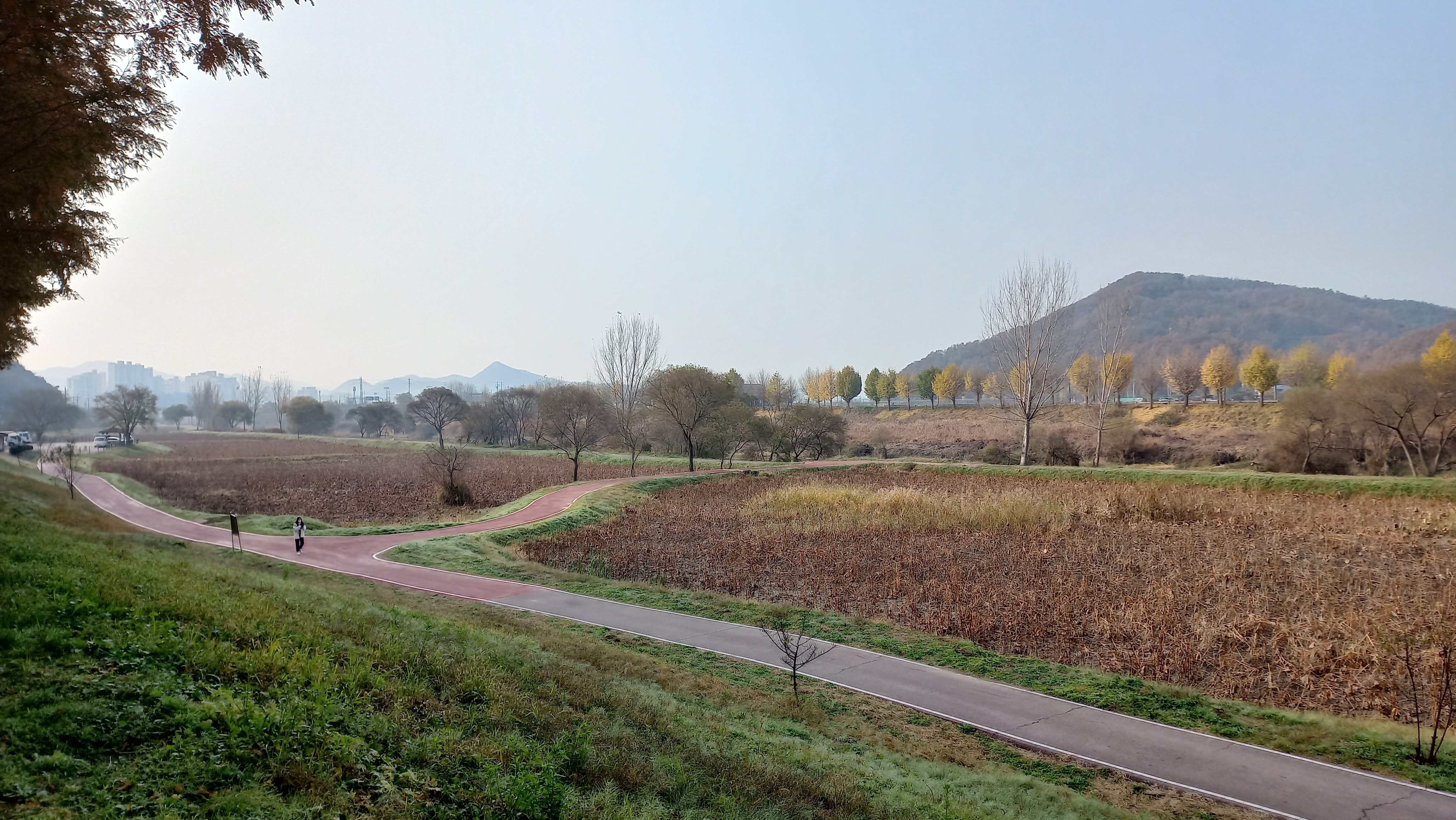 공주 메타세콰이어숲길은 정안천 생태공원을 따라 길게 이어져 있습니다.