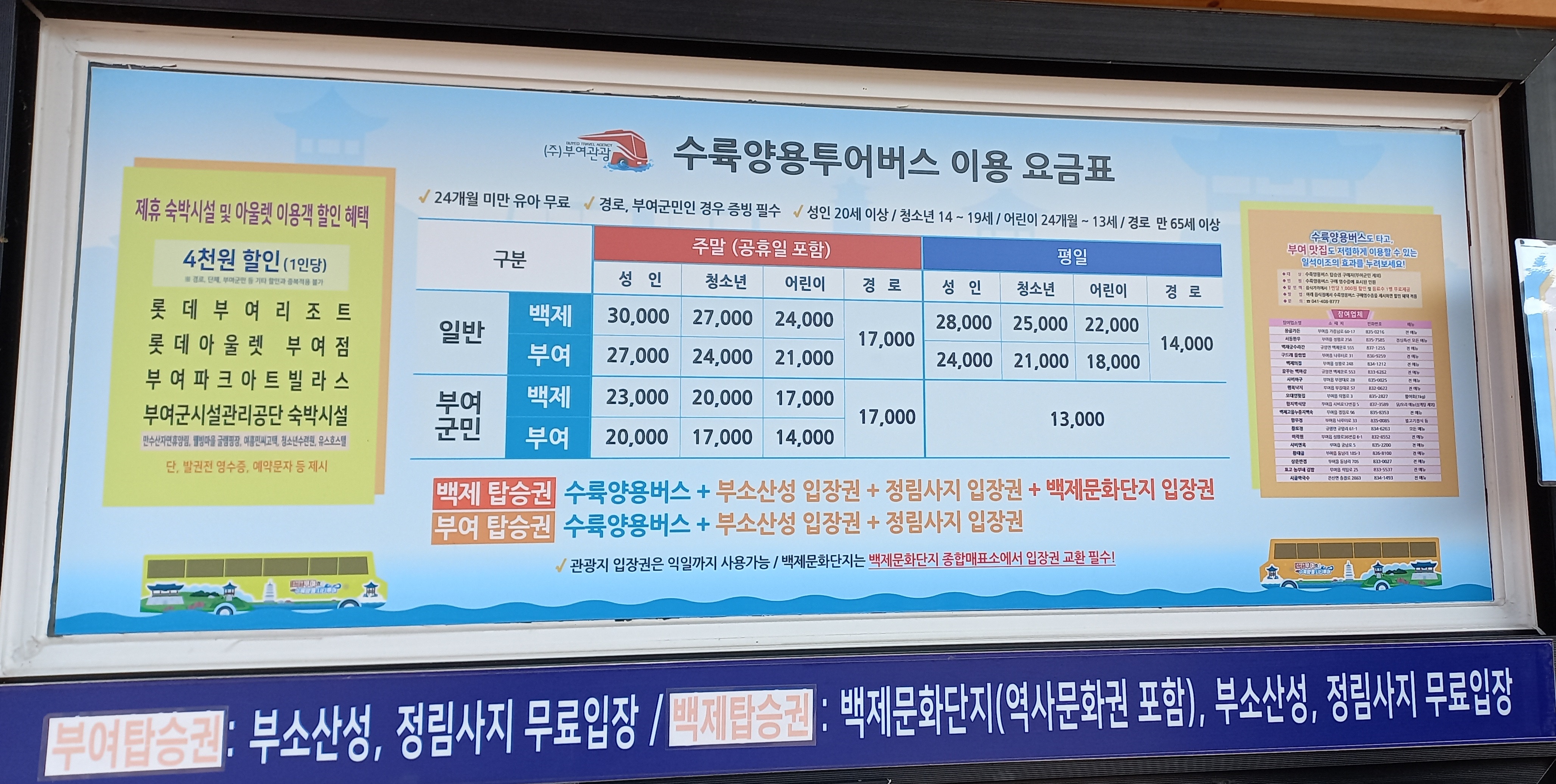 다만, 수륙양용버스를 탑승하면 부소산성과 정림사지 등의 입장권이 제공되네요.