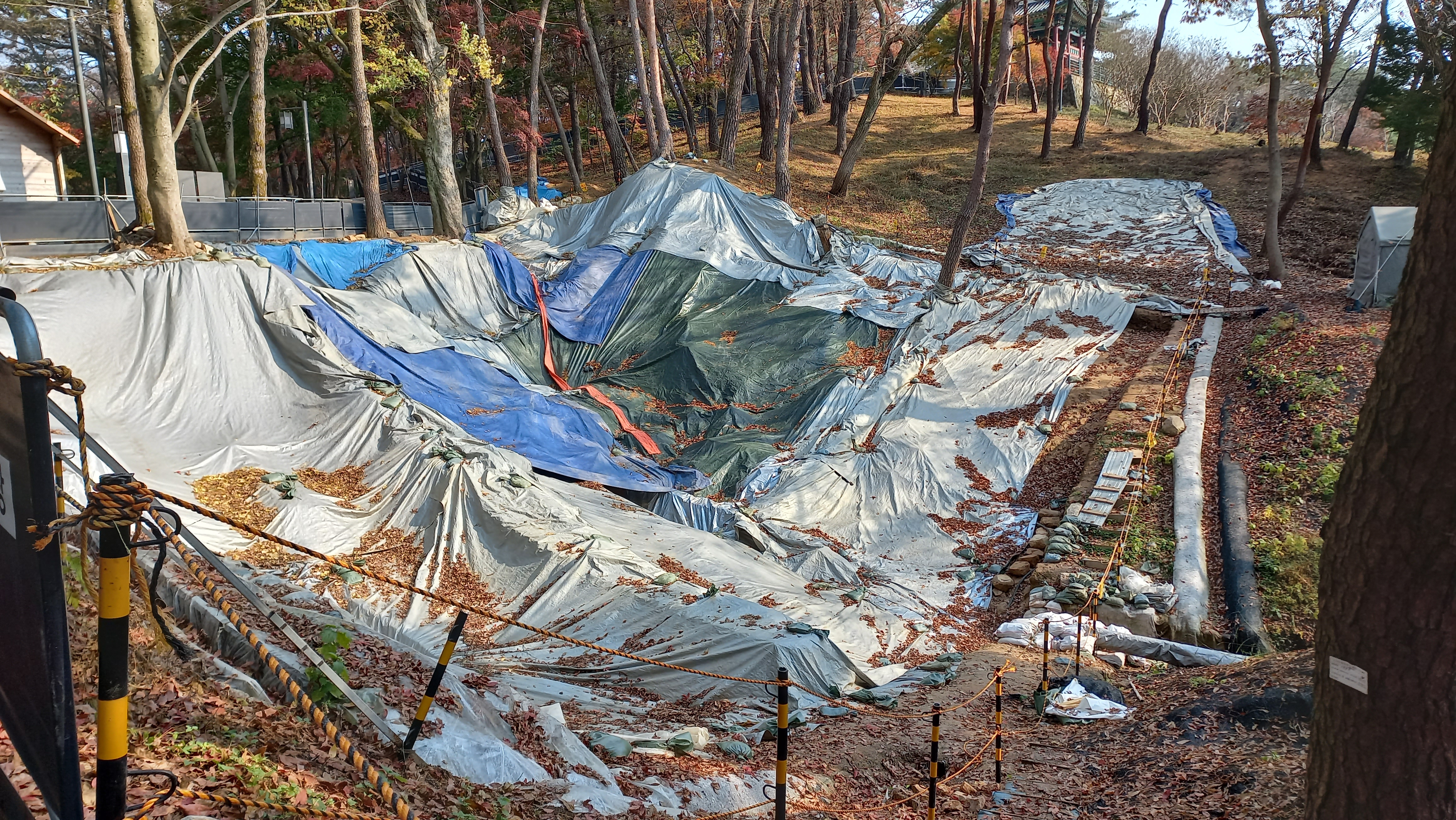 반월루 아래쪽에는 부소산성 발굴조사가 이루어지고 있습니다.