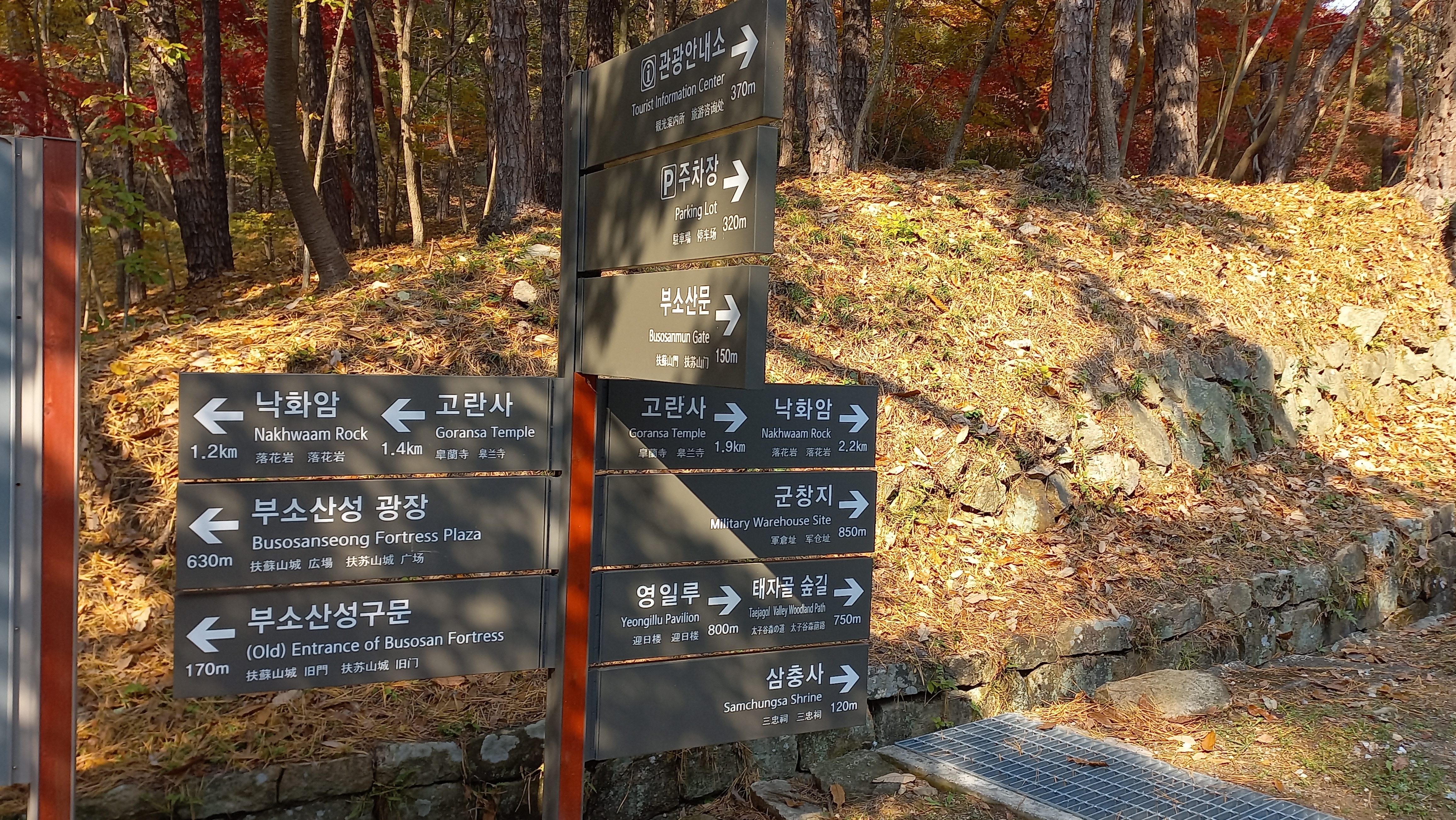 늦가을에 방문해서 단풍이 곱게 물들어 부소산 단풍이 무척 매혹적이었습니다.