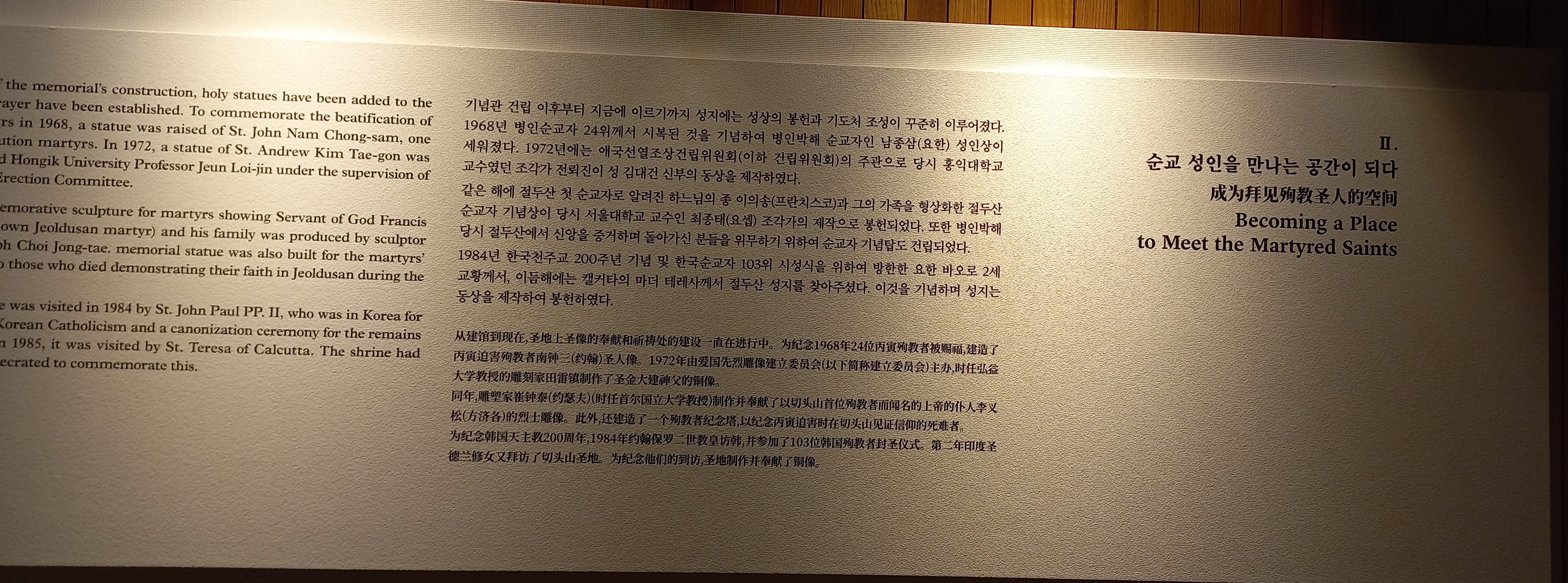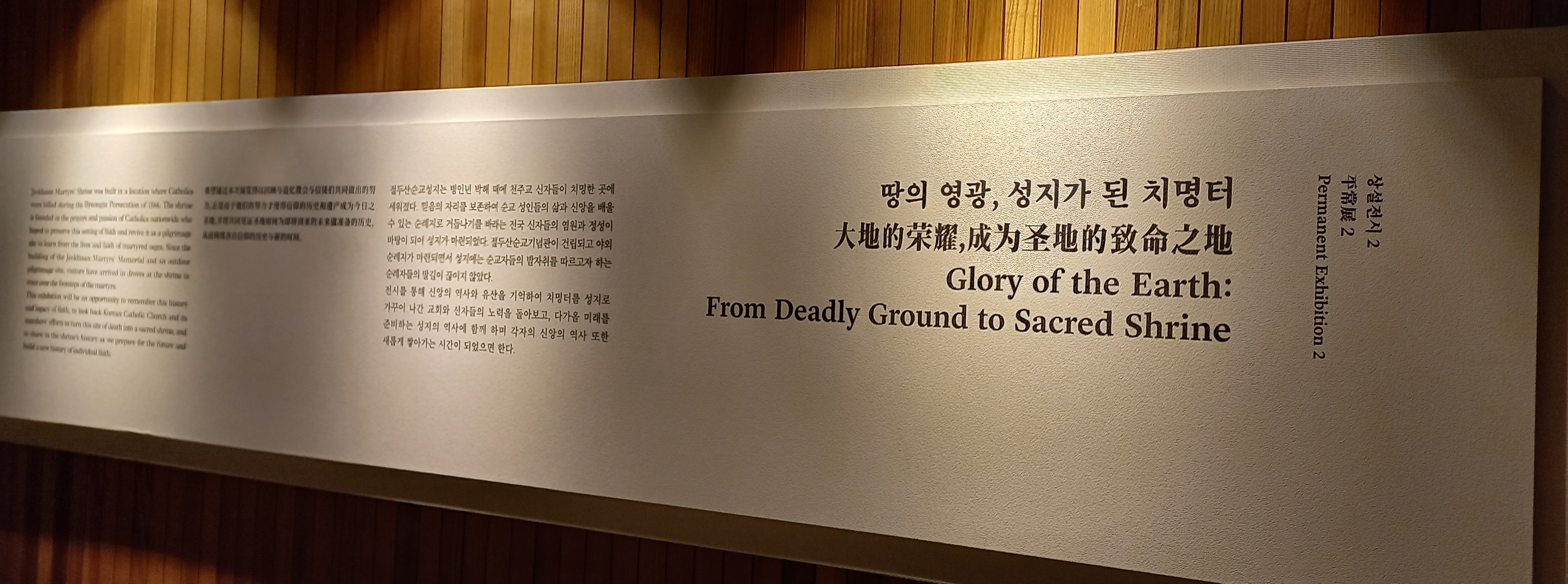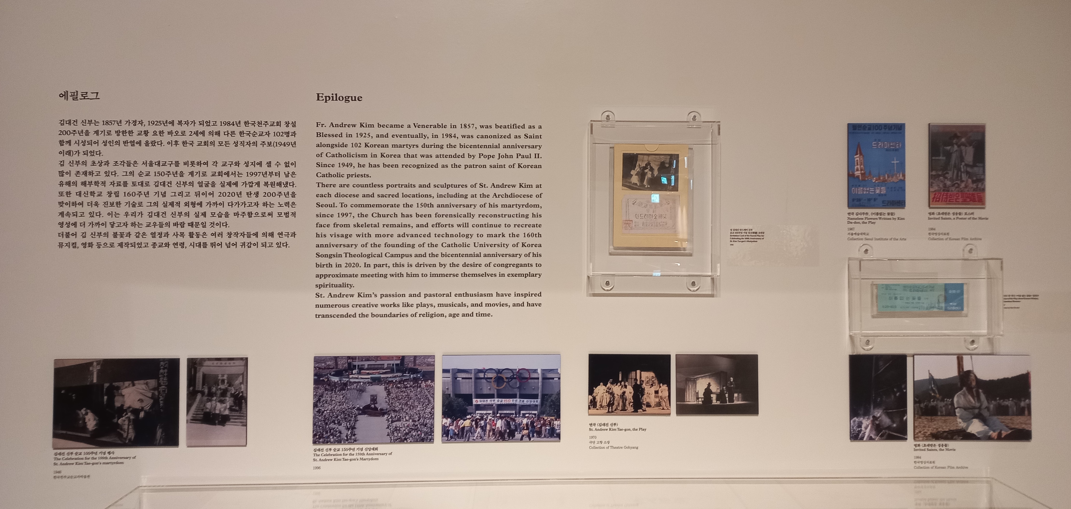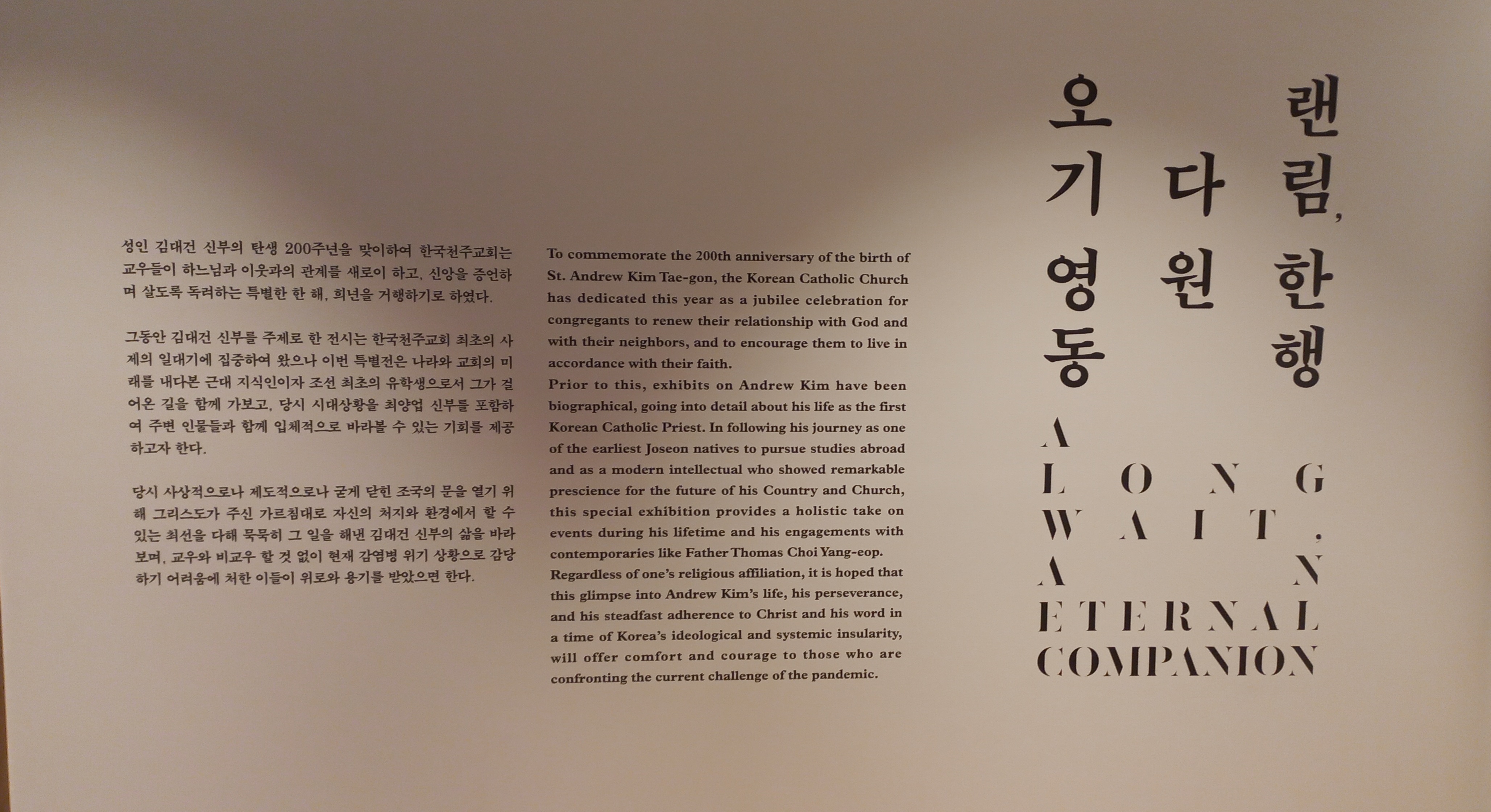 한국천주교회사에 대한 전시와 '오랜 기다림, 영원한 동행'이라는 주제의 김대건 신부 전시를 하고 있습니다.
