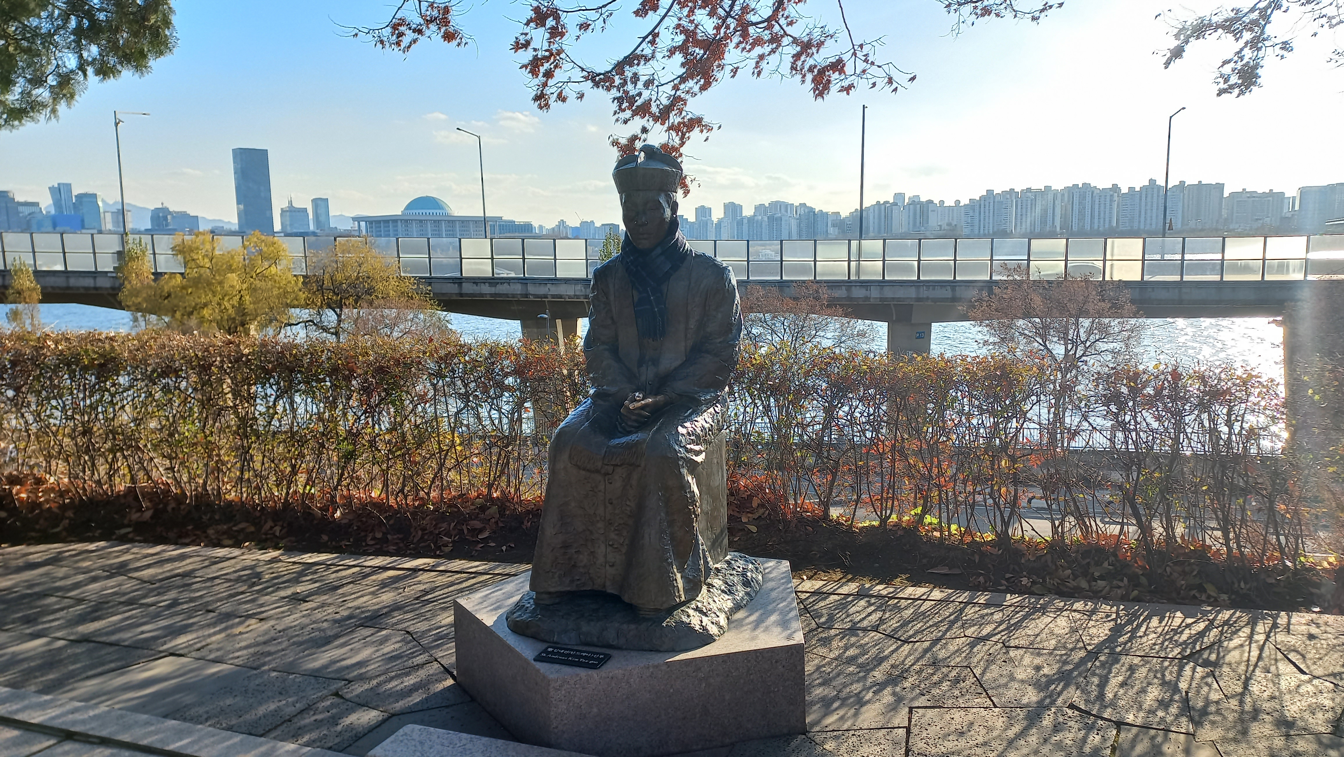 한국천주교순교자박물관에서 바라본 김대건 신부 동상