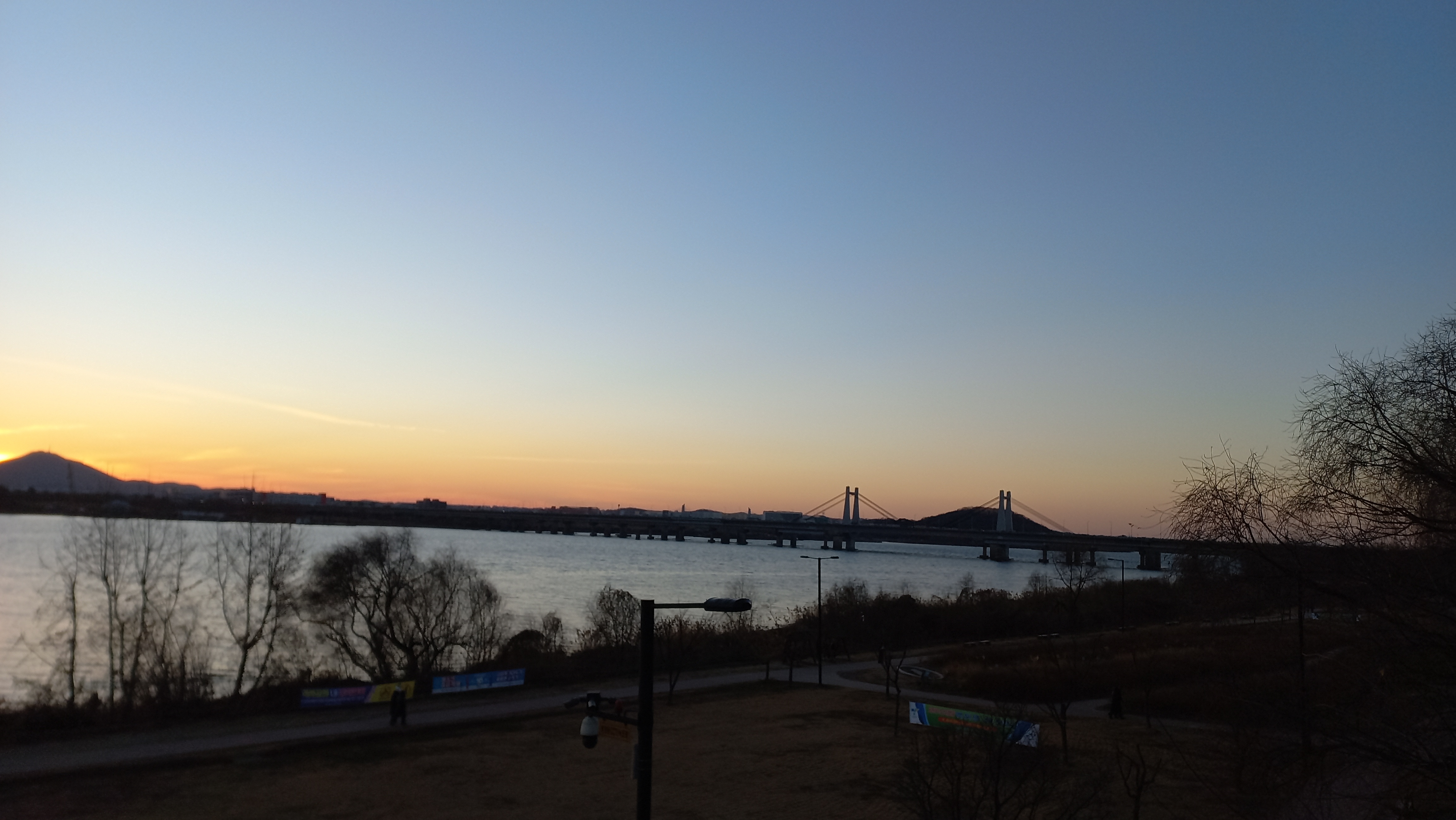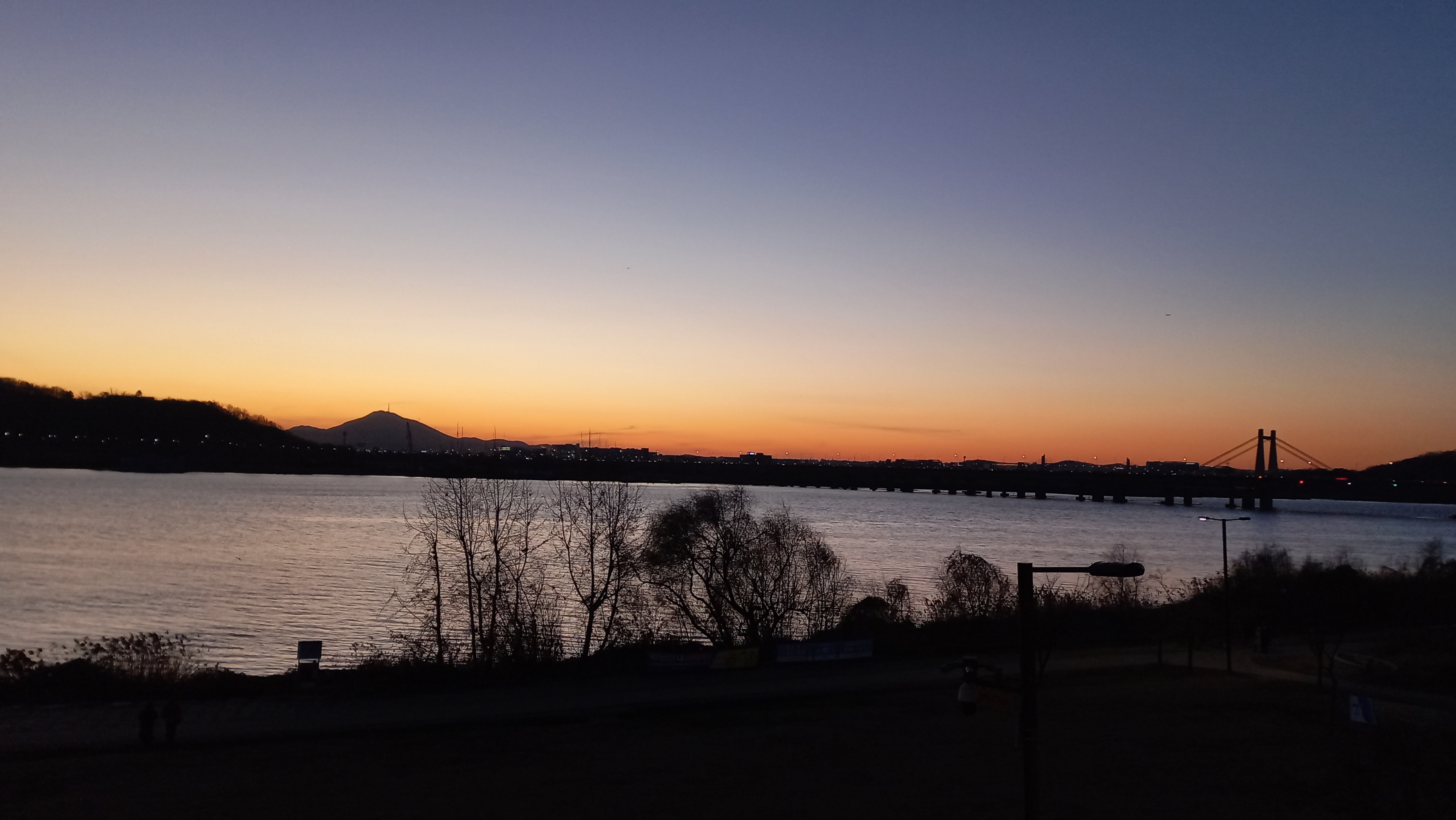 그리고 해가 떨어진 인천 계양산과 우측은 김포이며, 행주대교가 가로지르고 있는 풍경입니다.