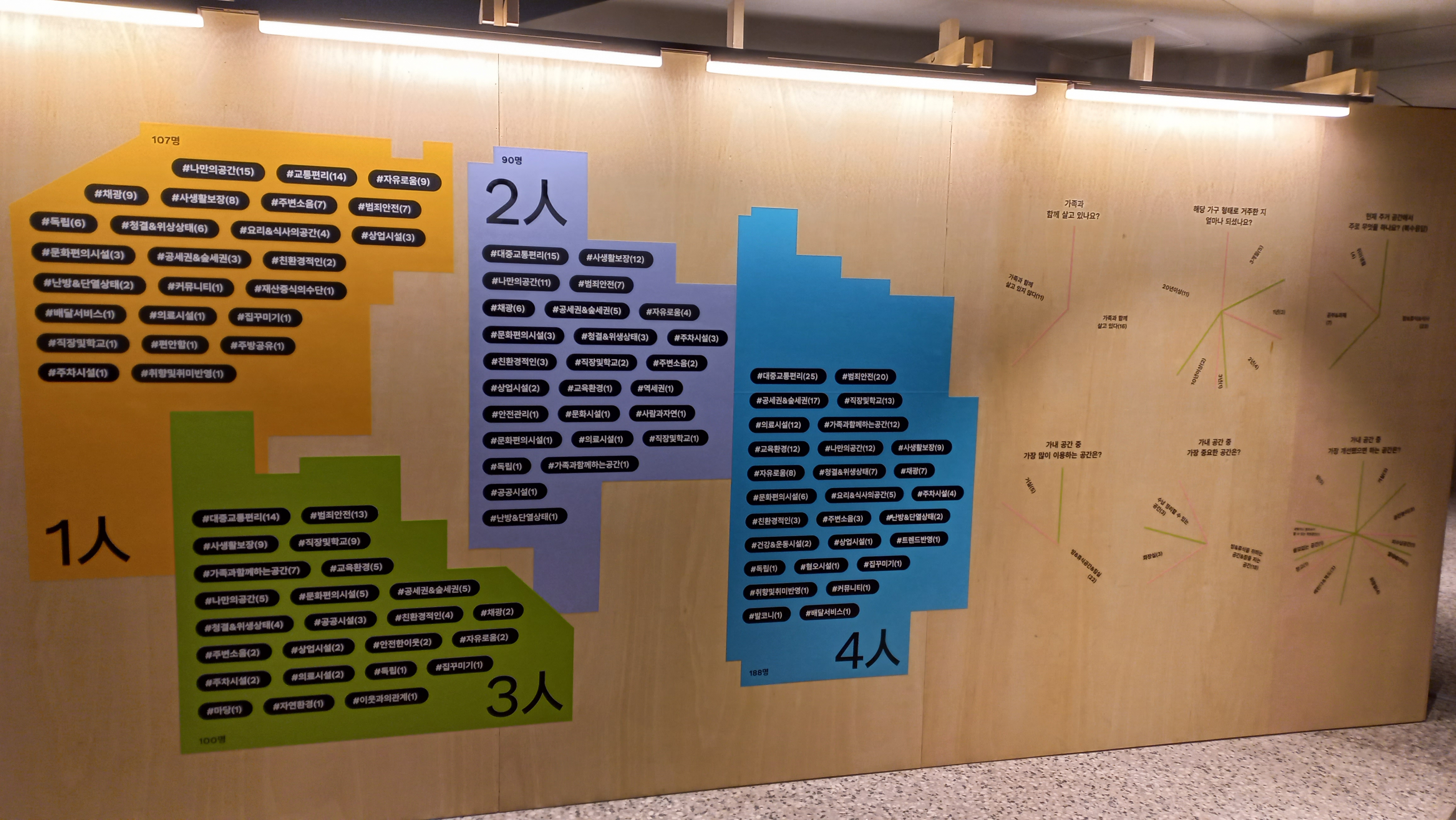 1인 가구부터 4인 가구까지의 사람들에게 필요한 주거환경에 대한 질문을 한 답을 기록해 놓은 것 같습니다.