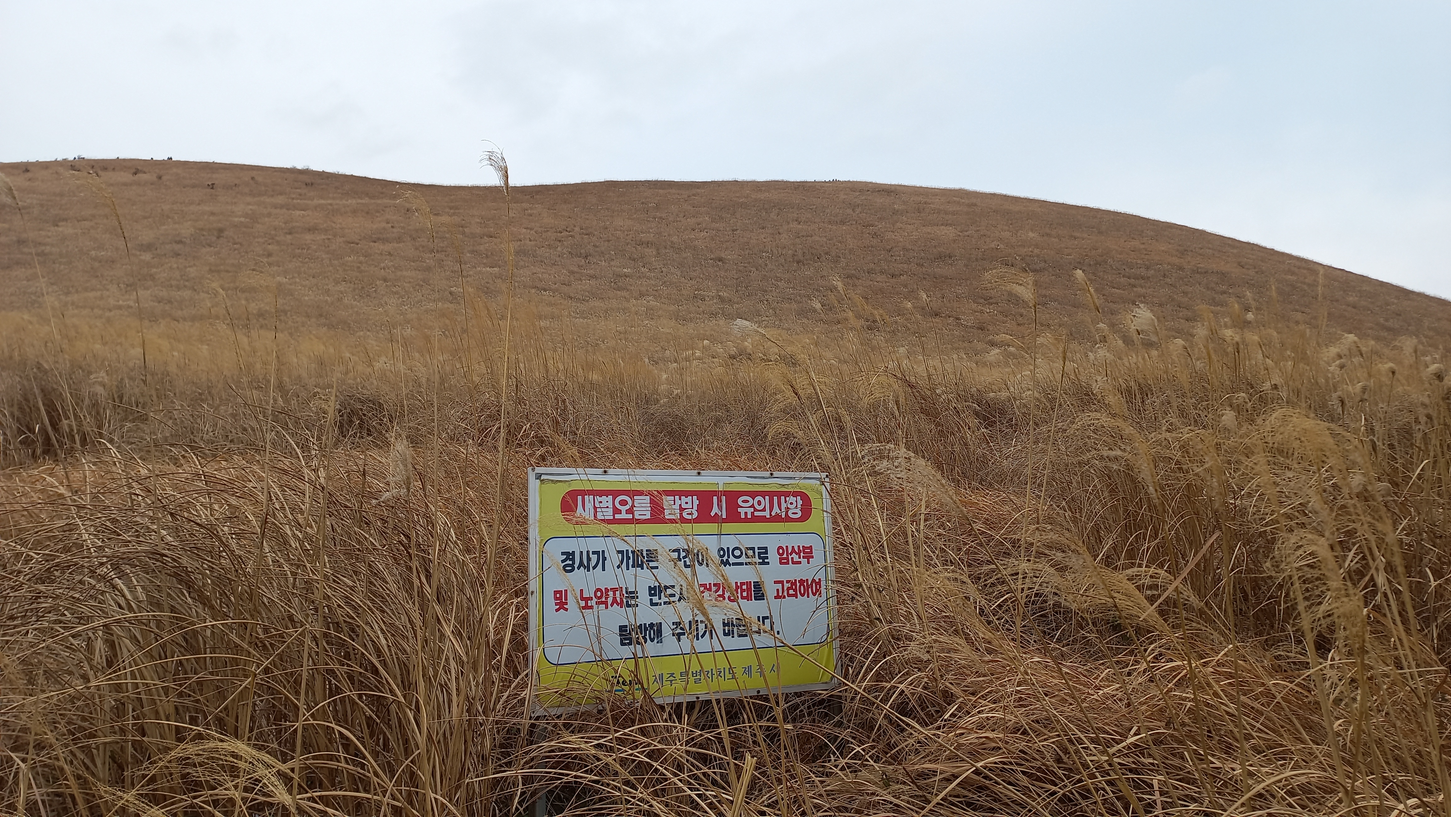 경사로가 매우 가파르므로 임산부와 노약자는 본인의 건강상태를 고려하여 탐방하라는 유의사항이 적혀 있을 정도로 급경사를 올라가야 하는 오름입니다.