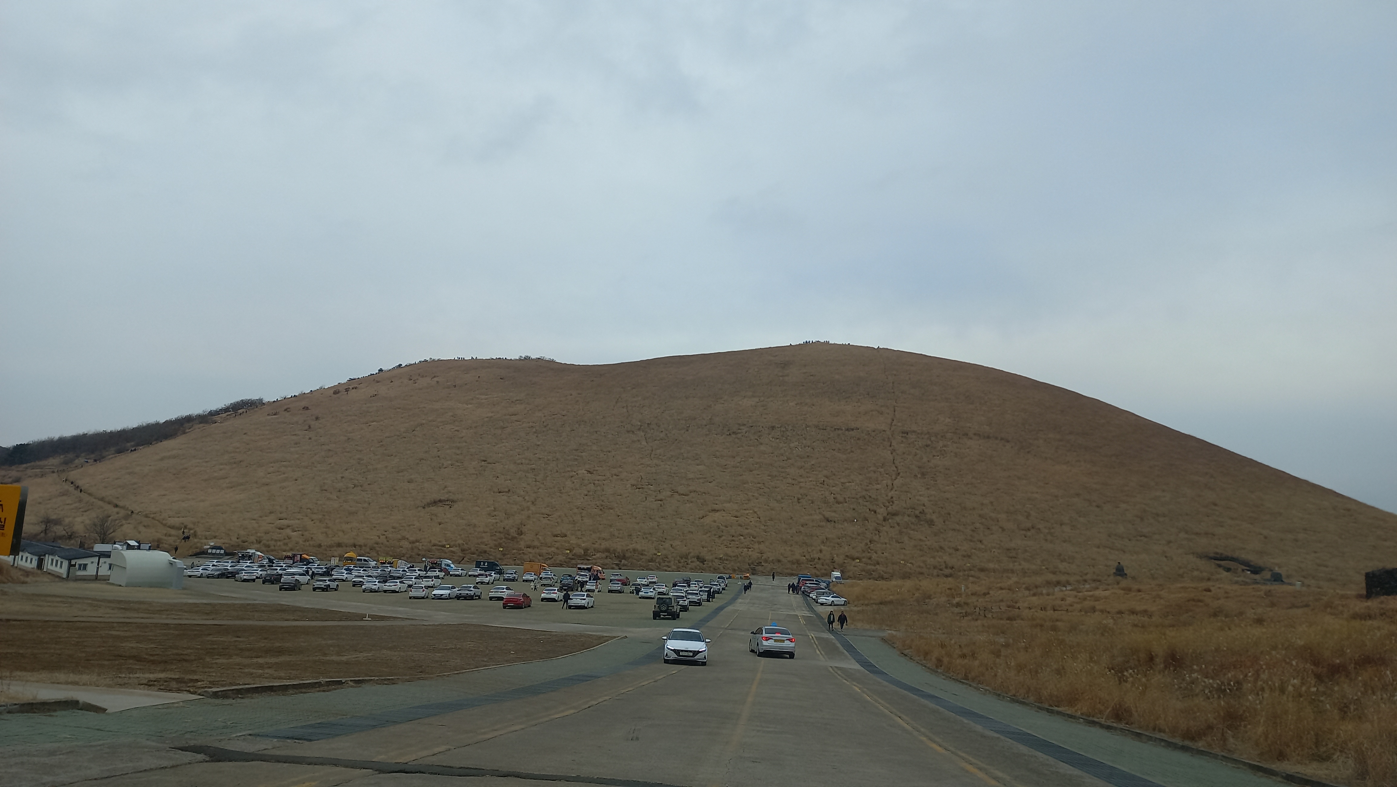 아스라이 보이는 새별오름 주차장(우측 하단)