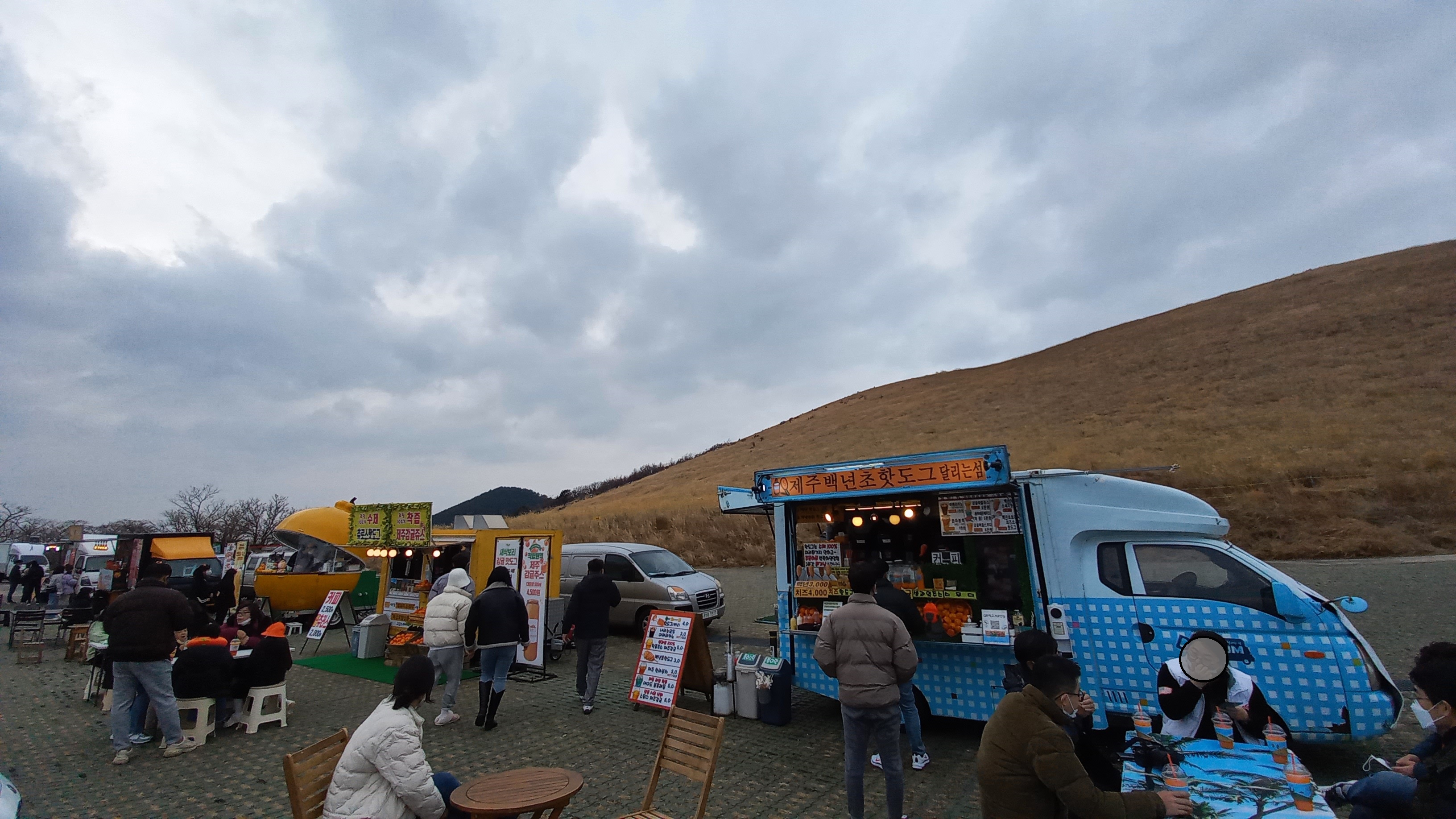 주차장이 엄청 넓은데 그 앞에는 푸드트럭이 5~6대 있습니다.