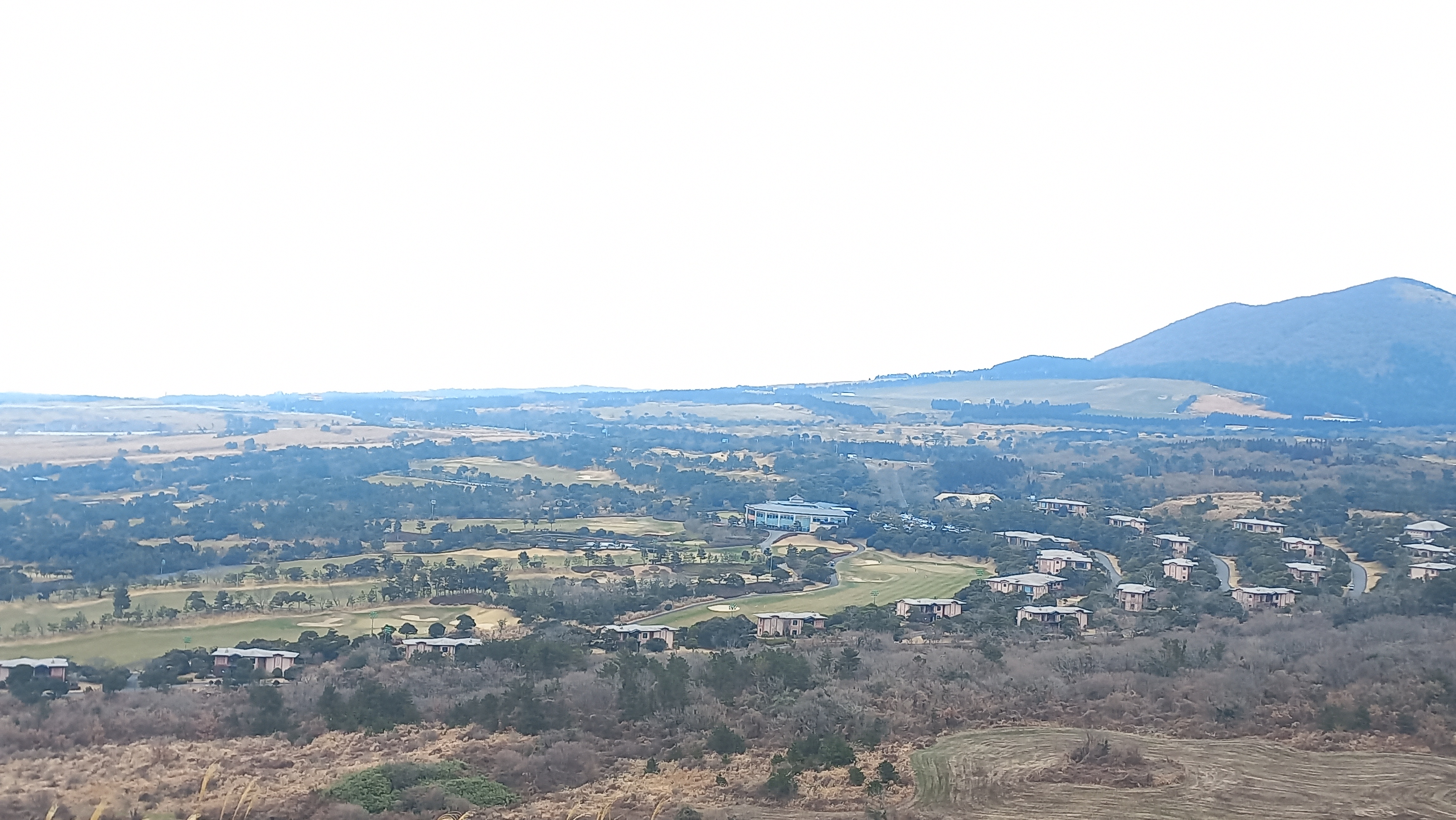 동쪽 방향 한라산 아래쪽으로는 거대한 골프장이 밀집되어 있고, 중간중간 숙소로 보이는 펜션들이 들어서 있습니다.