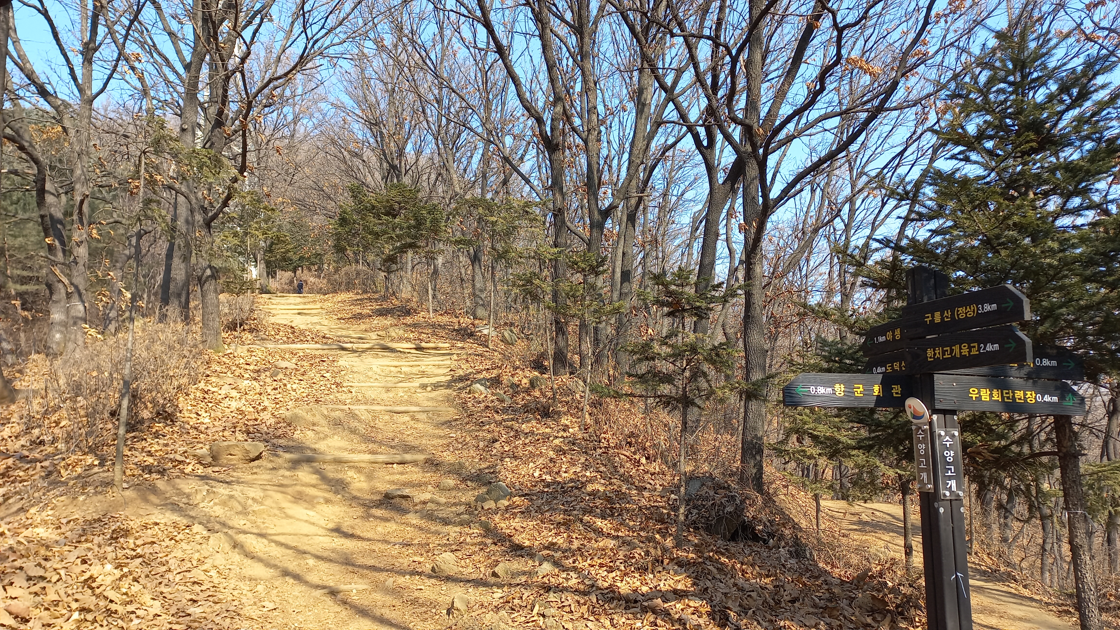 향군회관 800마터, 구름산 정상까지는 3.8km, 한치고개육교 2.4km, 우람회단련장 400미터, 도덕산 정상 400미터입니다.