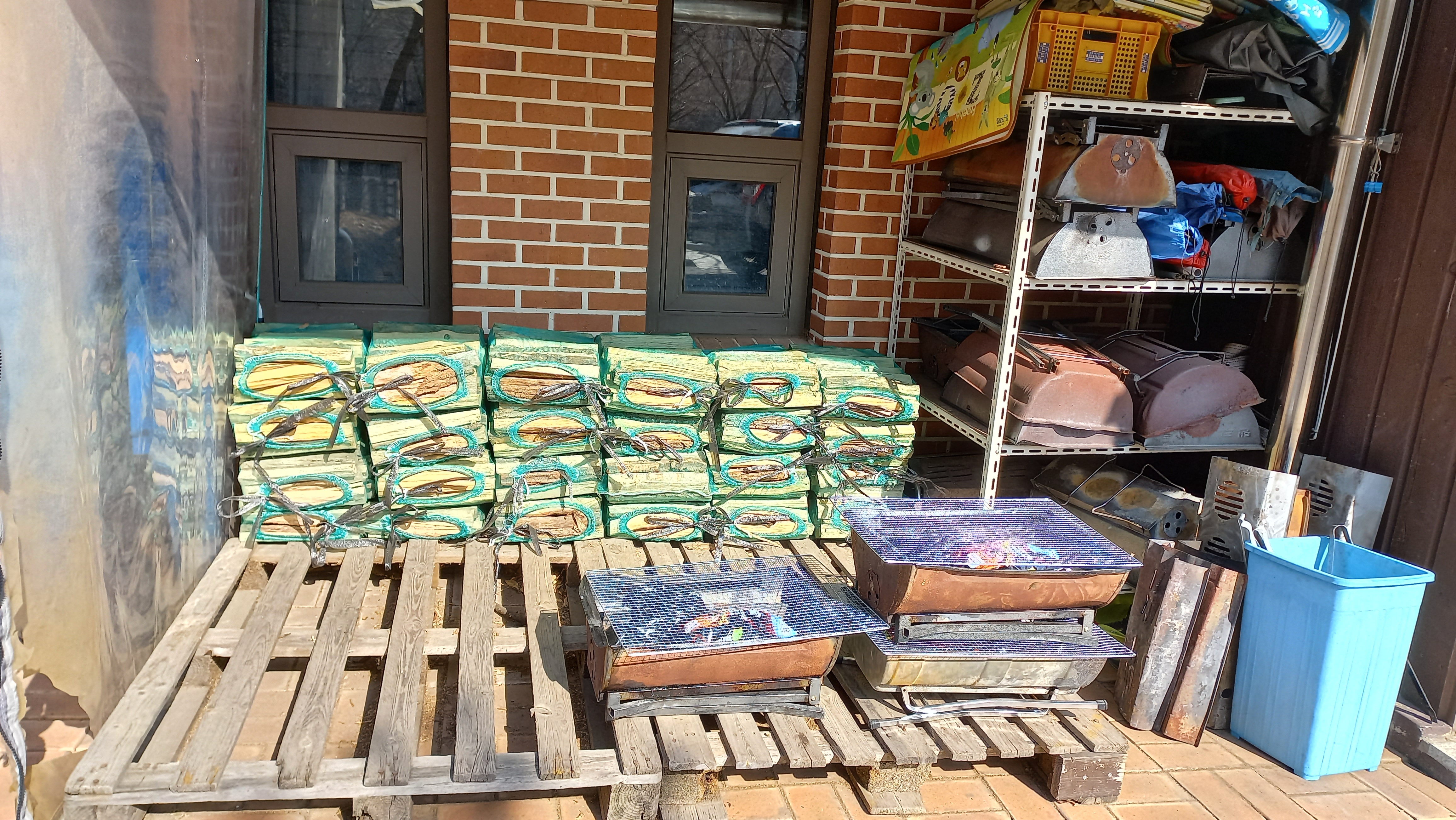 입구 매점에서는 캠프파이어를 할 수 있는 화로와 장작을 팔고 있습니다.