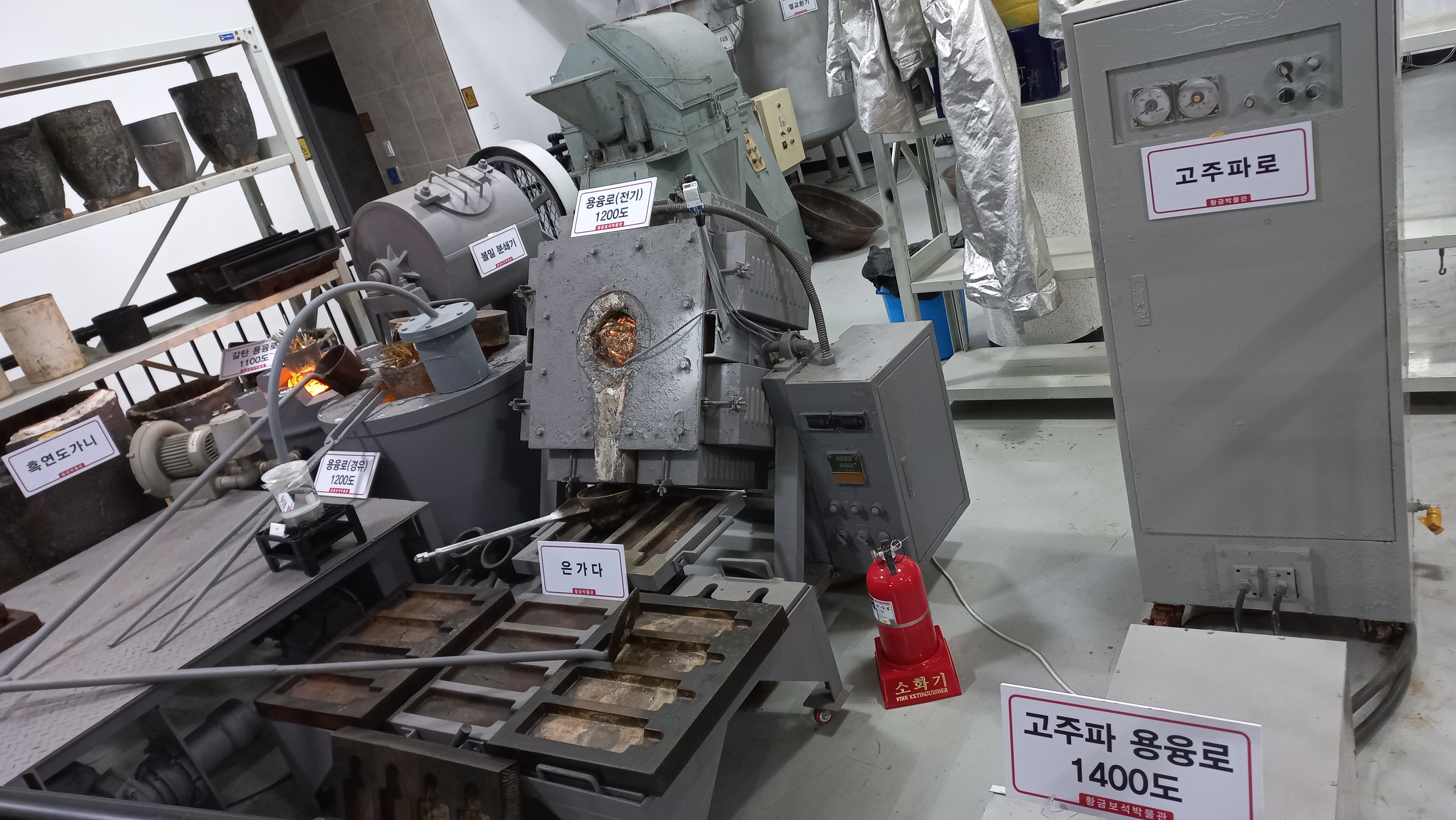 1400도의 고주파 용융로, 1200도의 은가다 등을 통해 금과 은을 녹이게 됩니다.