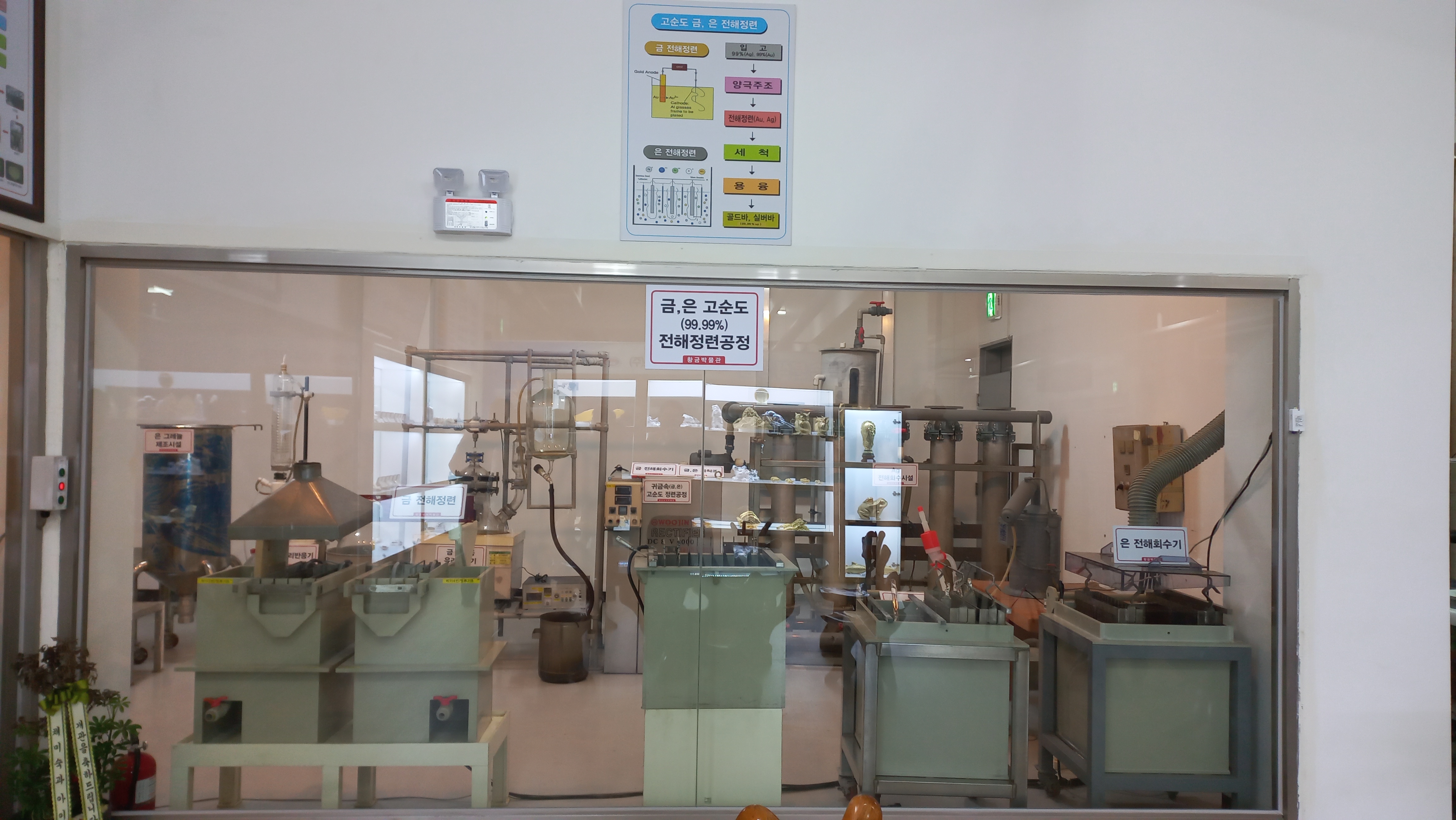 폐기물로부터 귀금속을 추출해내는 방법을 보여주는 장비들로 전시공간이 꾸며졌습니다.