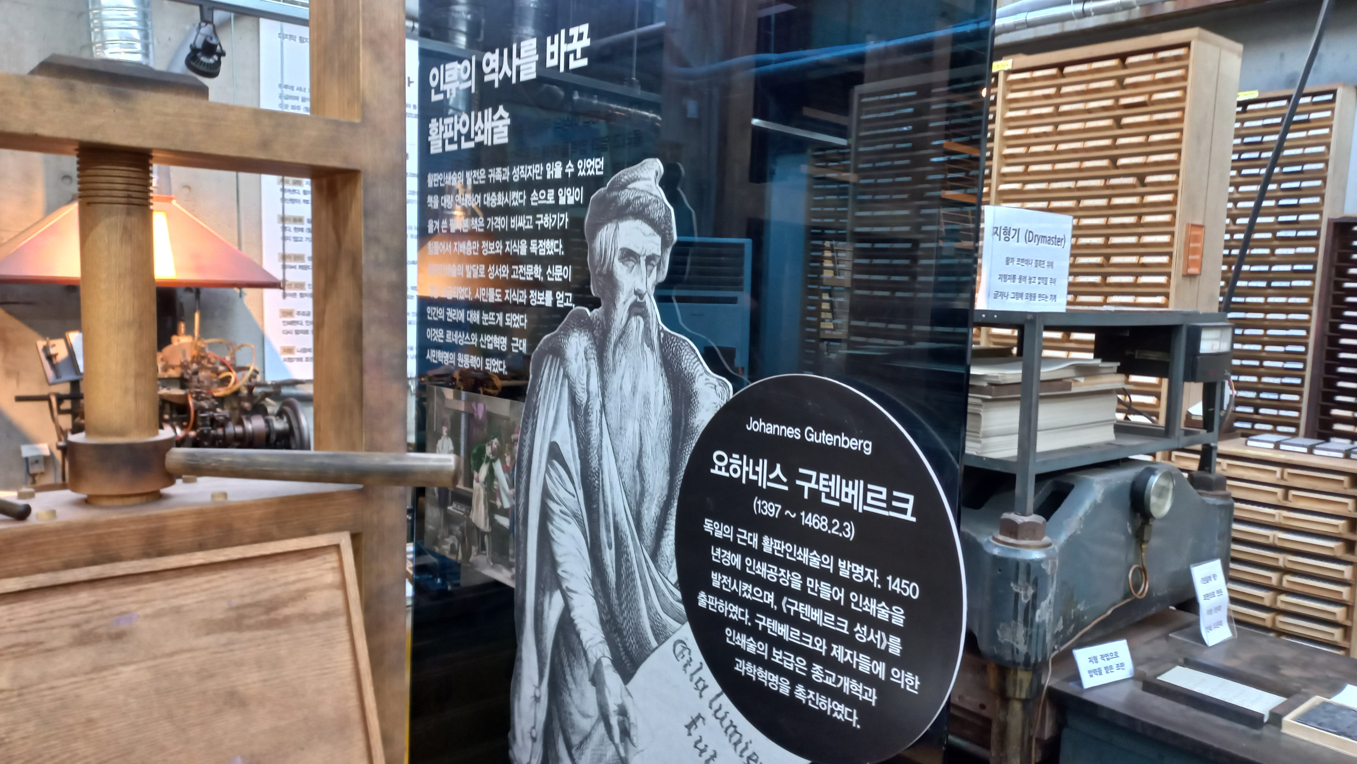 활판인쇄박물관은 지혜의 숲 지하에 있으며, 세계 최대의 금속활자와 가장 오래된 인쇄기기를 보유하고 있습니다.