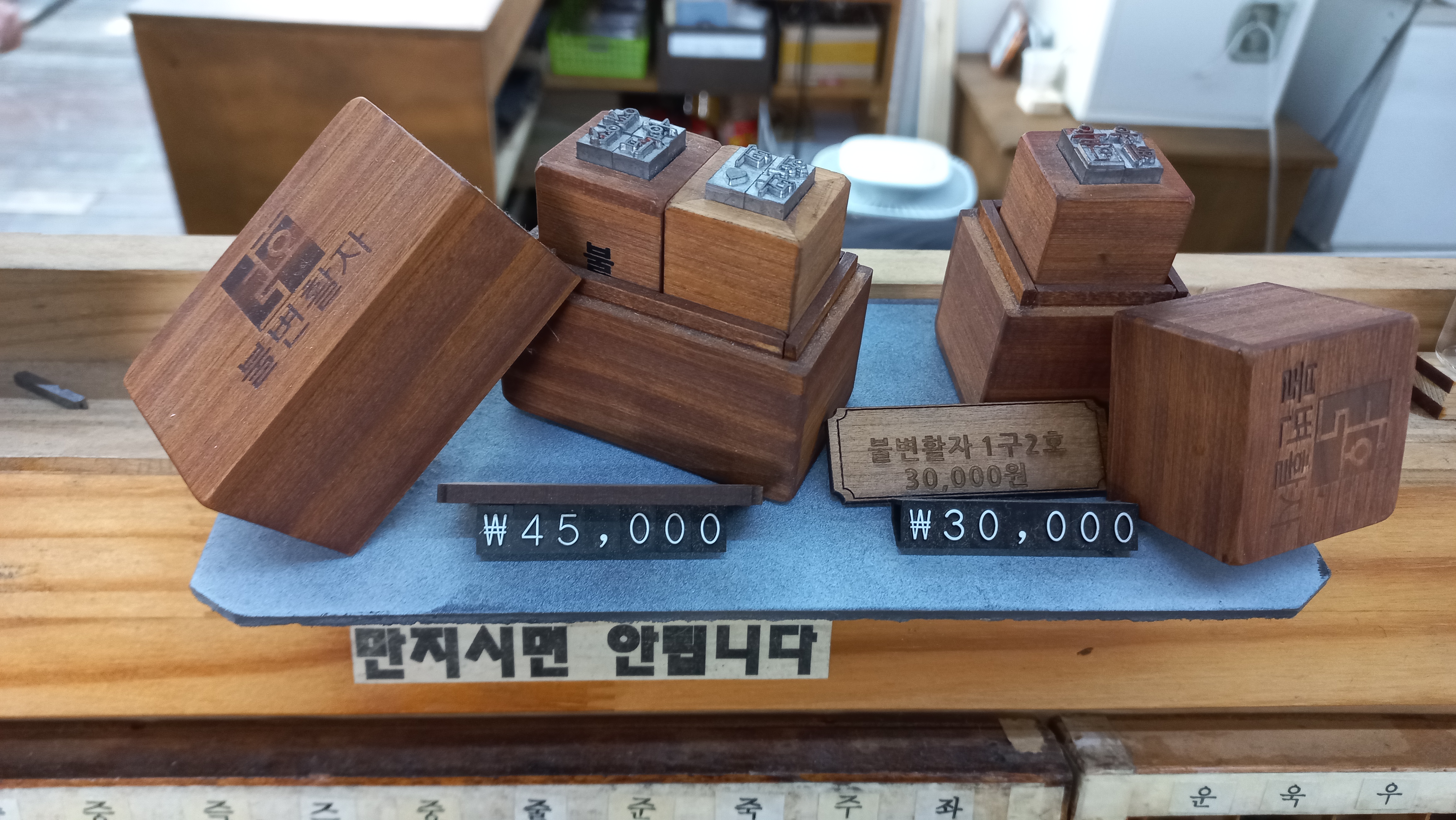 불변활자 1구 2호 3만원, 도장처럼 만드는데 45,000원인데, 하나 마련해서 도장으로 사용해도 좋을 것 같습니다.