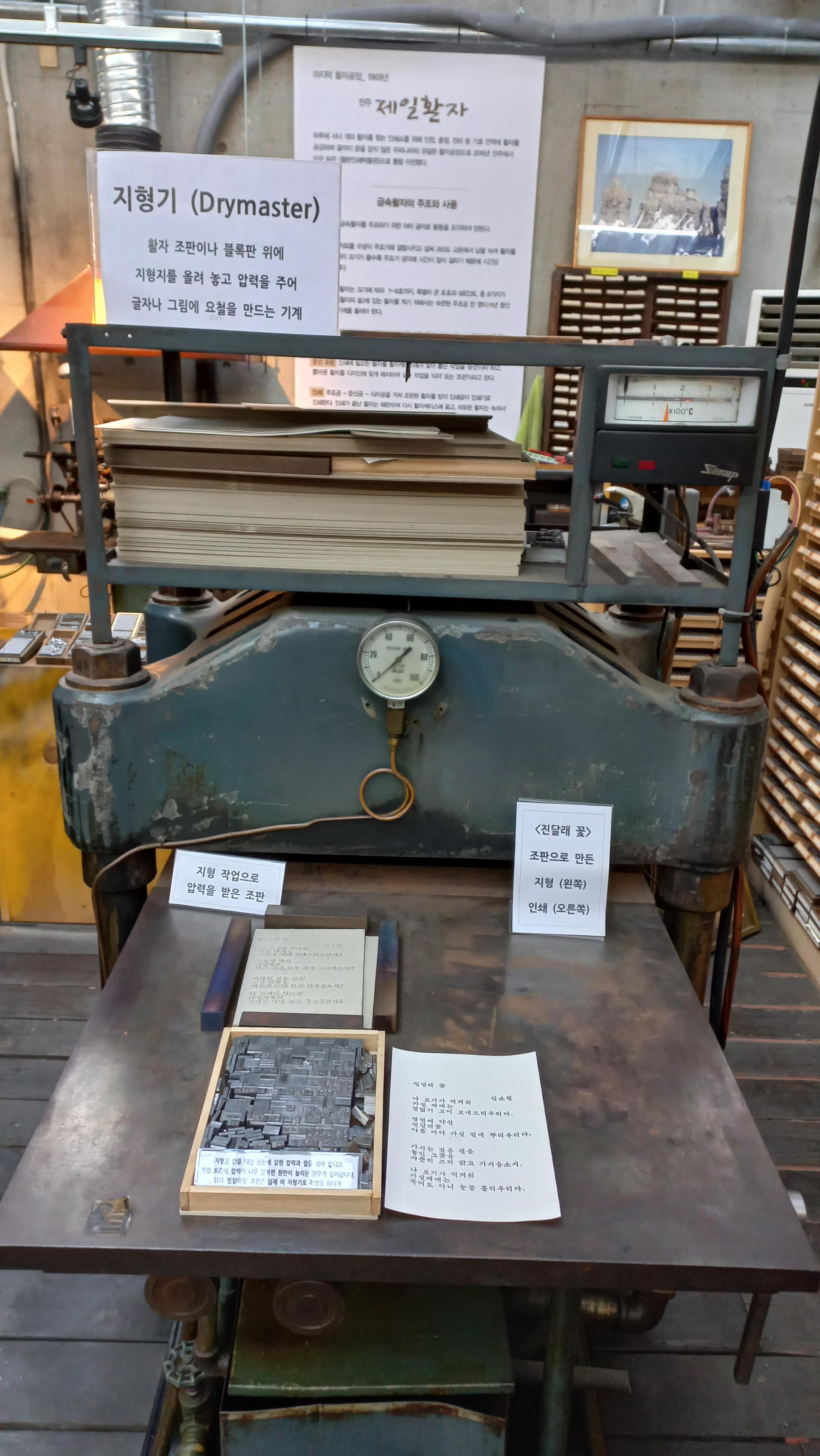 대구중공업에서 만든 기계로 금속활자를 이용한 인쇄기 중 대표적인 기계라고 합니다.
