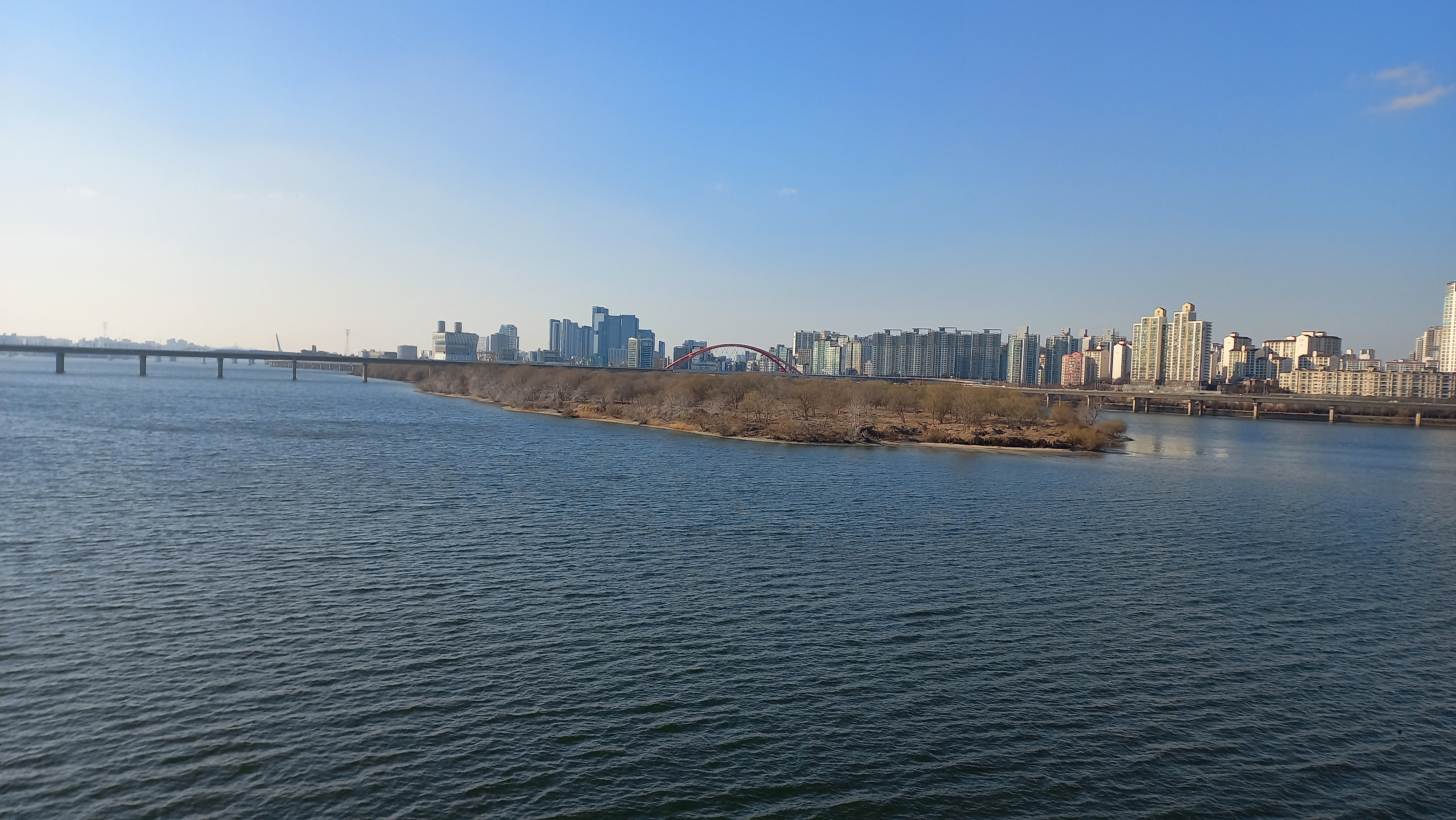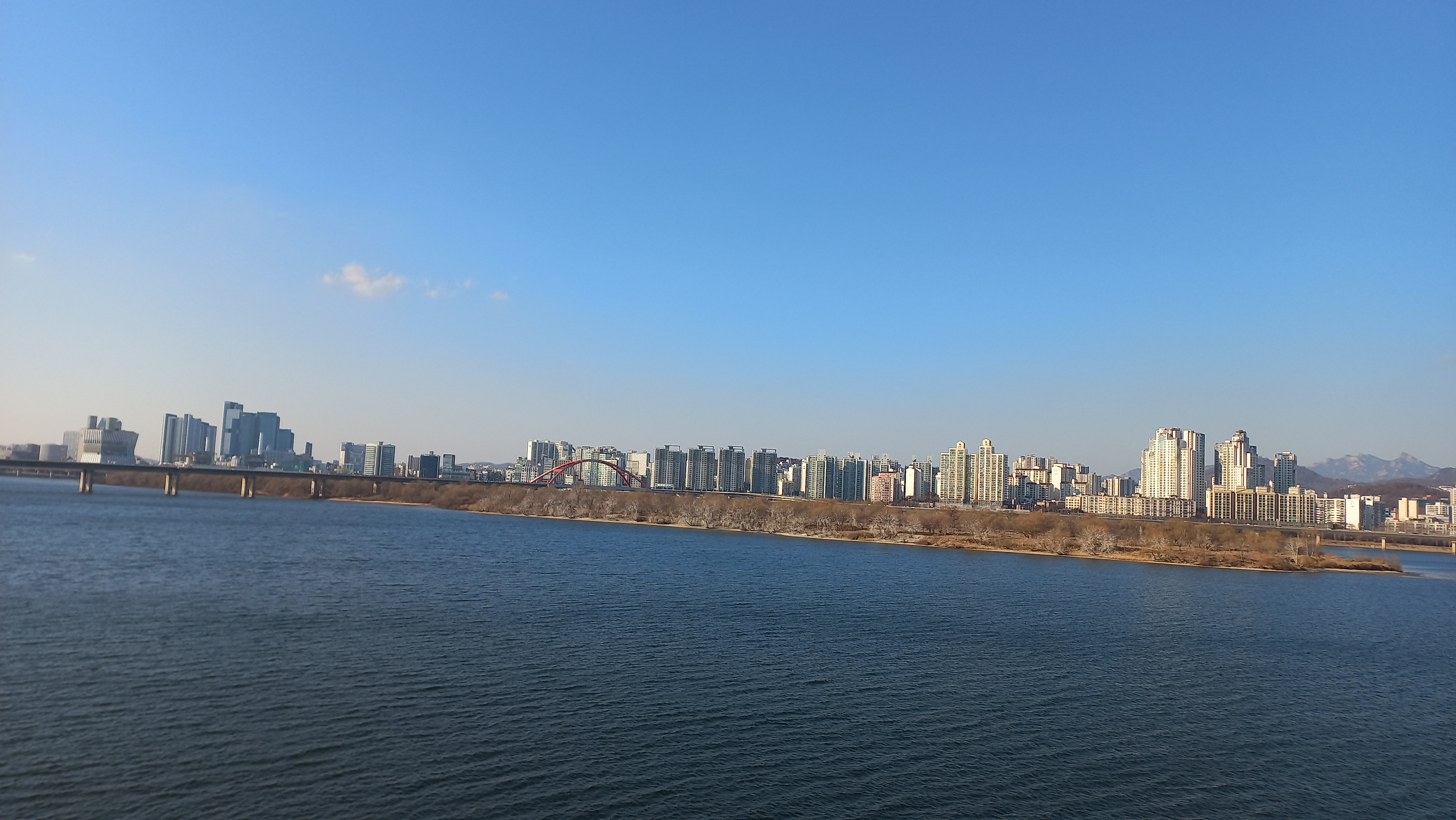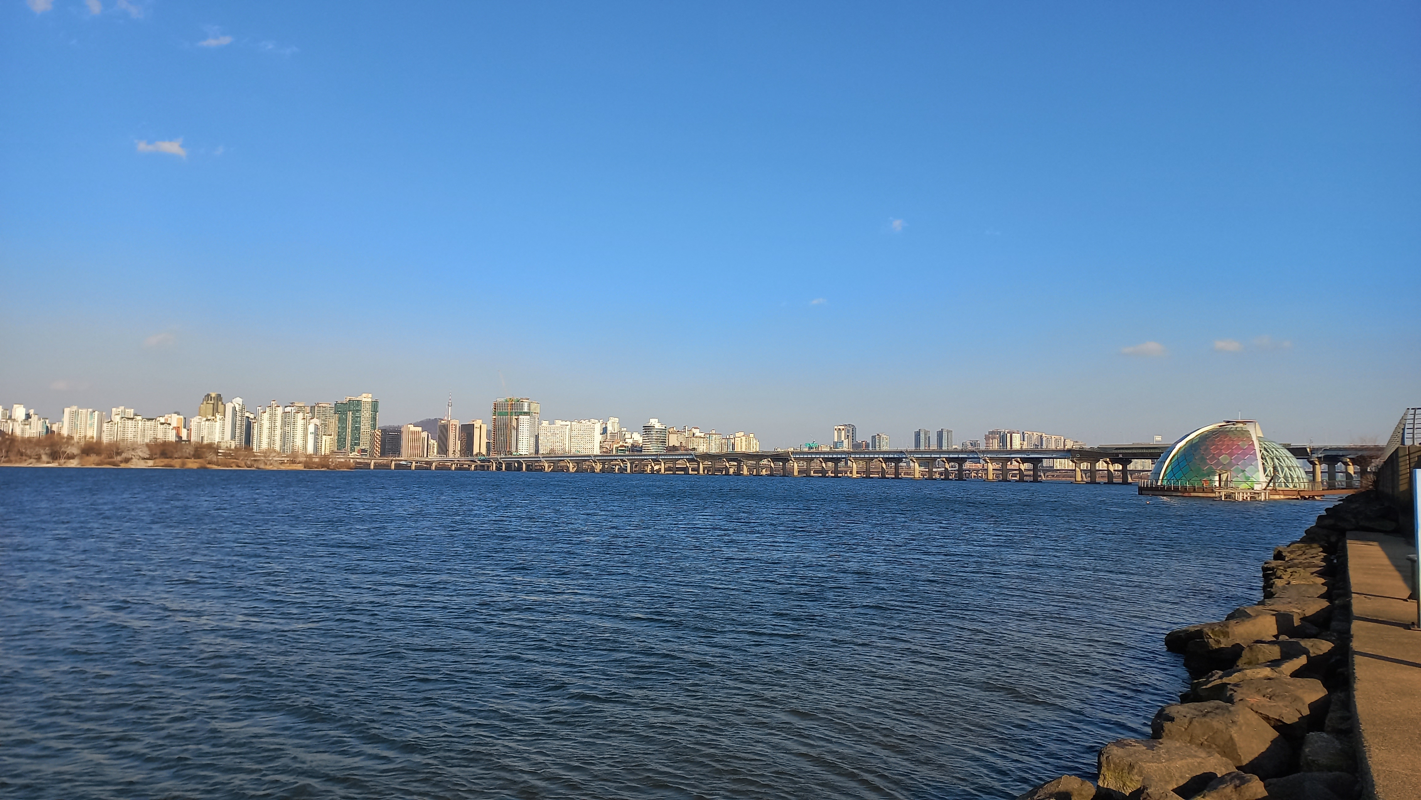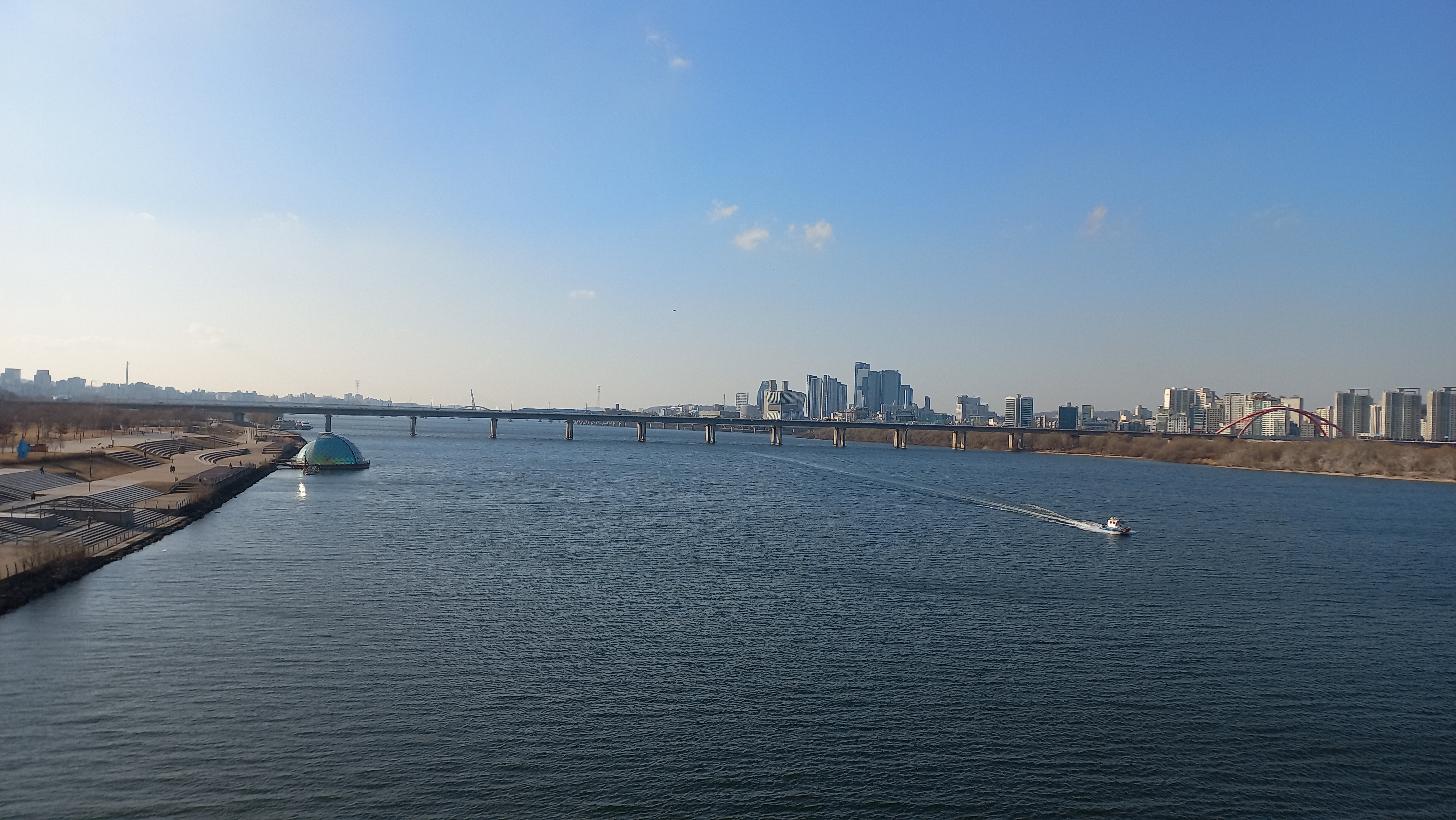 날씨가 맑은 편이라 한강이 무척 푸르게 보입니다.