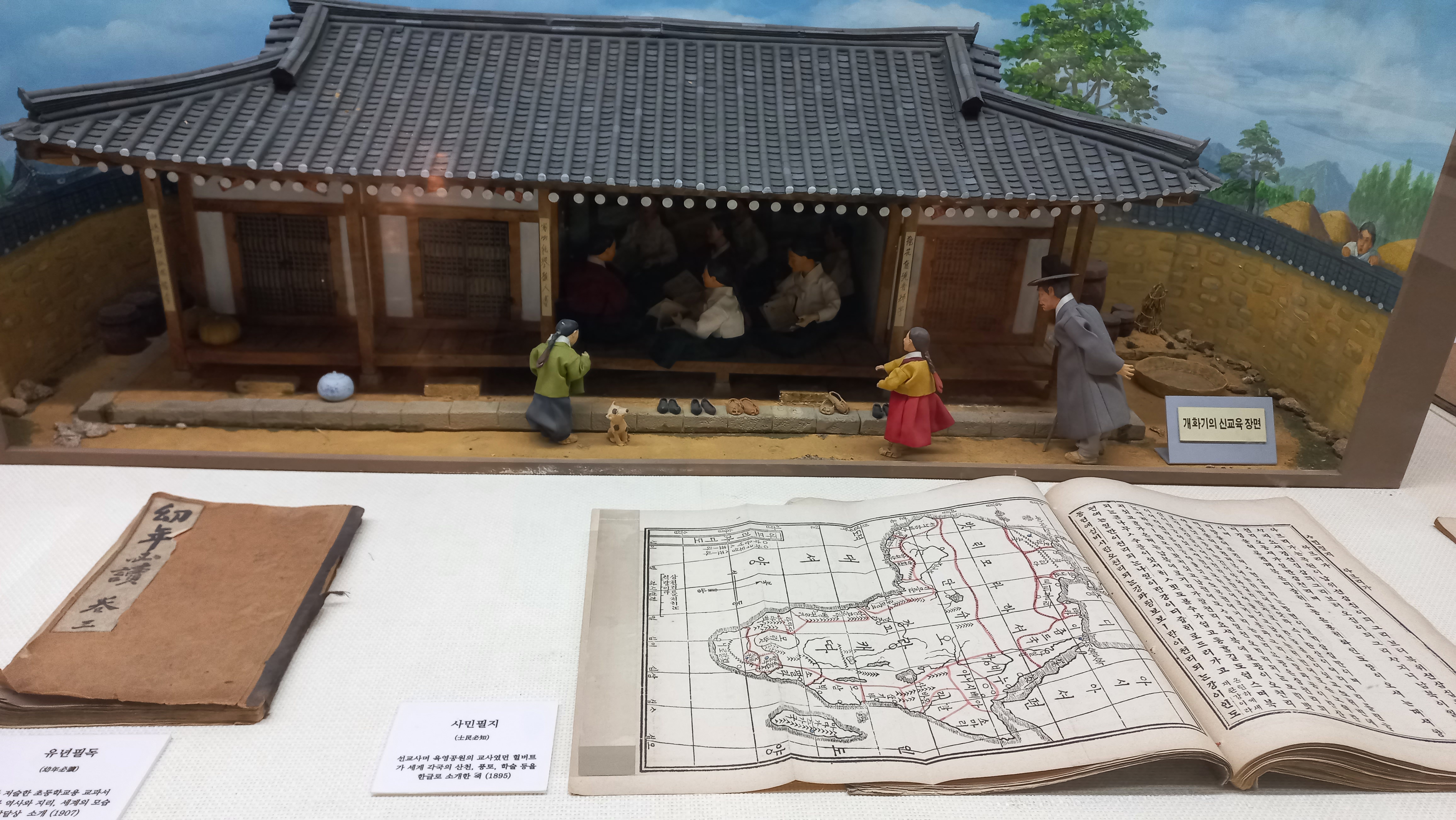 1907년 초등학교 교과서였던 유년필독과 선교사이면서 육영공원의 교사였던 힐버트가 세계 각국의 산천, 풍토, 학술 등을 한글로 소개한 1895년의 사민필지