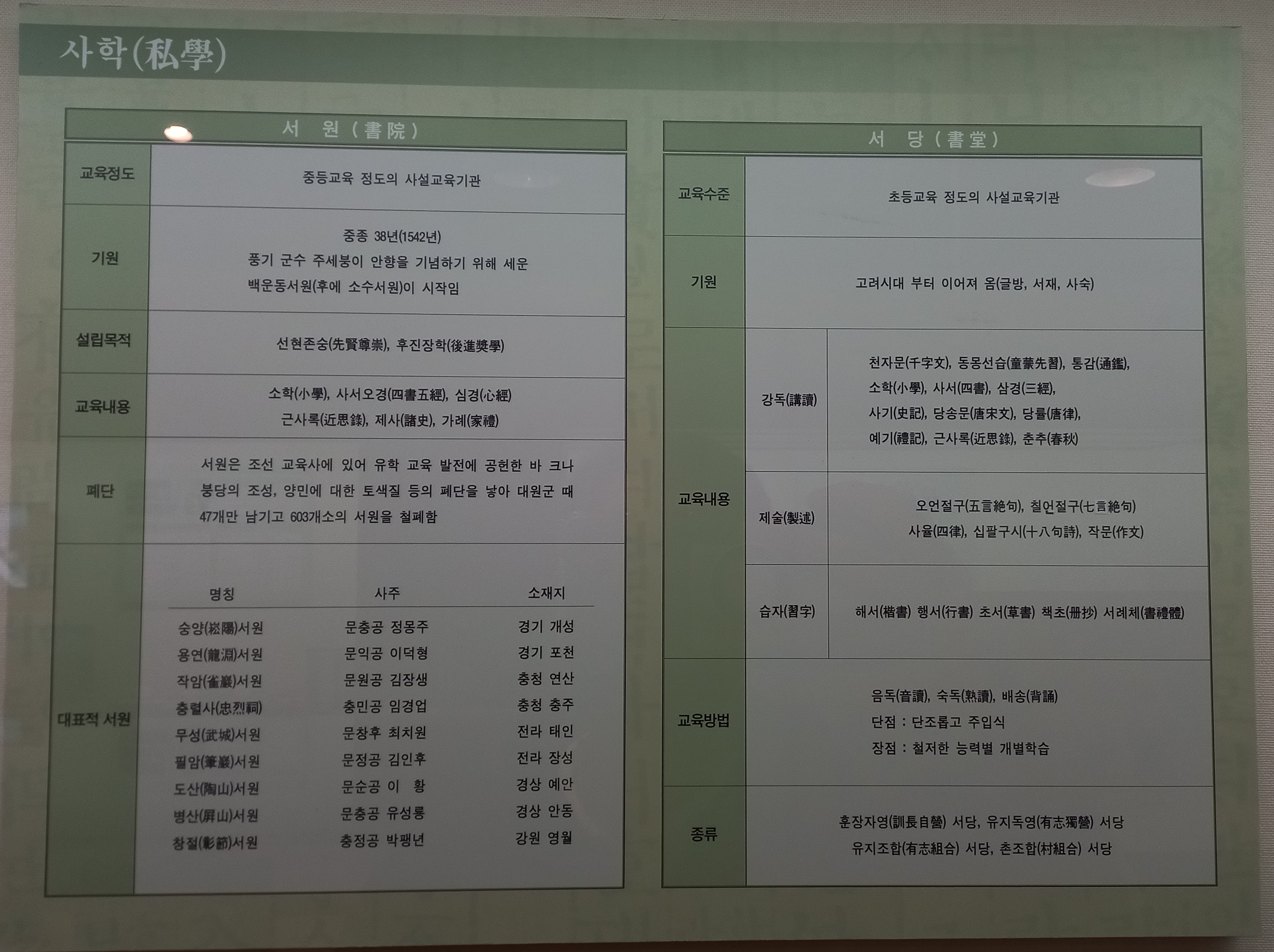 서원은 중등교육 정도의 사설교육기관으로 1542년(중종 38)에 풍기군수 주세봉이 세운 백운동서원(소수사원)이 시작입니다.
