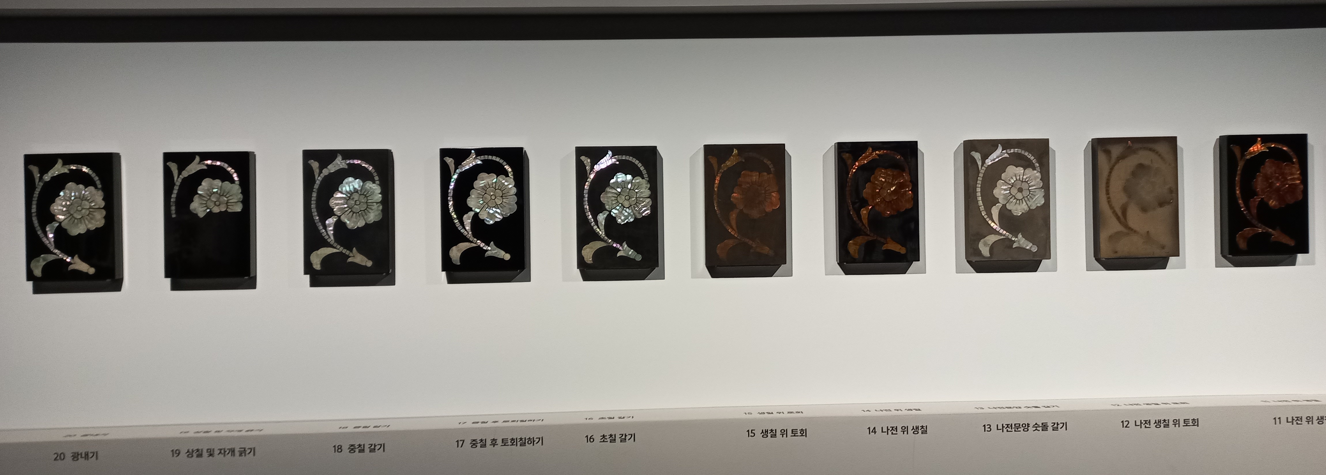 다음은 나전칠기 제작공정 20단계를 보여줍니다.