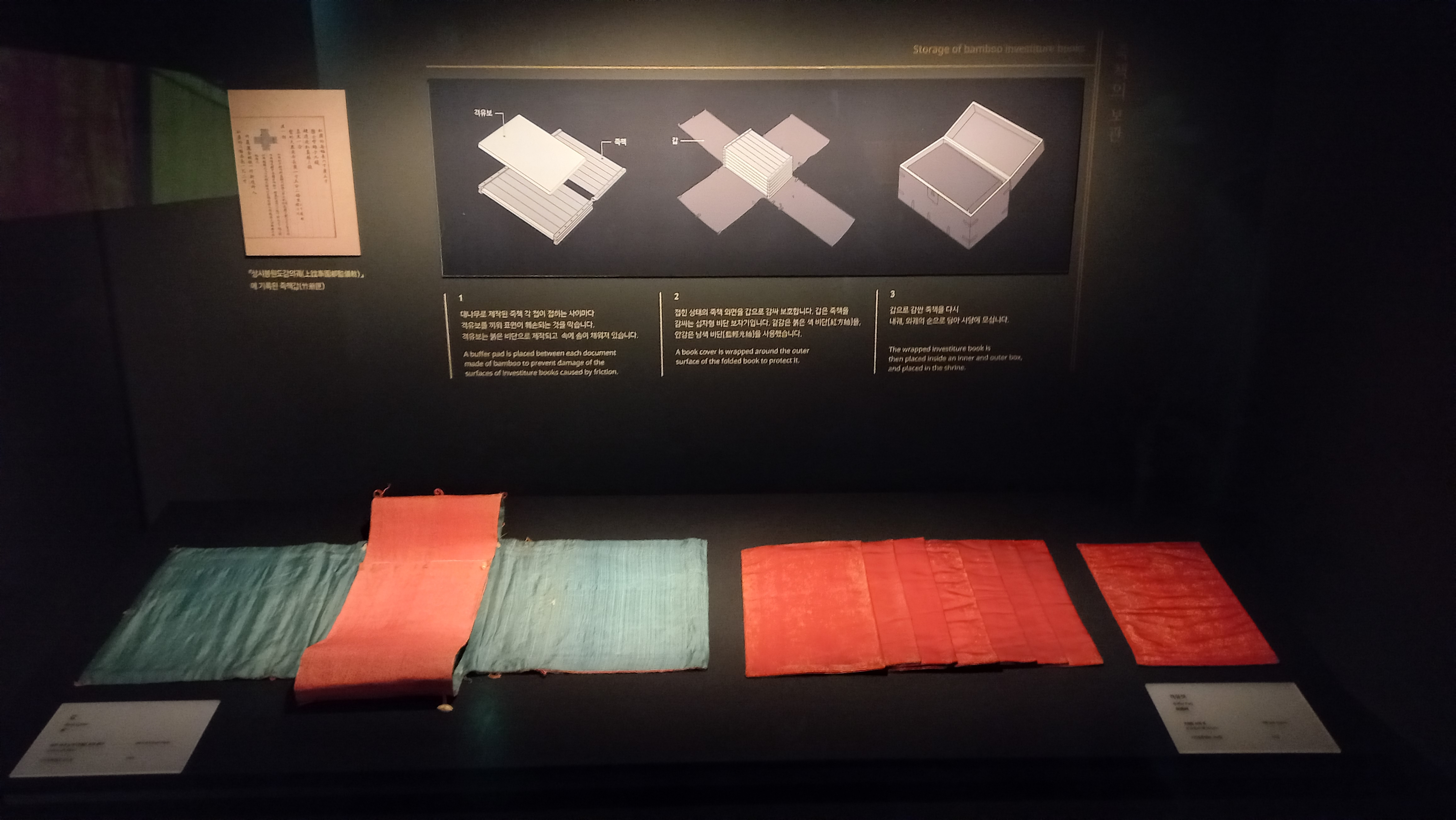 옻칠이 된 6개의 대나무 조작으로 하나의 첩을 만들고 다시 둥근 고리로 10개의 첩을 엮었습니다.
